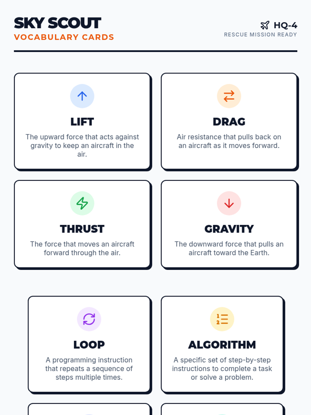 Introduction to the forces of flight and key terminology used in both aeronautics and computer science for disaster relief missions.