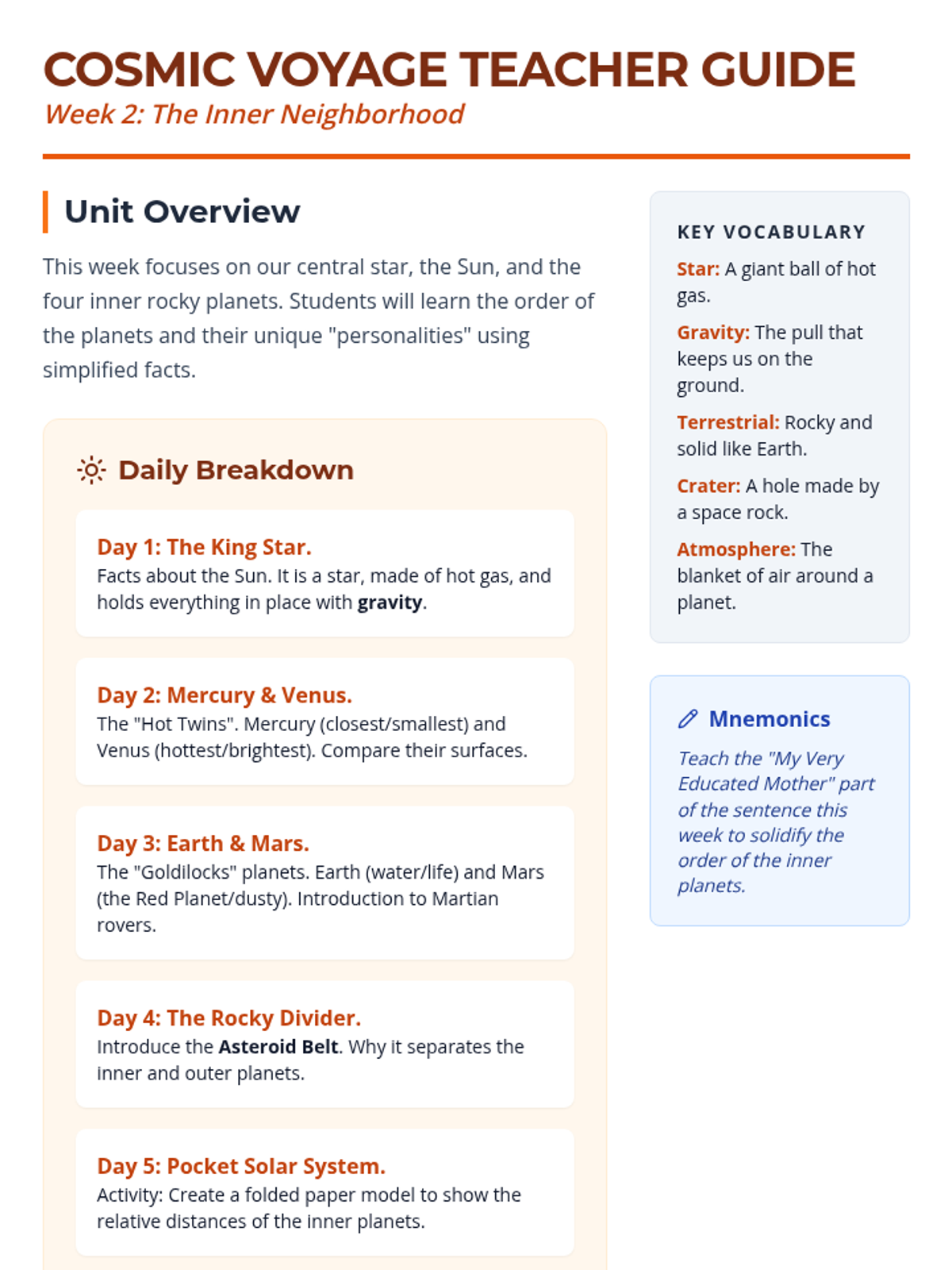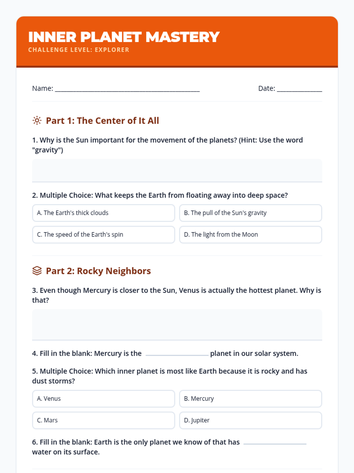 Explores the Sun as our central star and the characteristics of the four inner terrestrial planets (Mercury, Venus, Earth, and Mars).