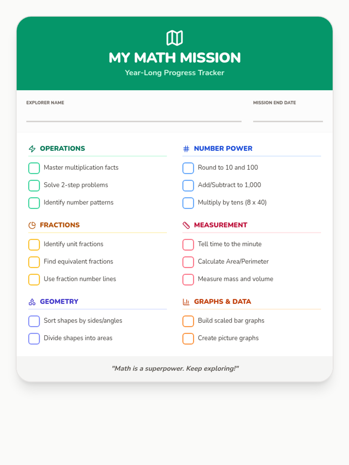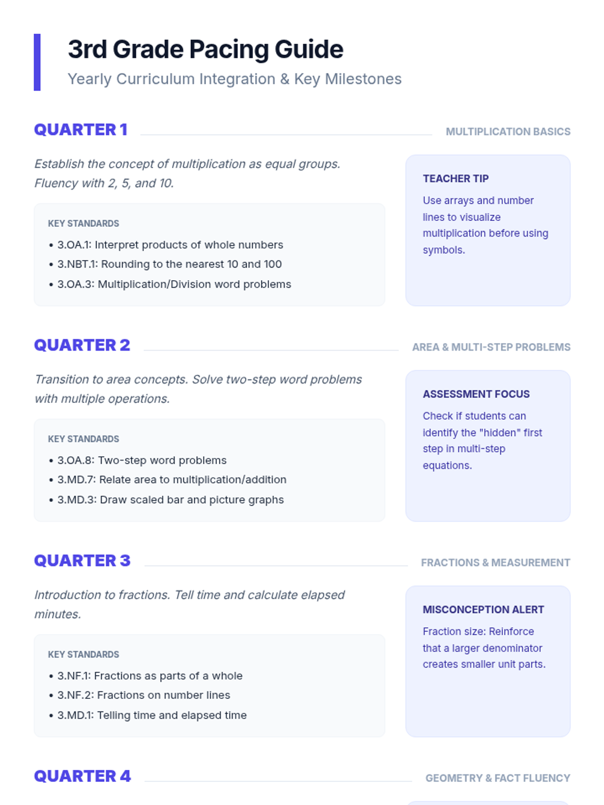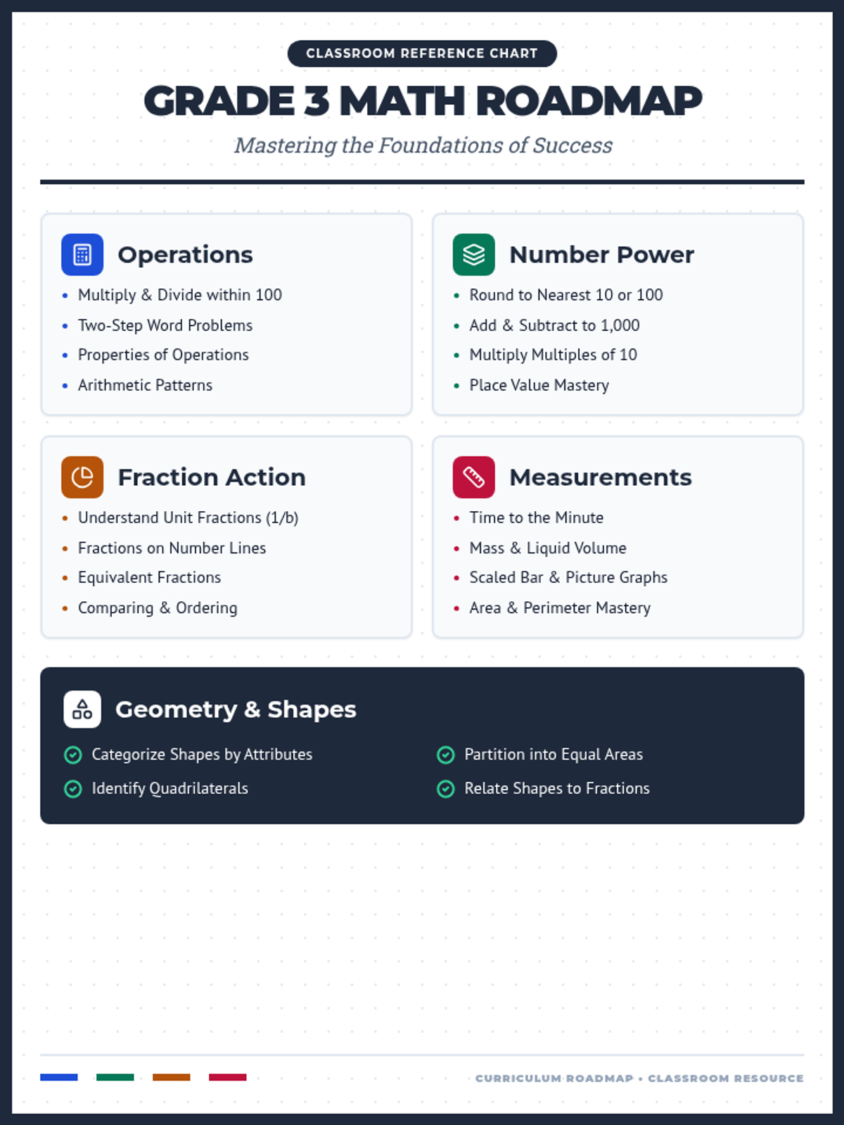 A comprehensive set of visual aids and planning documents for the Grade 3 mathematics curriculum, designed to provide students and teachers with a clear roadmap for the year ahead.