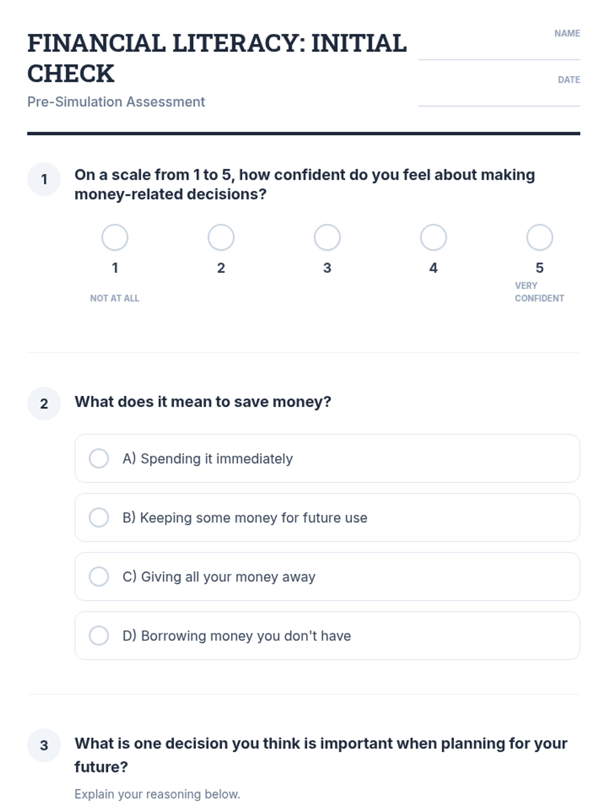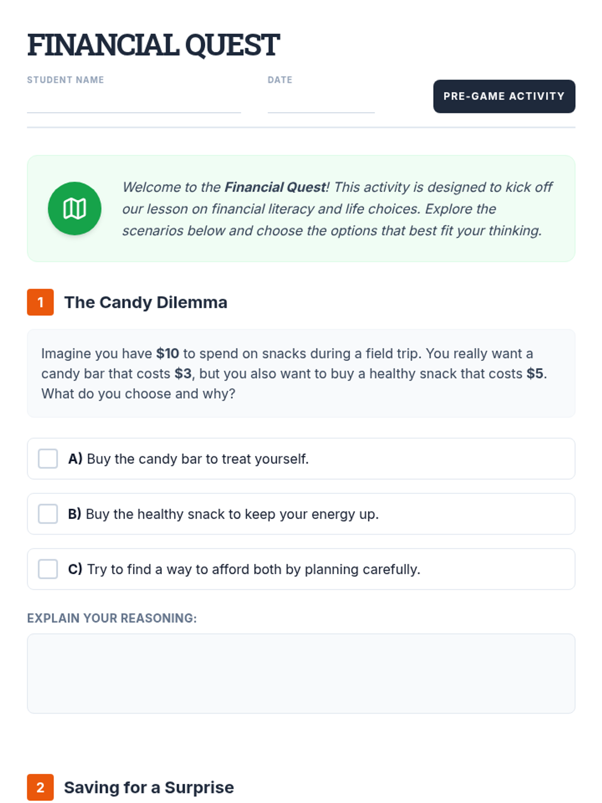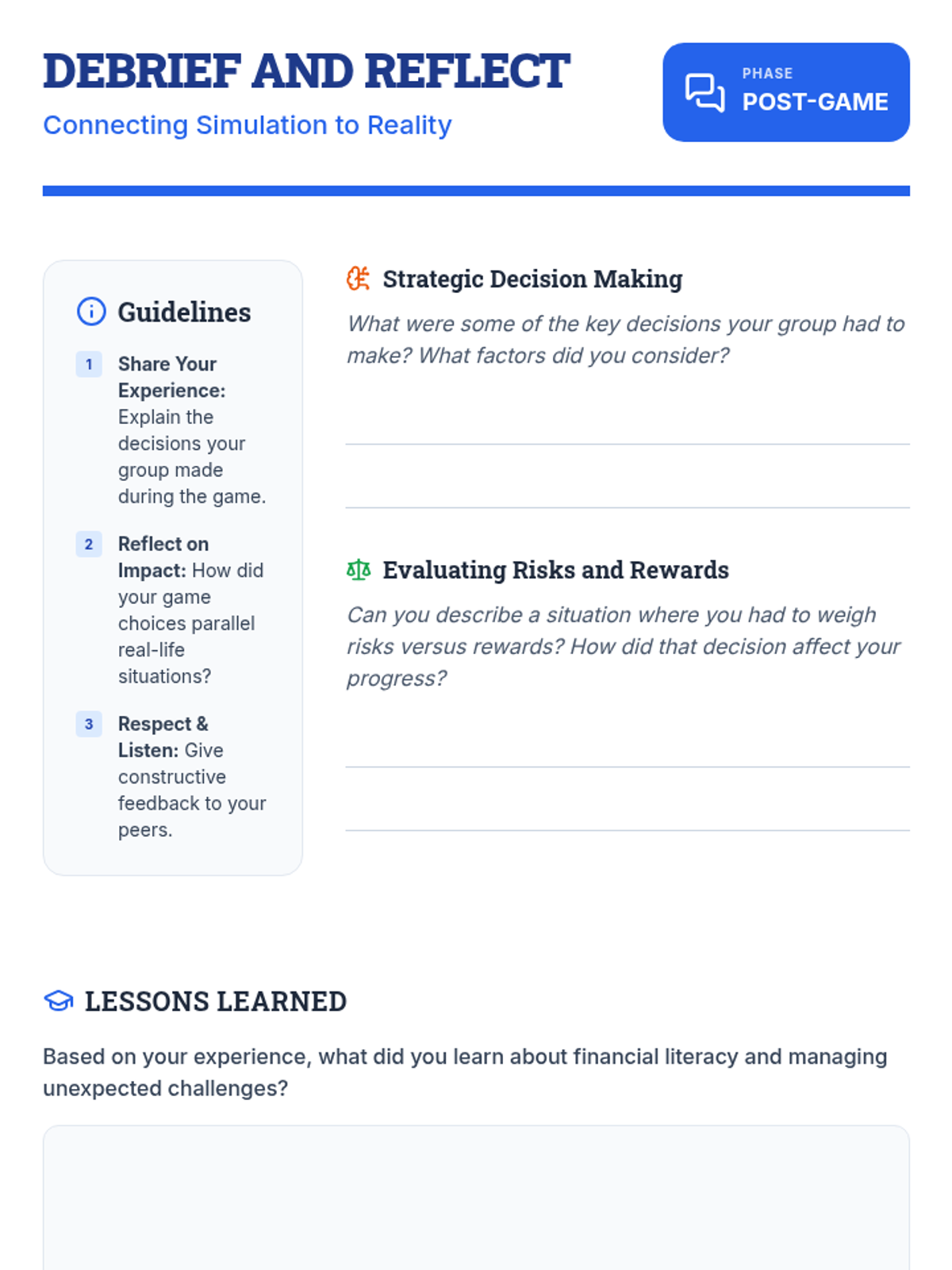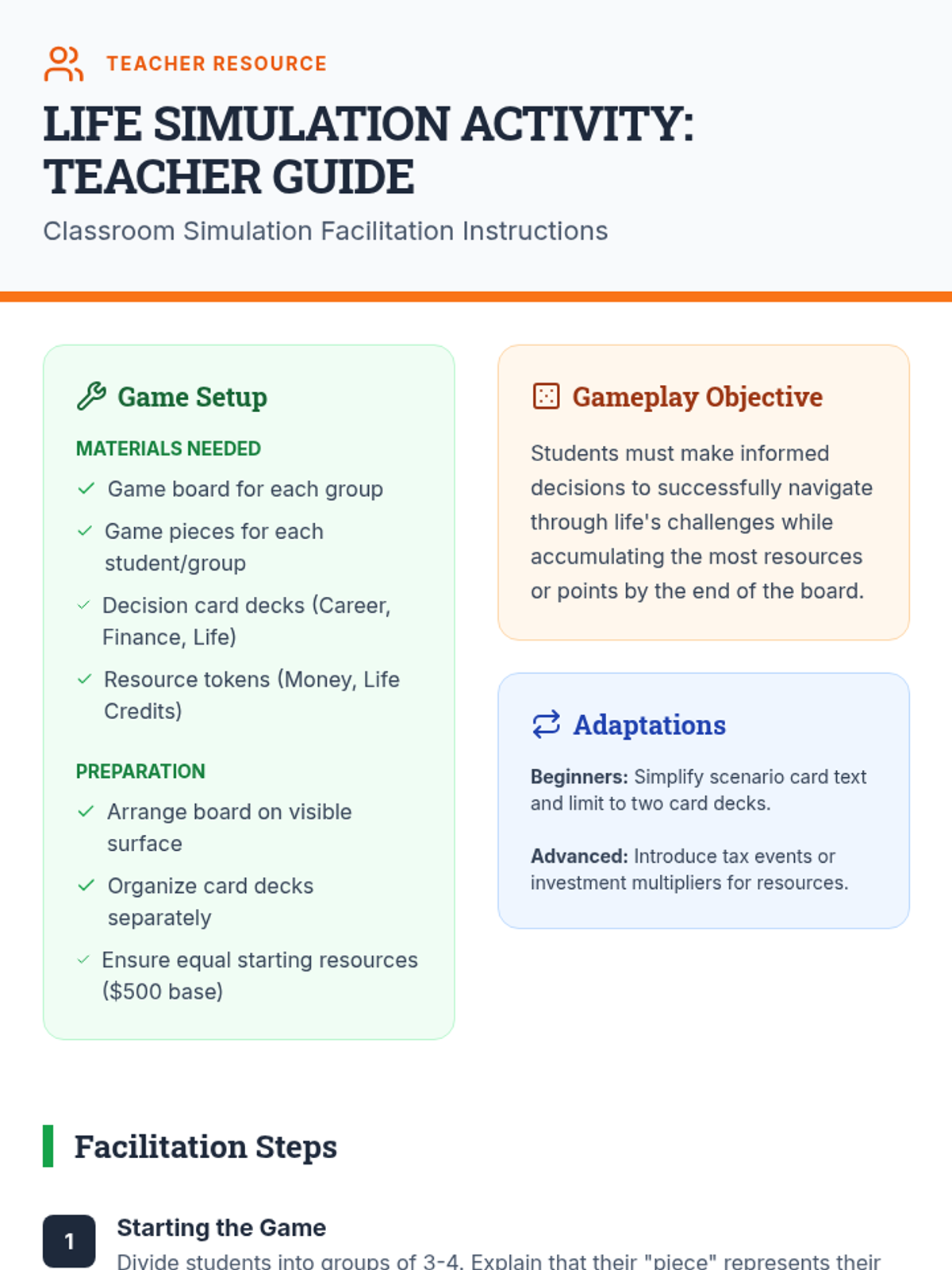 Students simulate real-life scenarios using a board game to explore financial literacy and the consequences of everyday life choices. Designed for 6th grade, this lesson connects decision-making with future financial outcomes through interactive play and guided reflection.