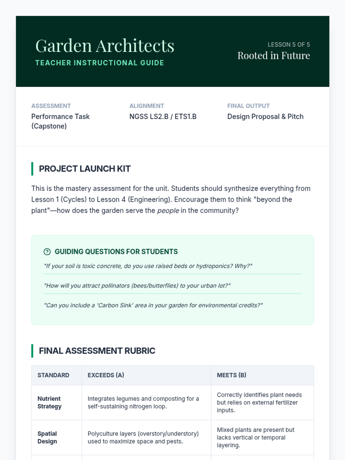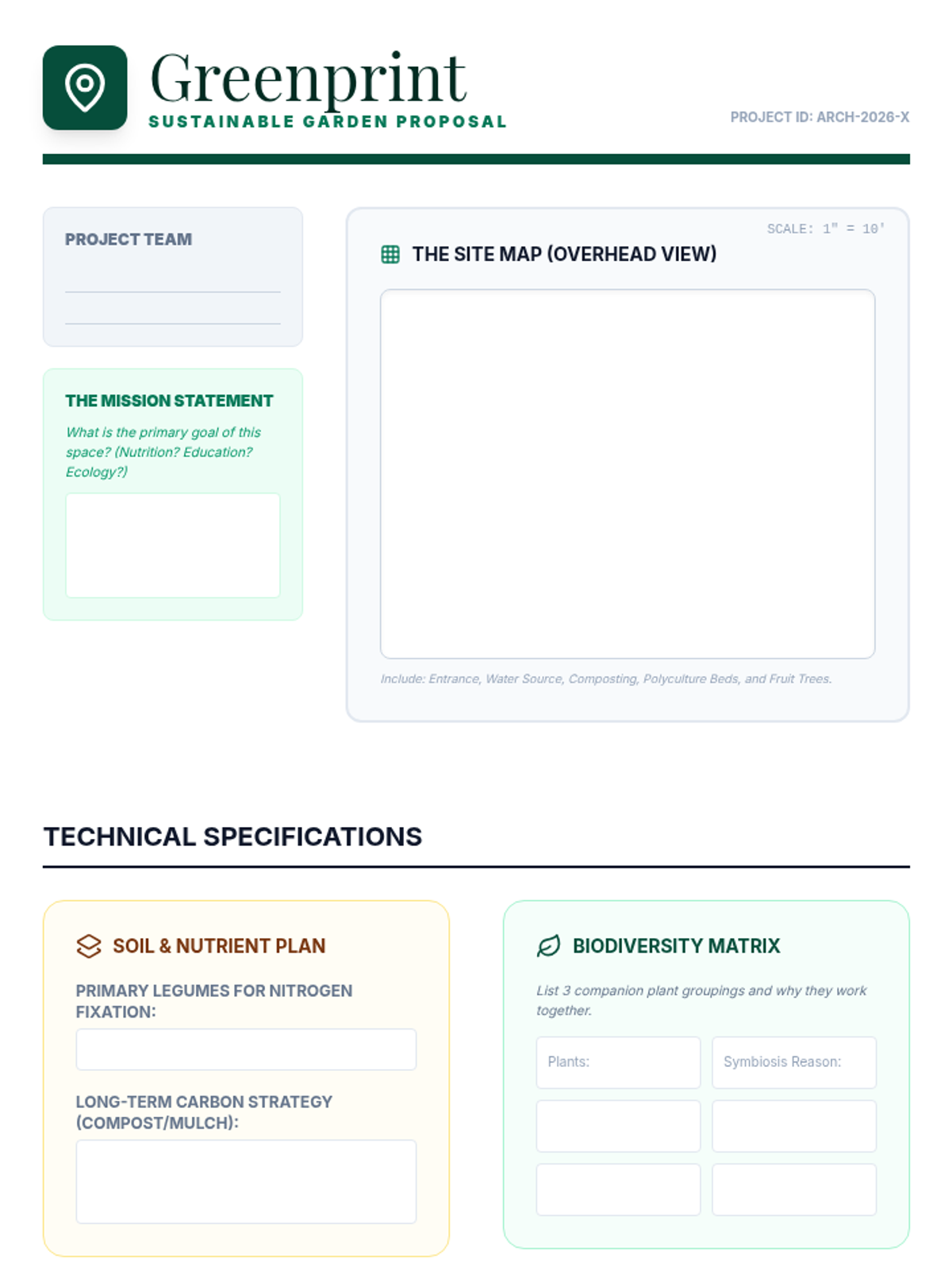 Apply all unit concepts to design a comprehensive sustainable garden proposal for a specific urban or community site.