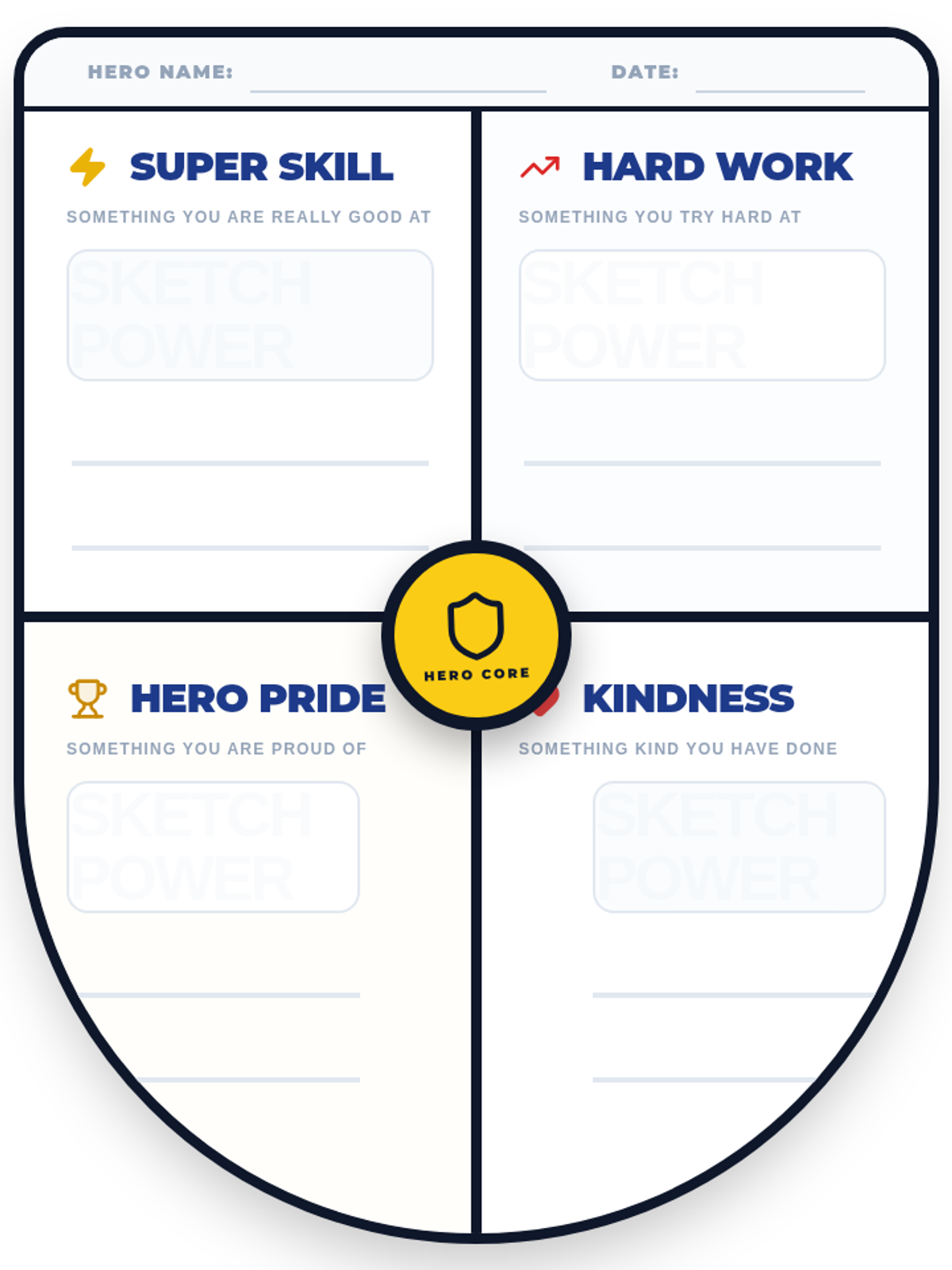 A lesson focused on self-reflection and identifying personal strengths through a superhero lens, encouraging students to recognize their own 'superpowers' in skills, effort, pride, and kindness.