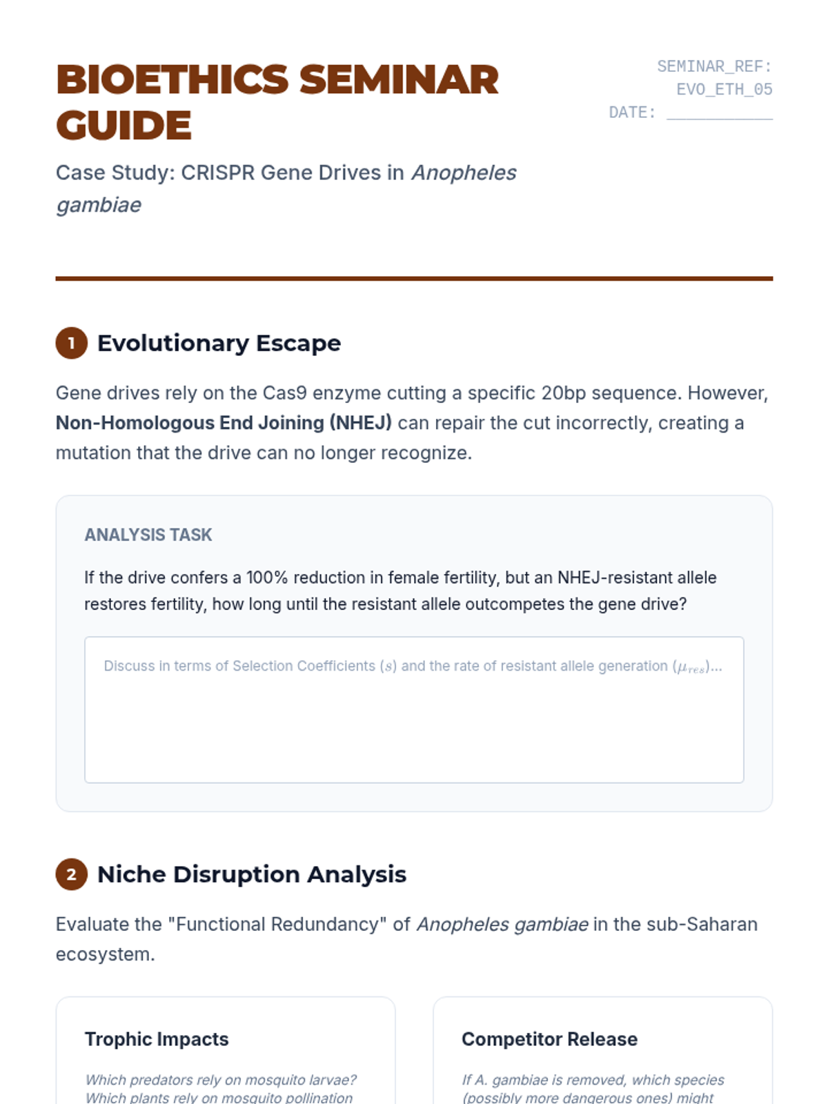 Examine the mechanics of CRISPR-based gene drives and evaluate the ecological and ethical implications of altering wild populations.