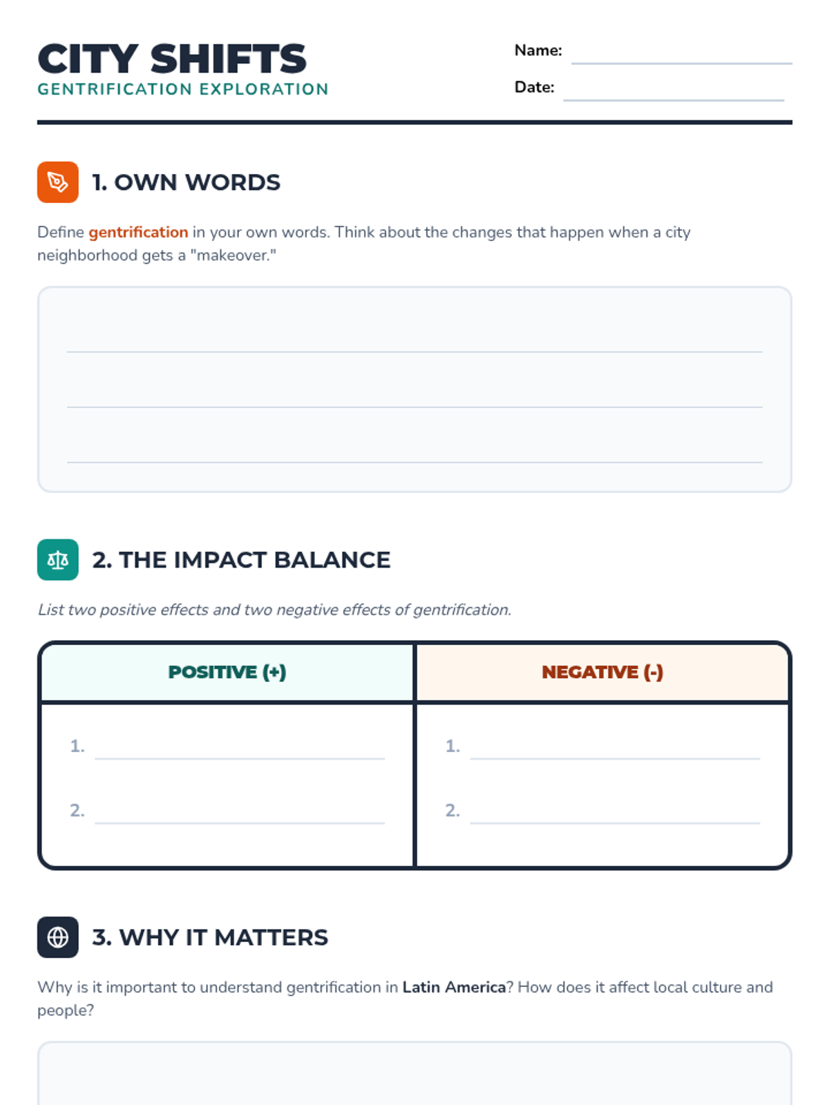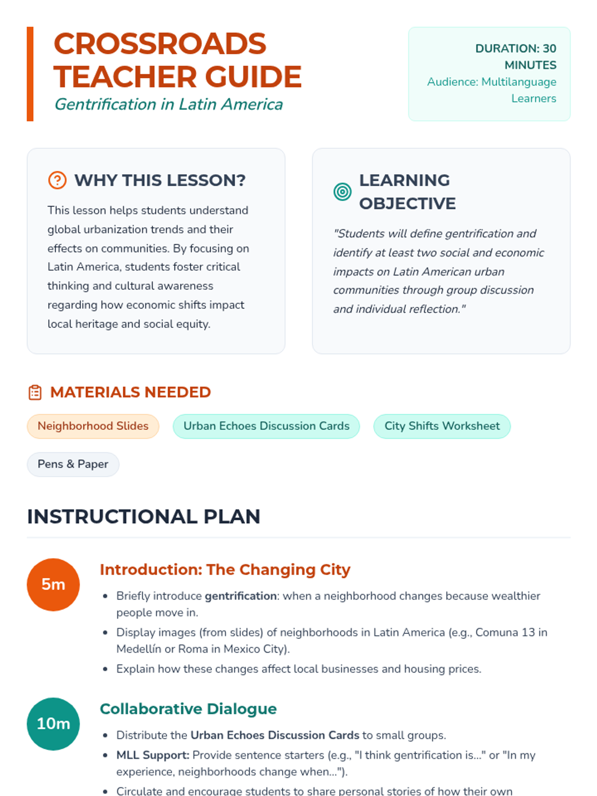 This lesson introduces multilanguage learners to the concept of gentrification in Latin American cities, exploring social and economic impacts through collaborative discussion and reflective activities.