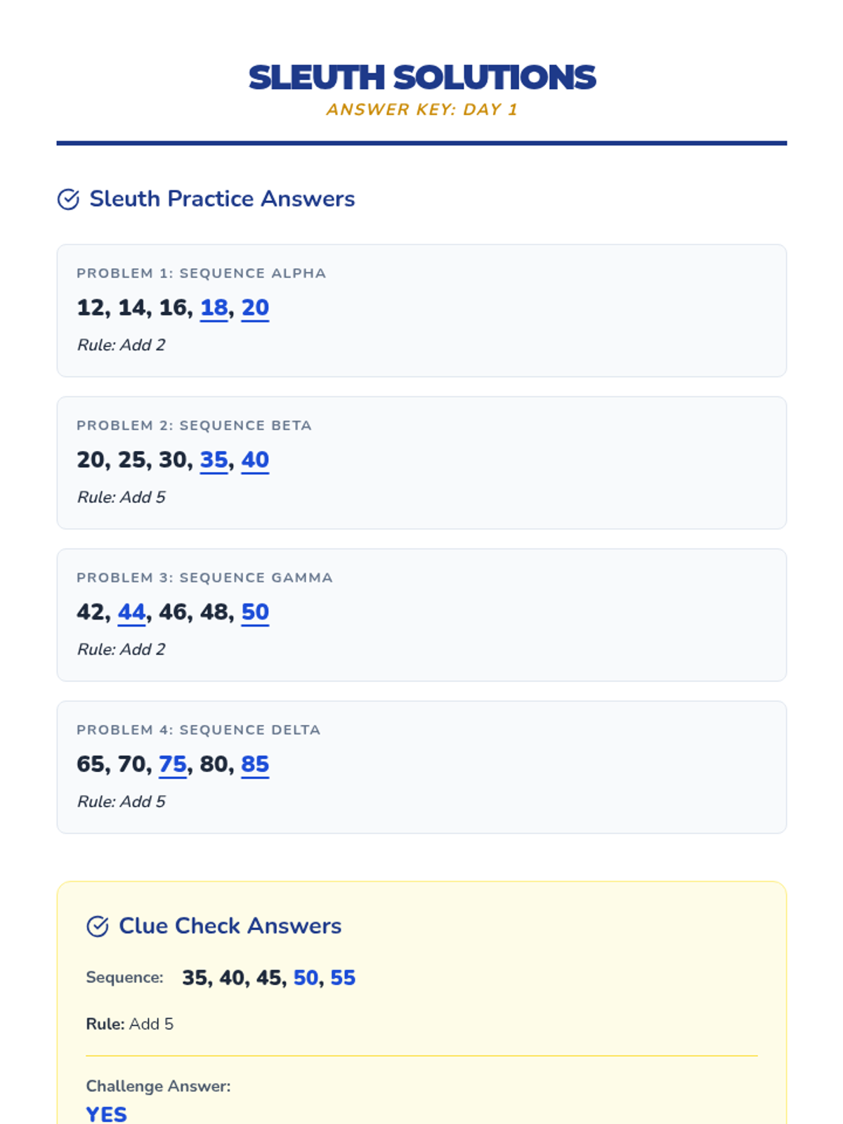 Teaches students to identify and extend number patterns and skip-counting sequences starting from various numbers. Students will learn to determine the 'rule' of a pattern to predict future values.