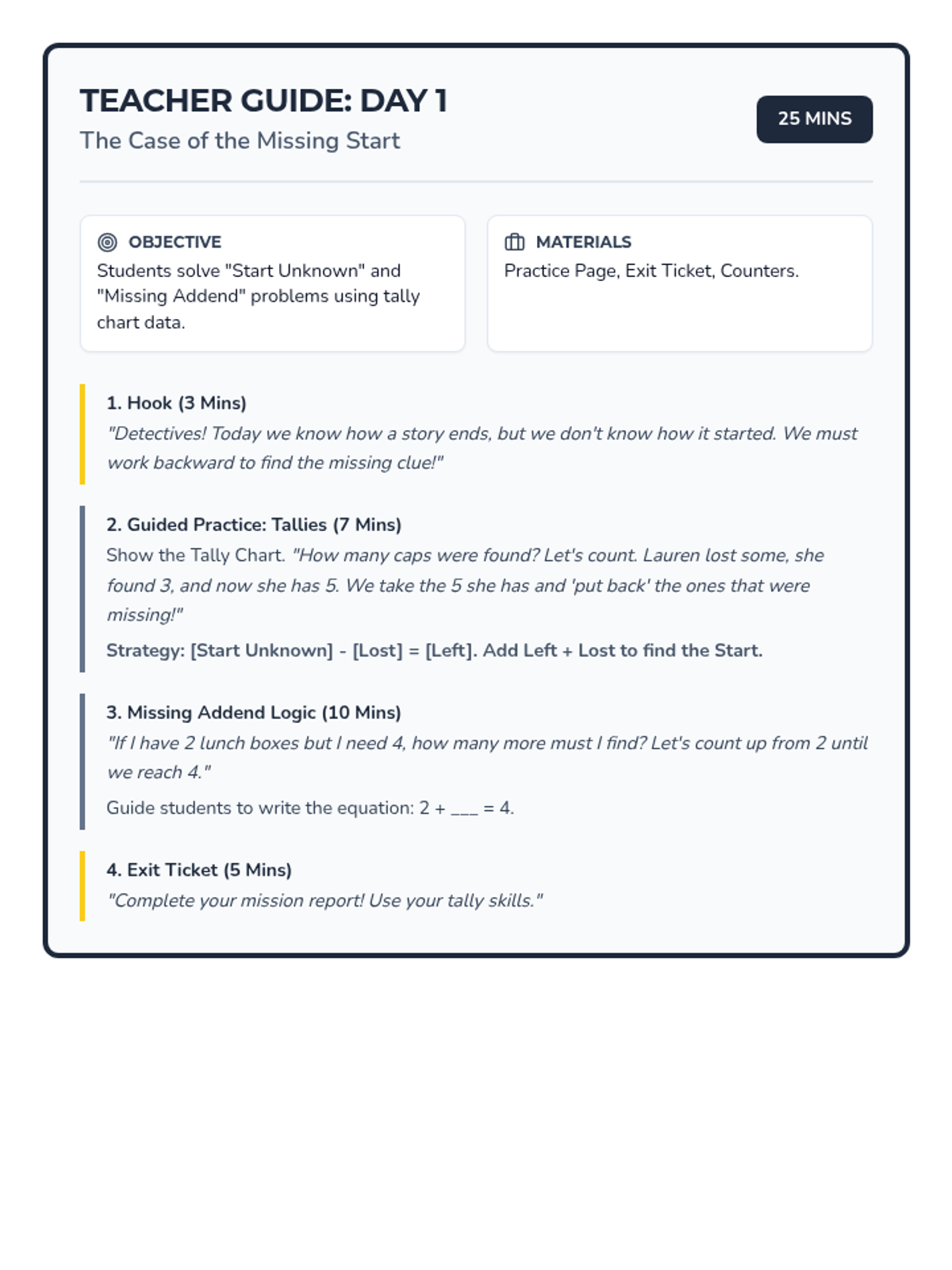 Students will learn to solve for missing addends and subtrahends within 20 using counting-on and related facts strategies.