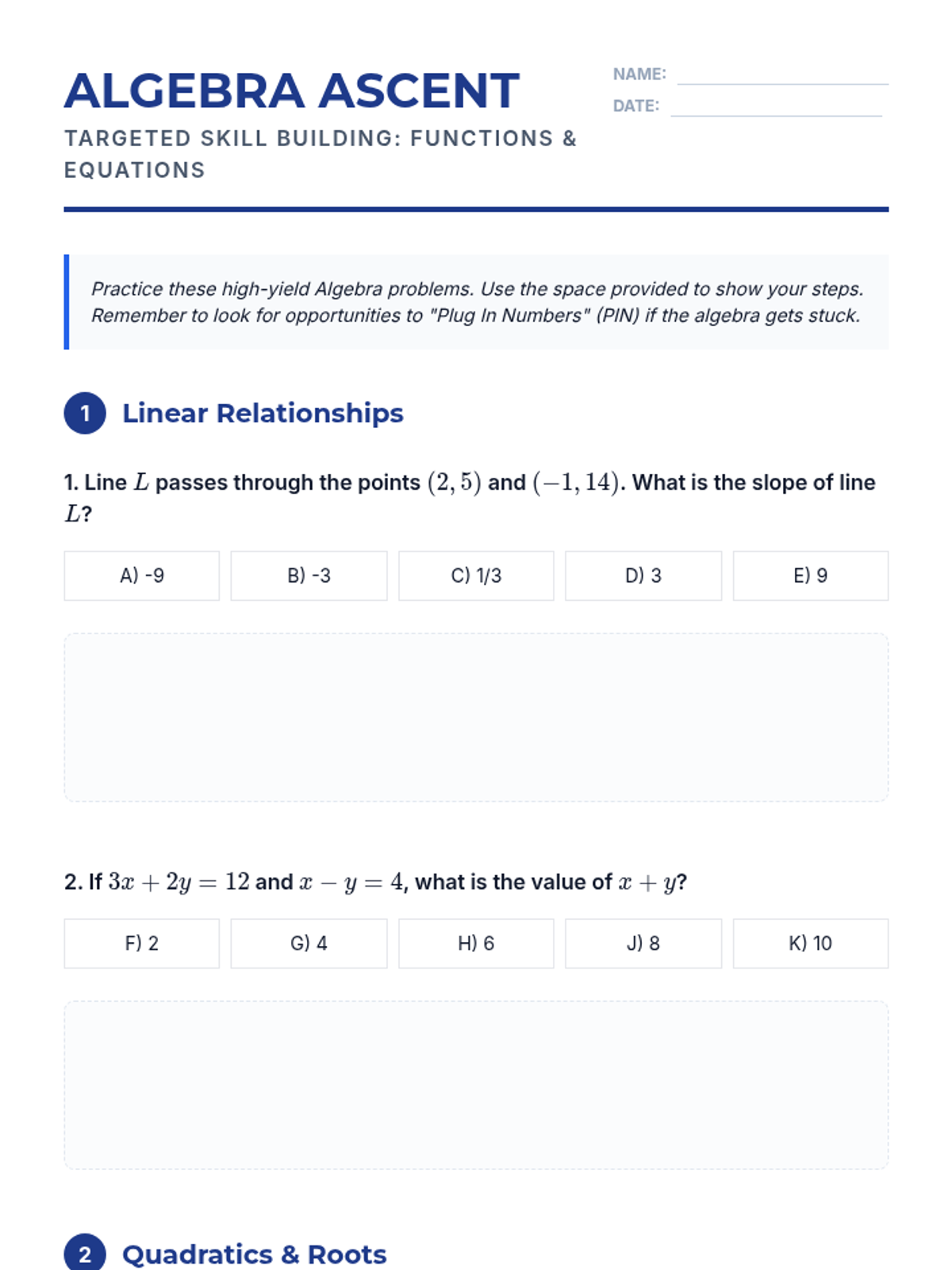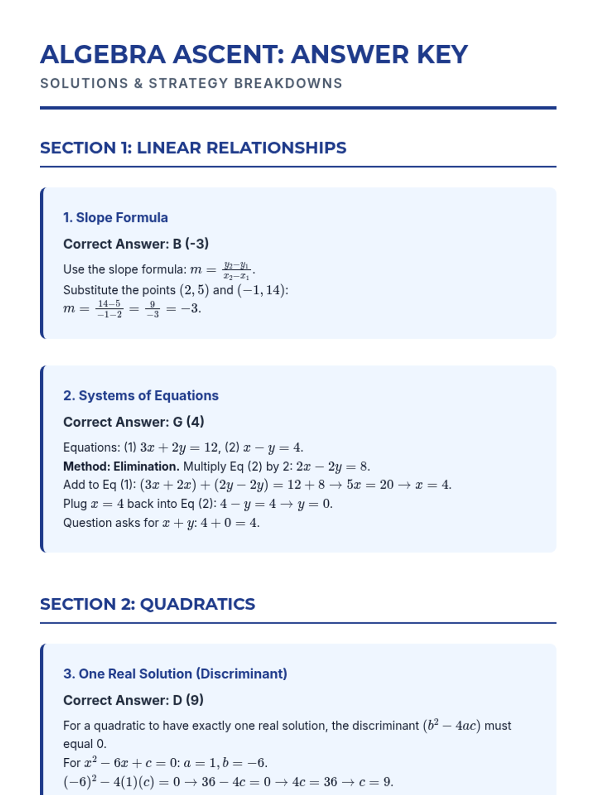 Deep dive into high-yield Algebra topics including linear functions, systems of equations, and quadratic properties frequently tested on the ACT.