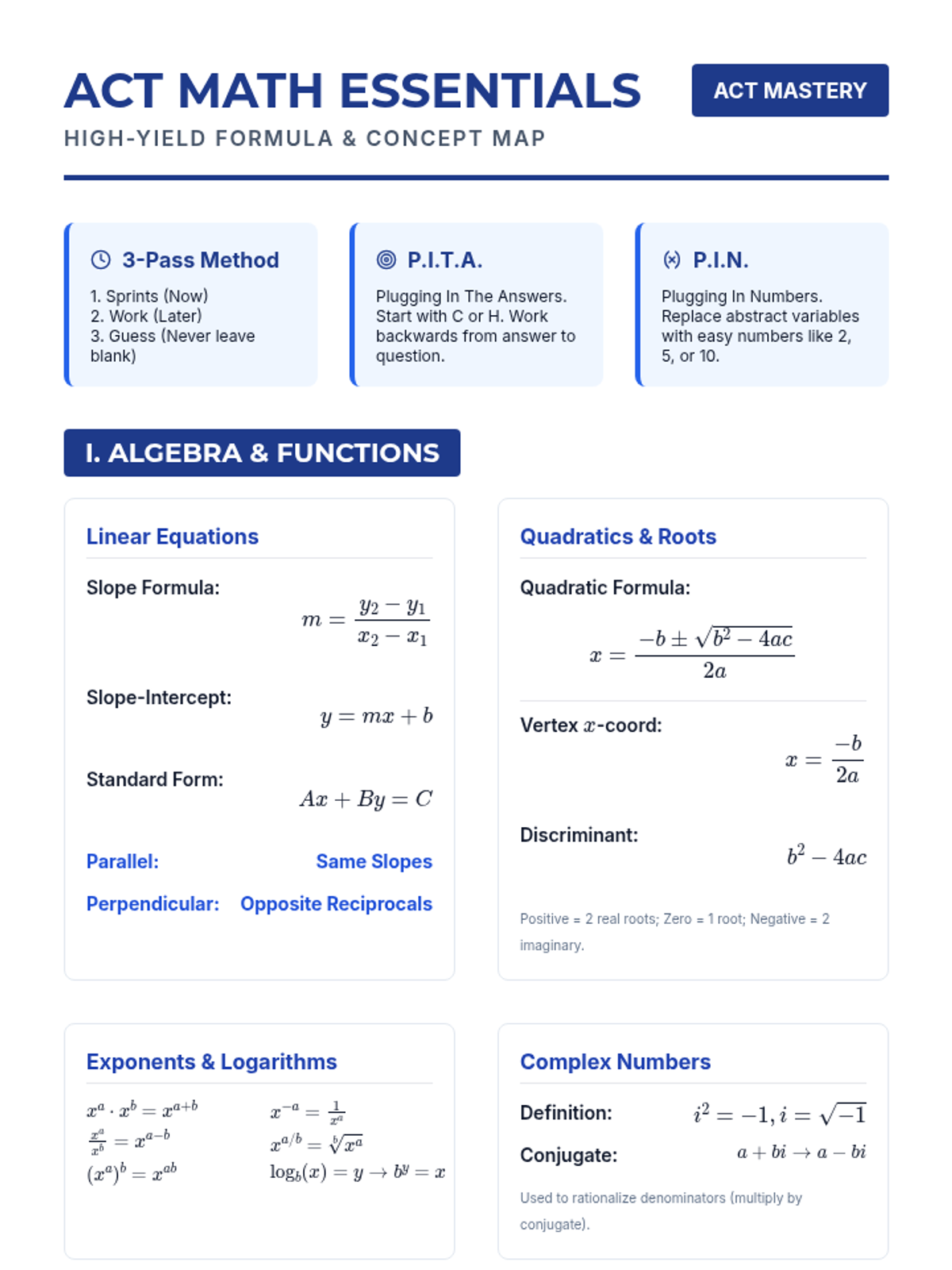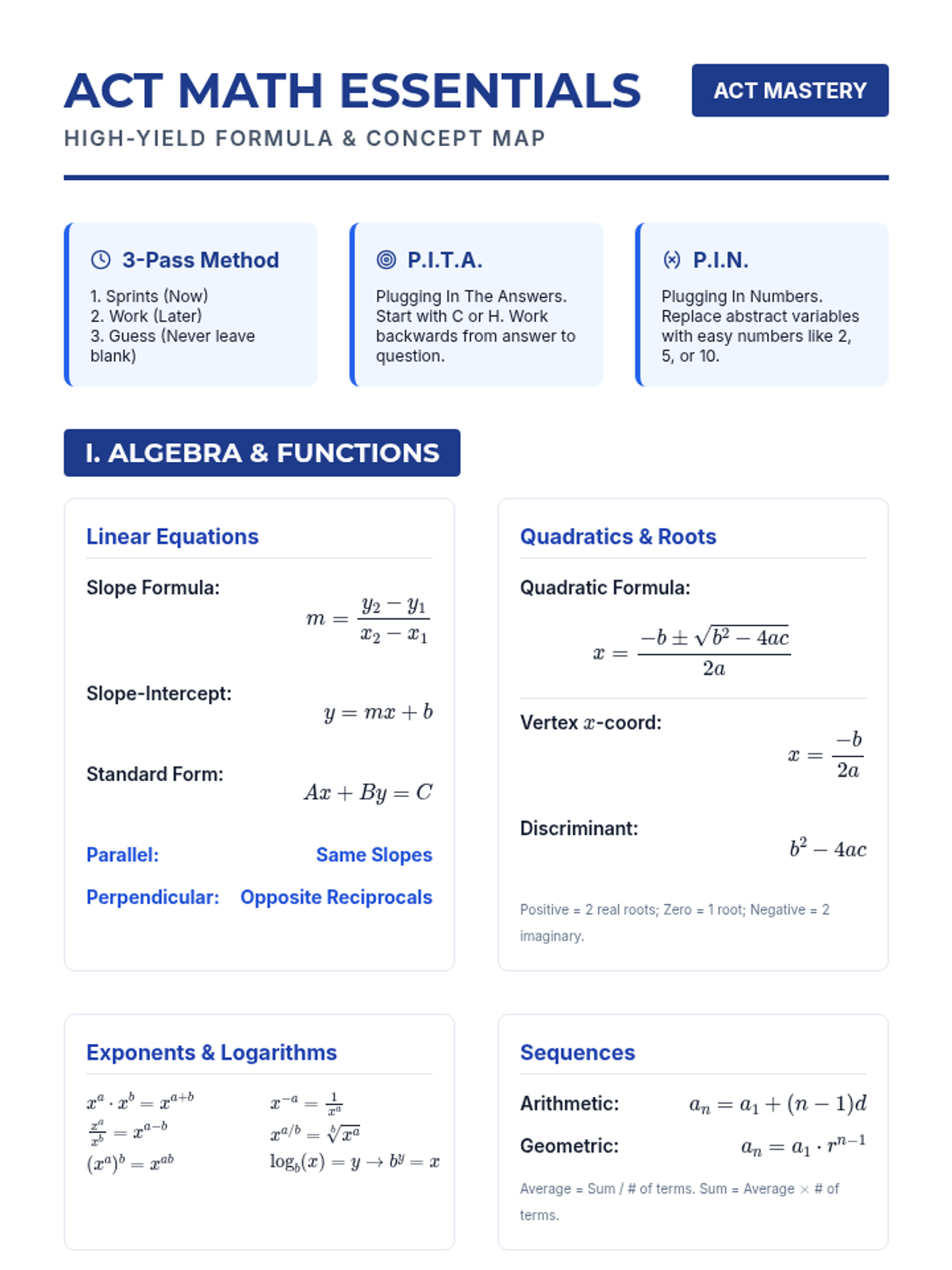 Master the structure of the ACT Math section and learn time-saving strategies like 'The 3-Pass Method' and 'Plugging In' while reviewing essential formulas.