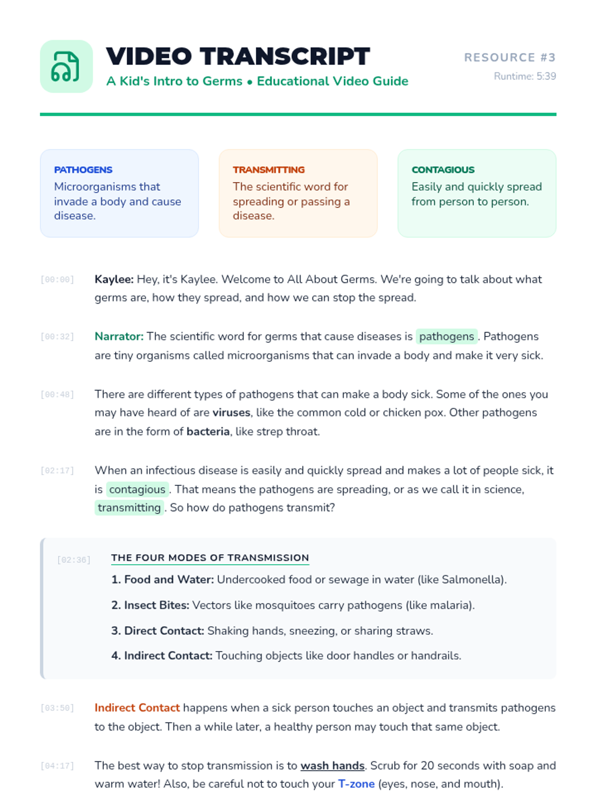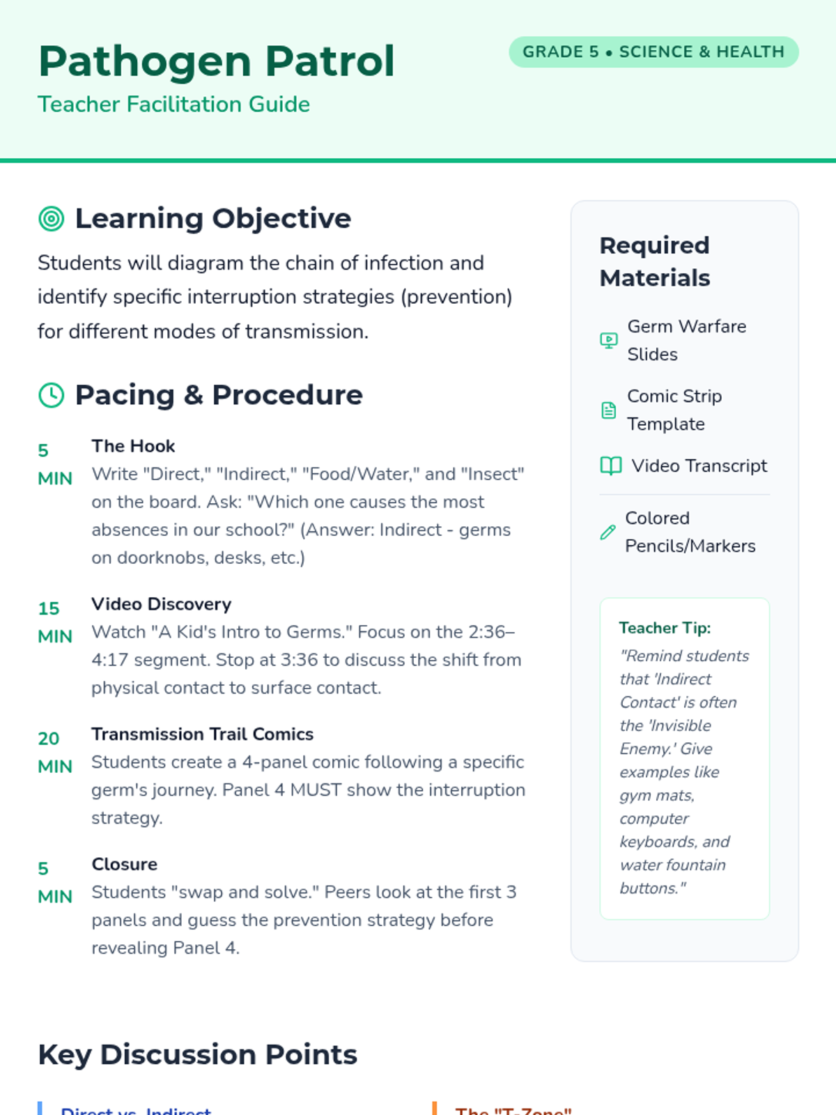 Students will explore how germs spread through four main modes of transmission and create a comic strip illustrating how to interrupt the 'chain of infection' to stay healthy.