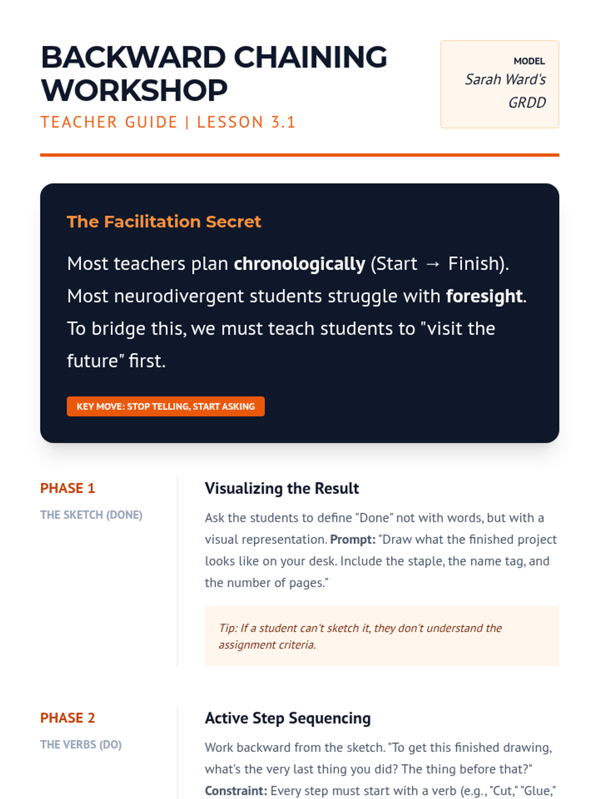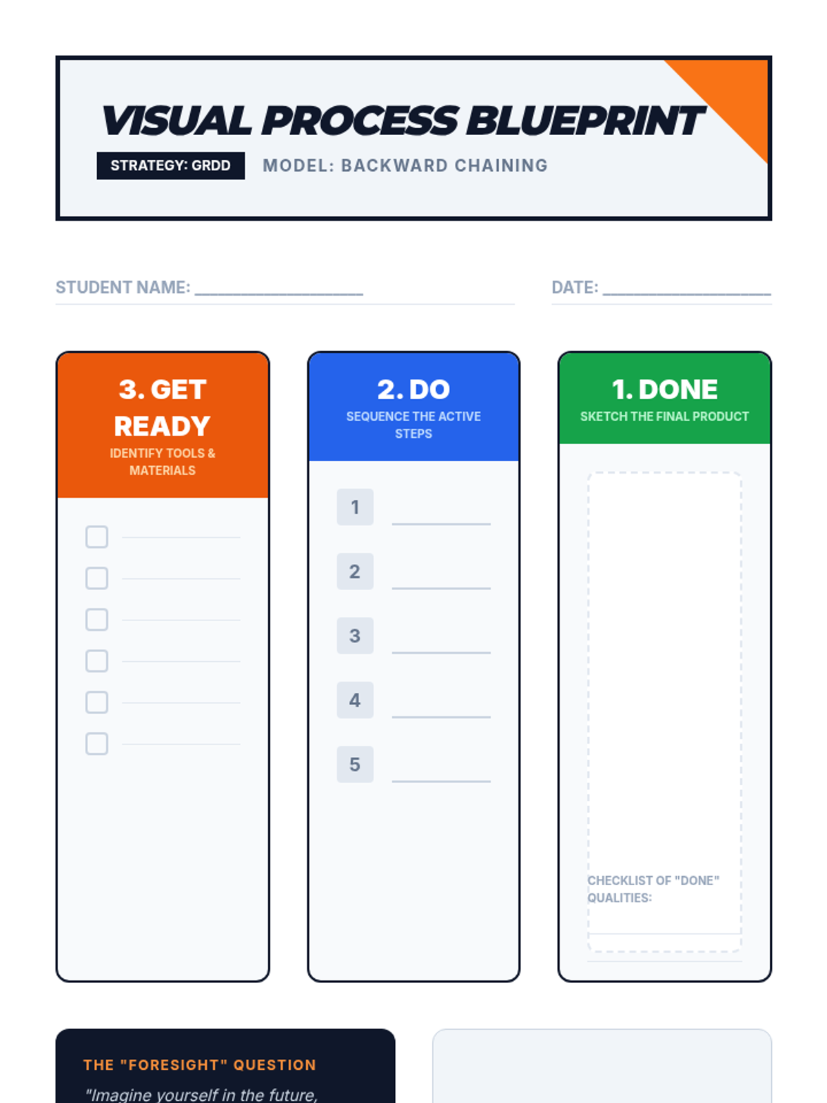 A deep dive into the 'Get Ready, Do, Done' model, focusing on backward chaining and helping students visualize the end product of a multi-day project.
