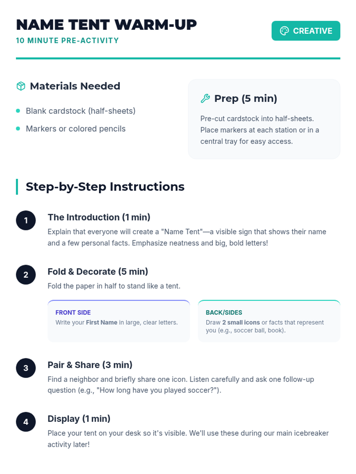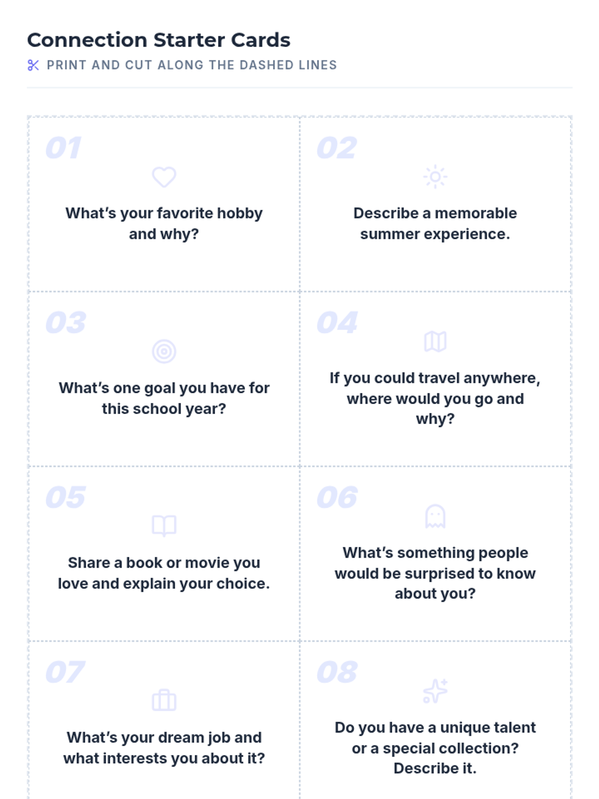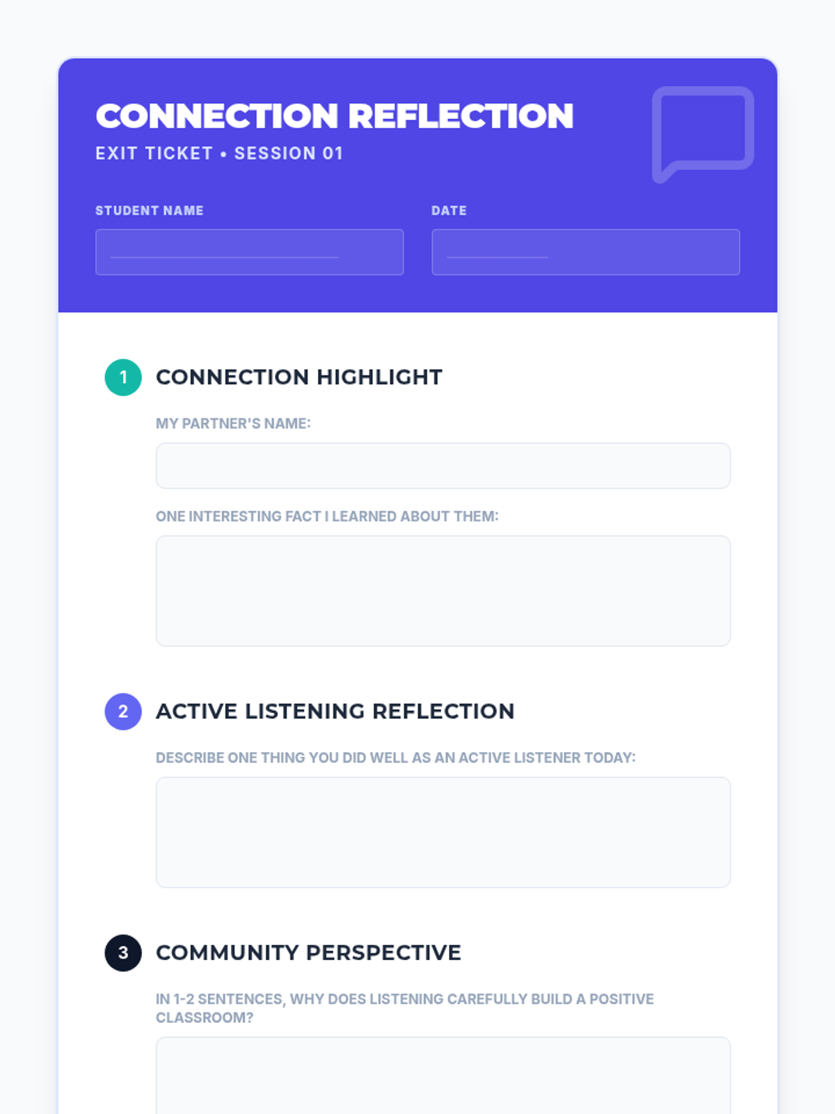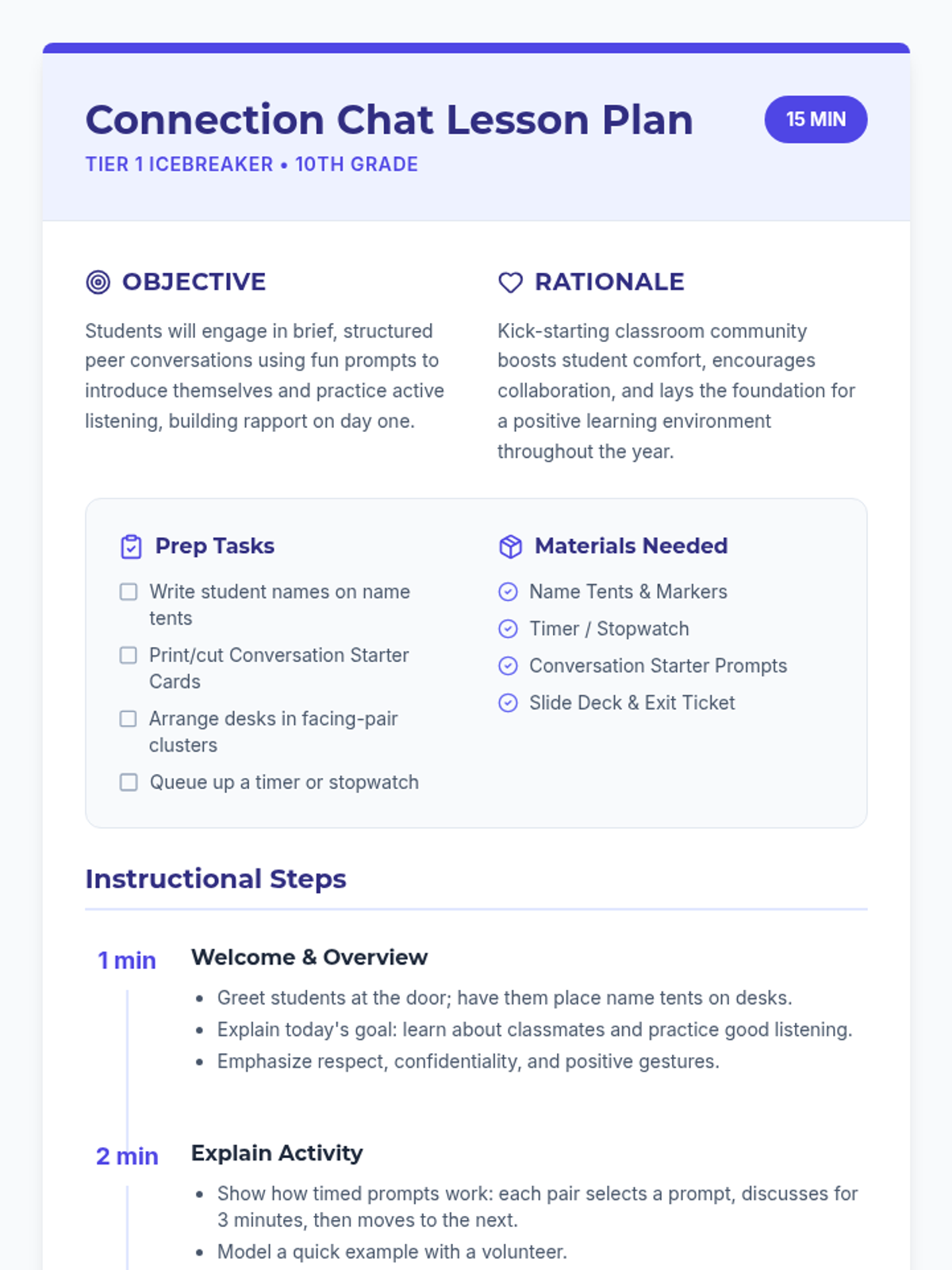 A quick, 15-minute Tier 1 icebreaker session for 10th graders to build rapport and practice communication skills through structured peer conversations.