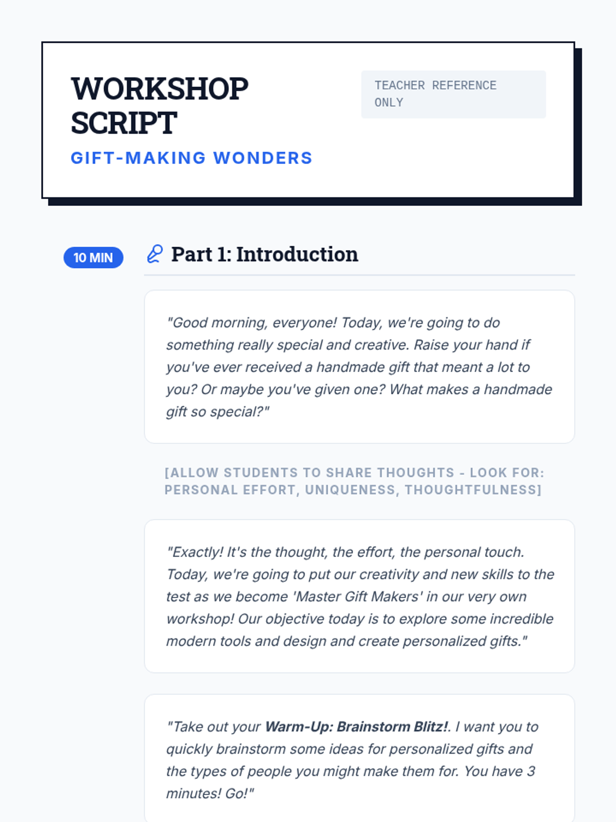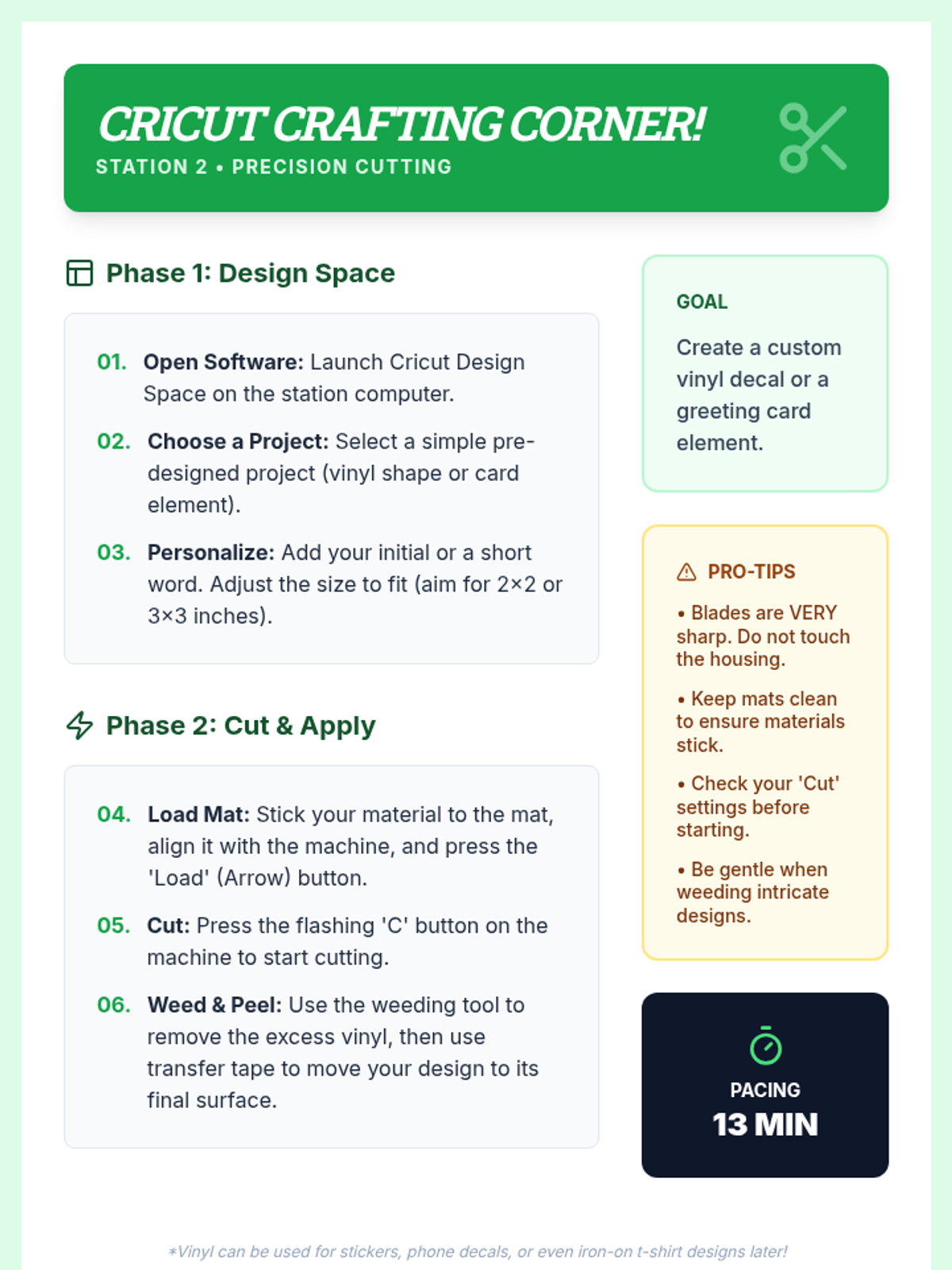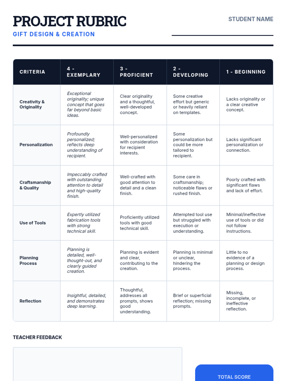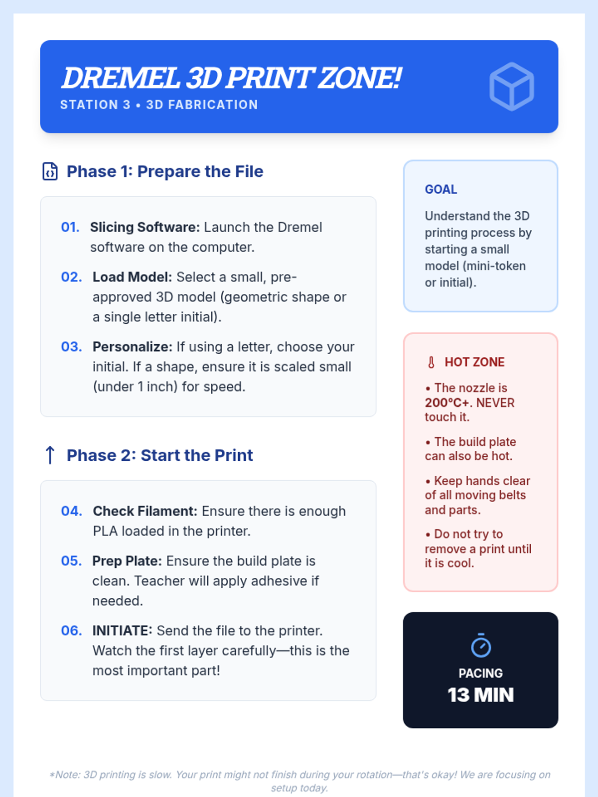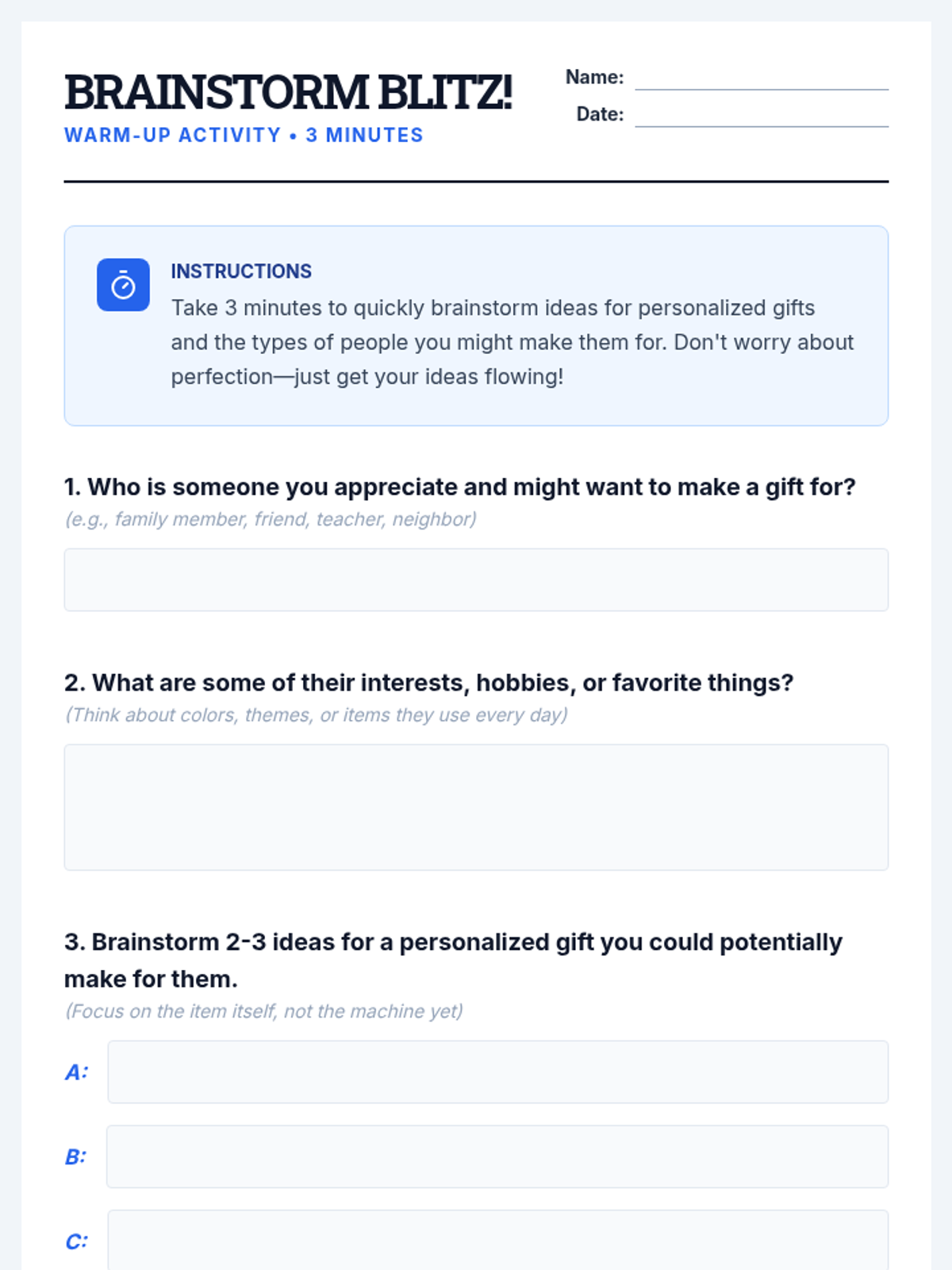 A 90-minute workshop where 9th-grade students rotate through stations to explore modern fabrication tools like laser cutters, 3D printers, and vinyl cutters to design and create personalized gifts.