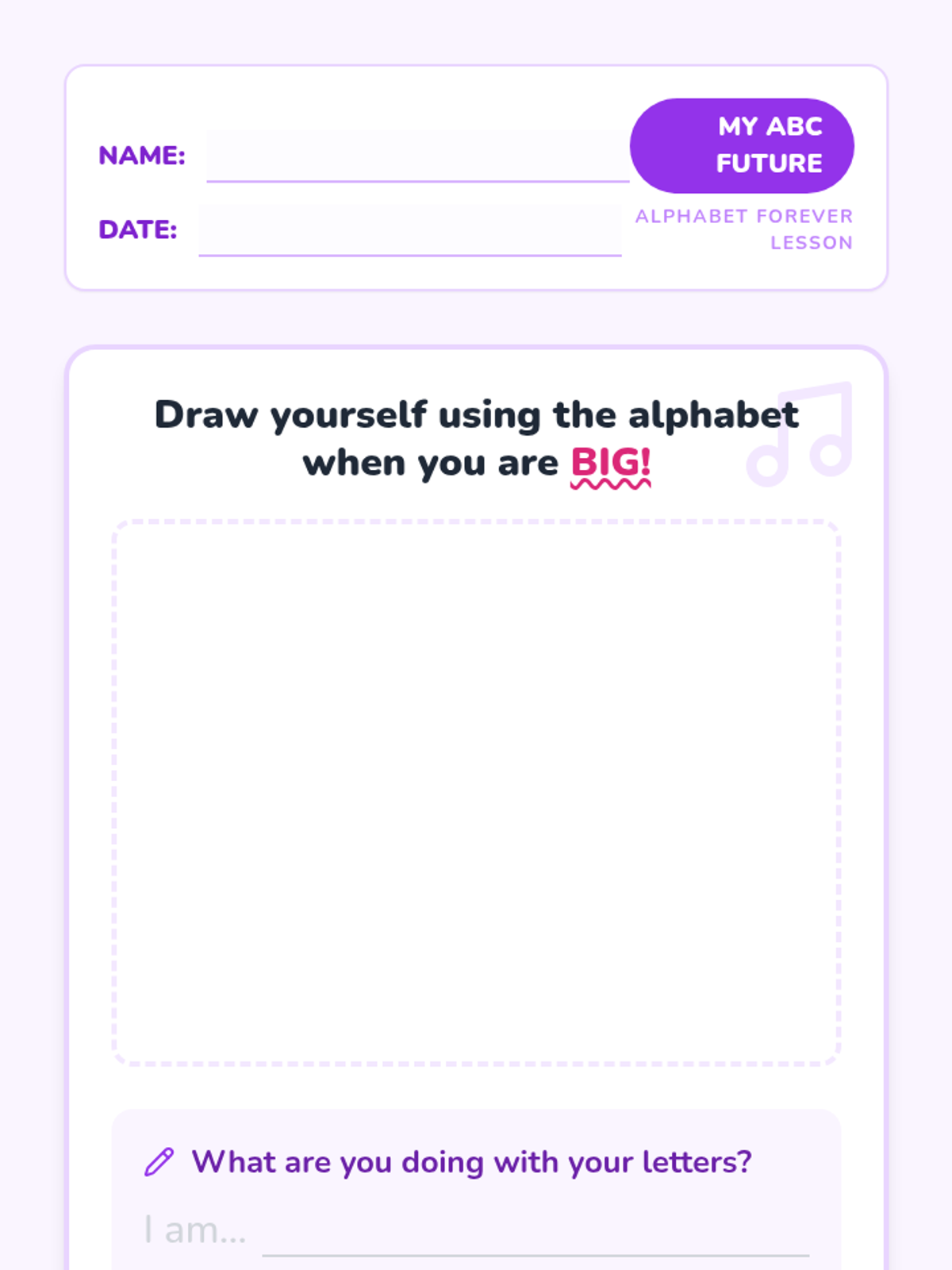 A high-energy Kindergarten lesson where students build confidence in their alphabet knowledge through a music-video-inspired performance activity. Students watch a rap video, practice vocal warm-ups, and perform the ABCs in groups using microphones and sunglasses.