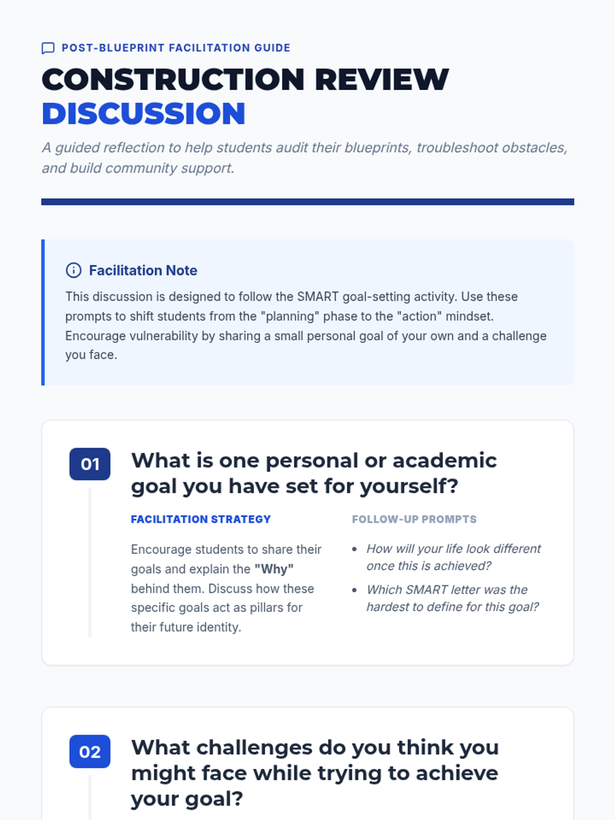 Focuses on the second 'P' (Purpose), guiding students to connect their daily actions to their deeper 'Why' to sustain effort when things get tough.