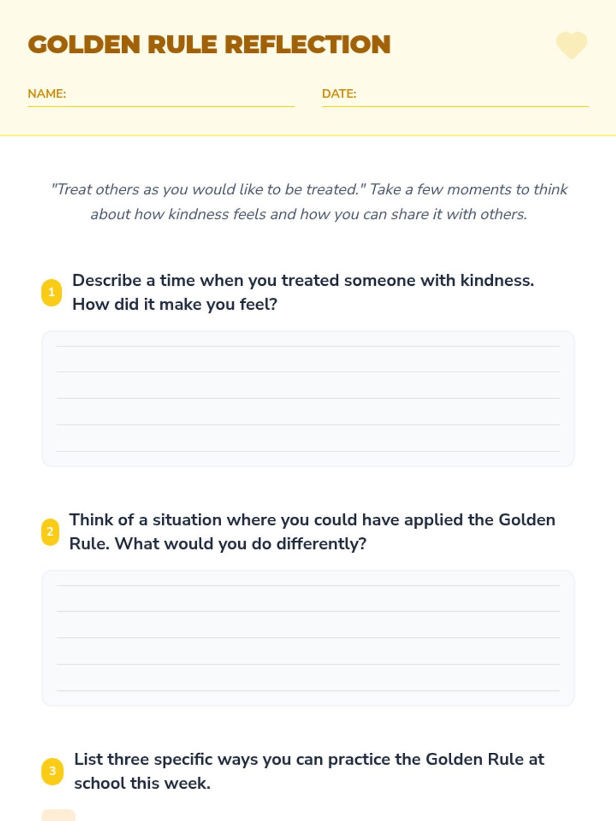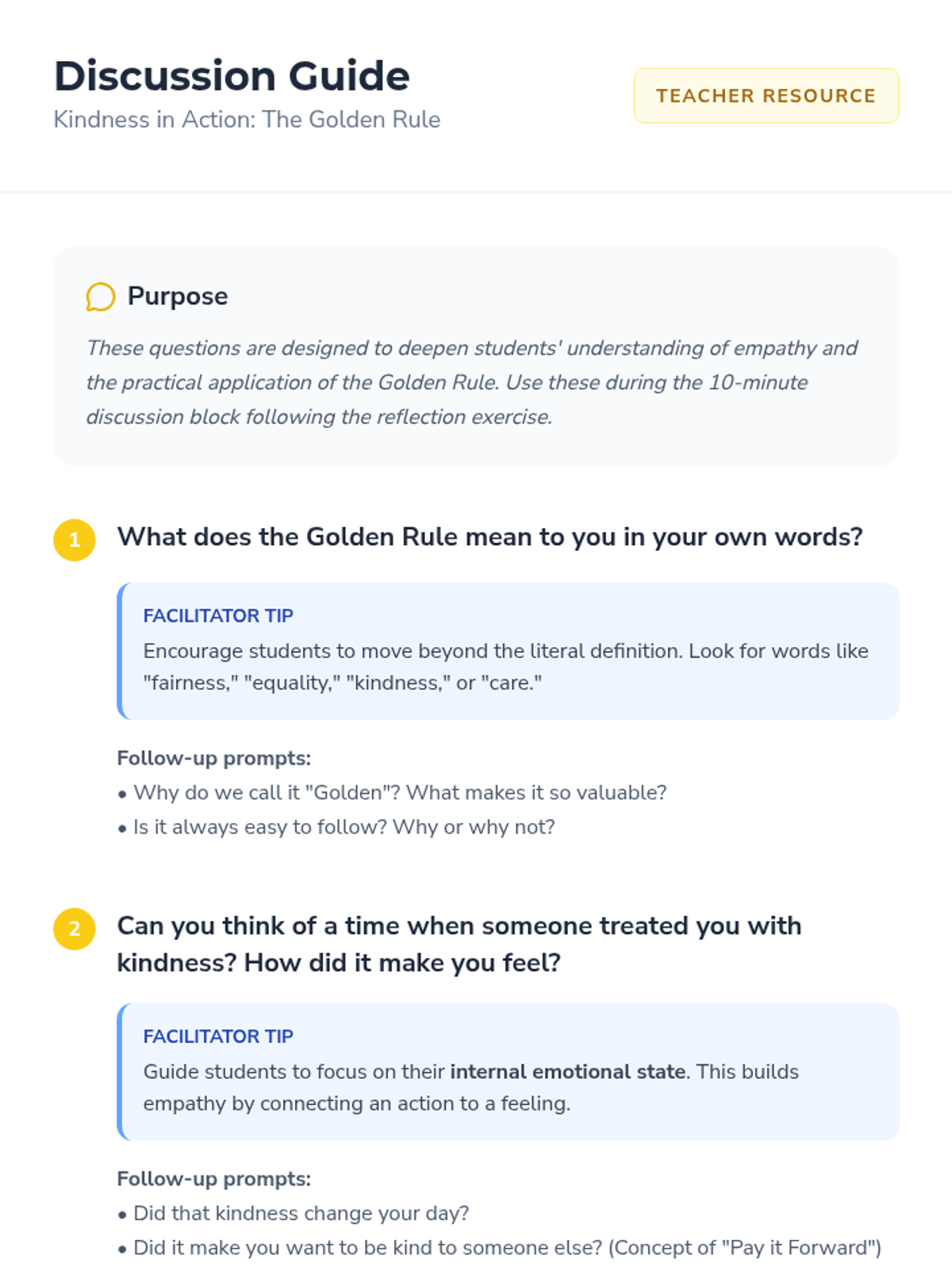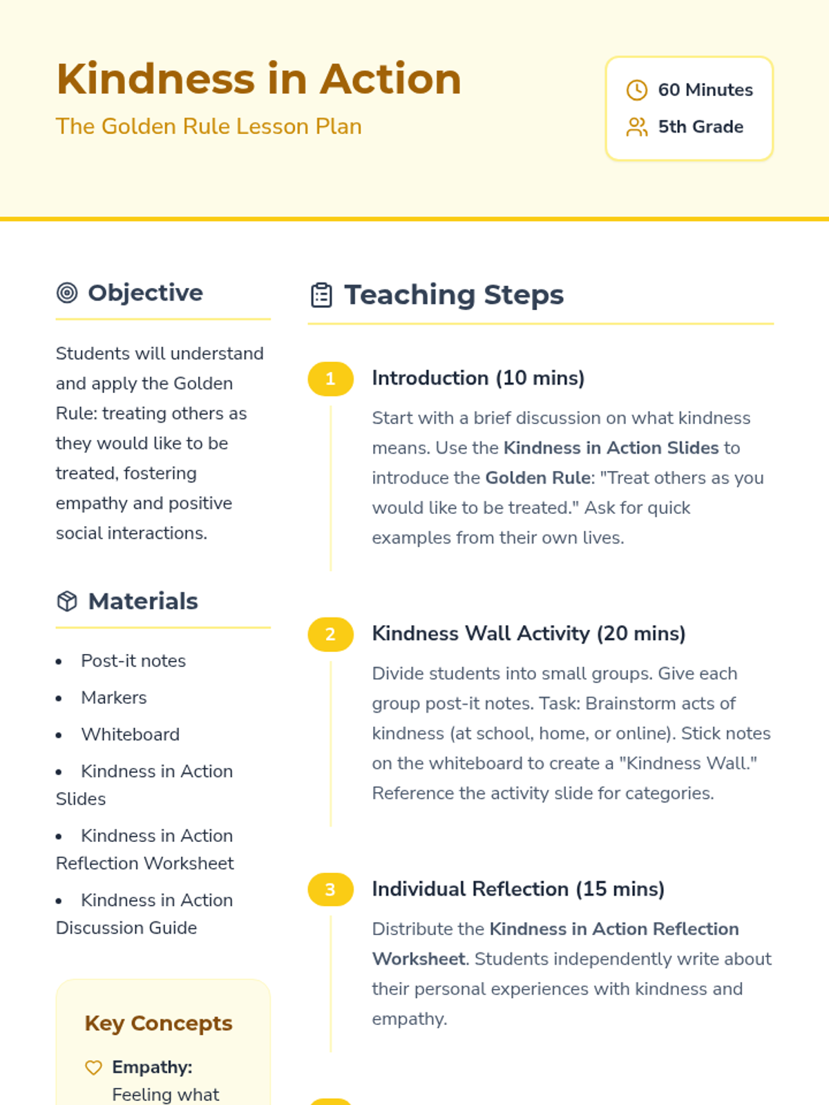 A lesson for 5th-grade students on the Golden Rule, focusing on empathy, kindness, and mutual respect through interactive activities and reflection.