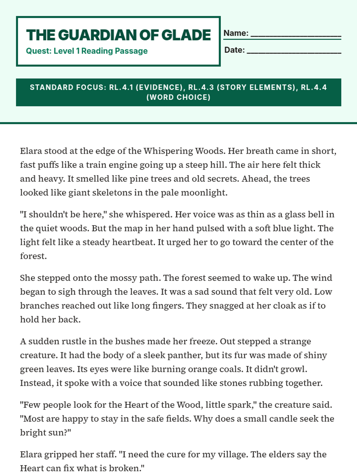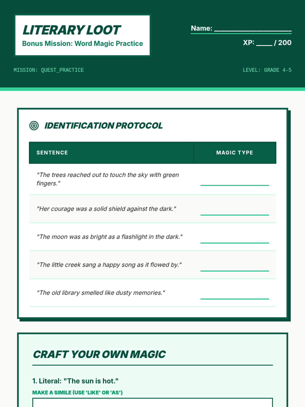 Focuses on literature and figurative language through the theme of an enchanted forest quest.