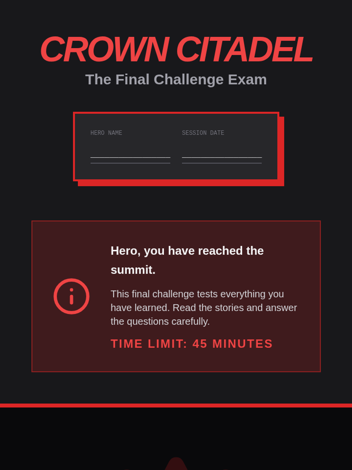 A comprehensive mock exam presented as a final boss battle to test all reading skills.