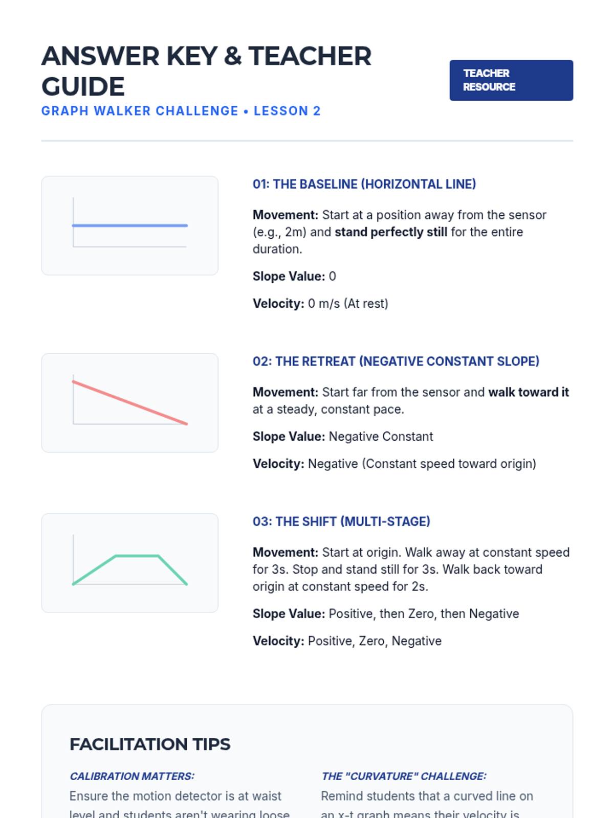 Students use motion detectors or simulations to create graphs matching specific shapes. The lesson focuses on interpreting the slope of an x-t graph as velocity.