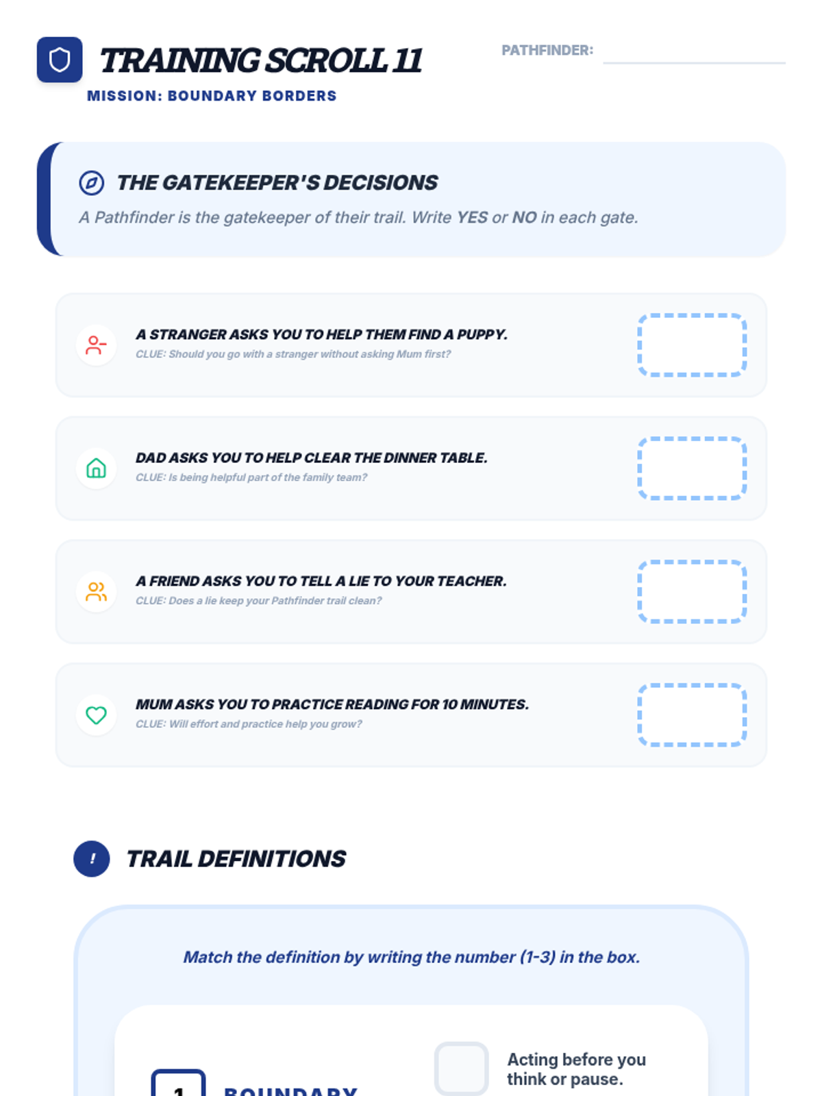 Mastering boundaries. Learning when and how to say 'No' or 'Yes' to family, friends, and strangers.