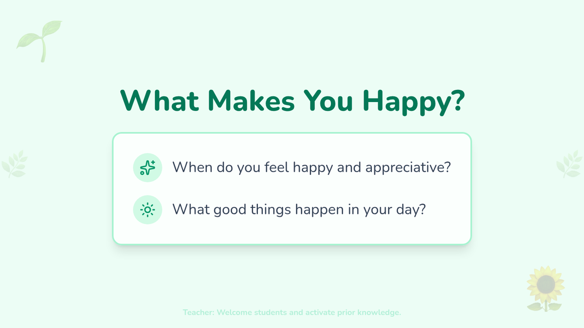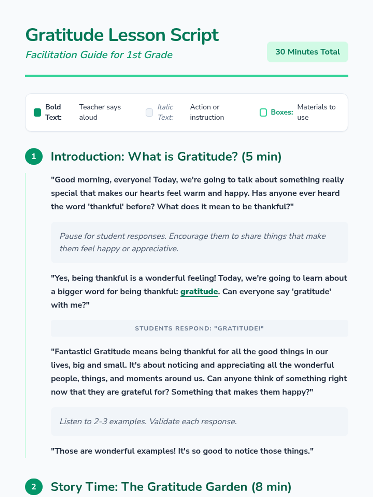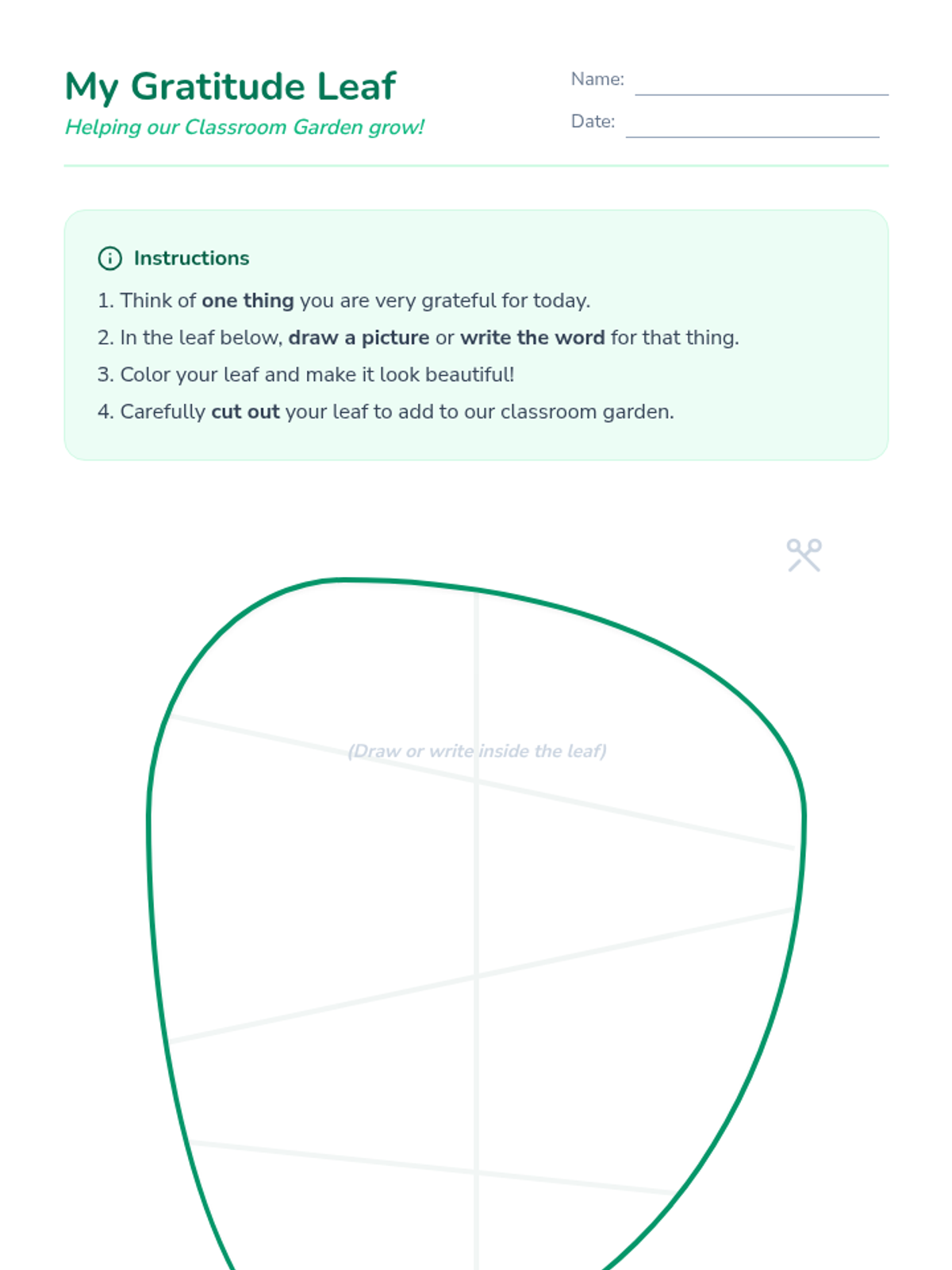 A whimsical 1st-grade lesson introducing gratitude through storytelling, an interactive game, and a collaborative garden-themed art project.