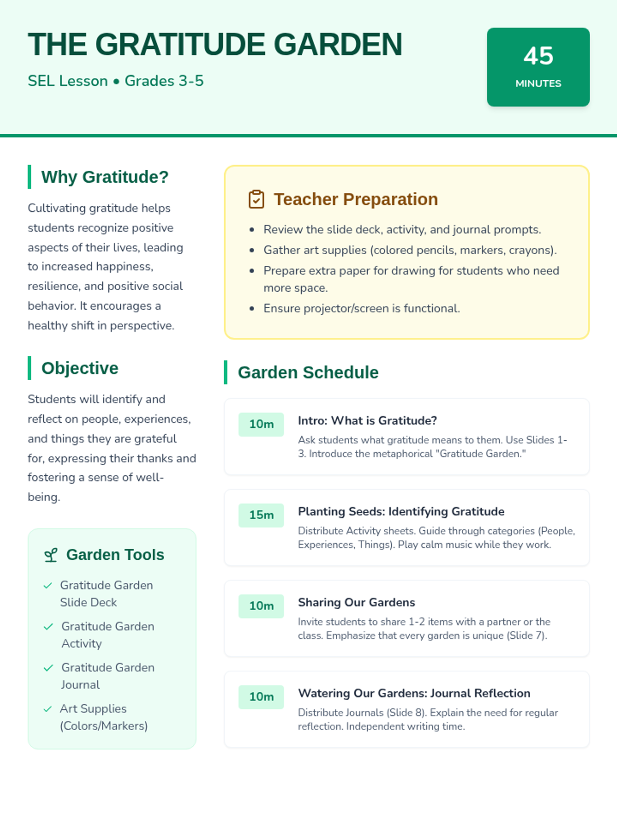 A social-emotional learning lesson for elementary students focused on recognizing and expressing gratitude for the people, experiences, and things in their lives.