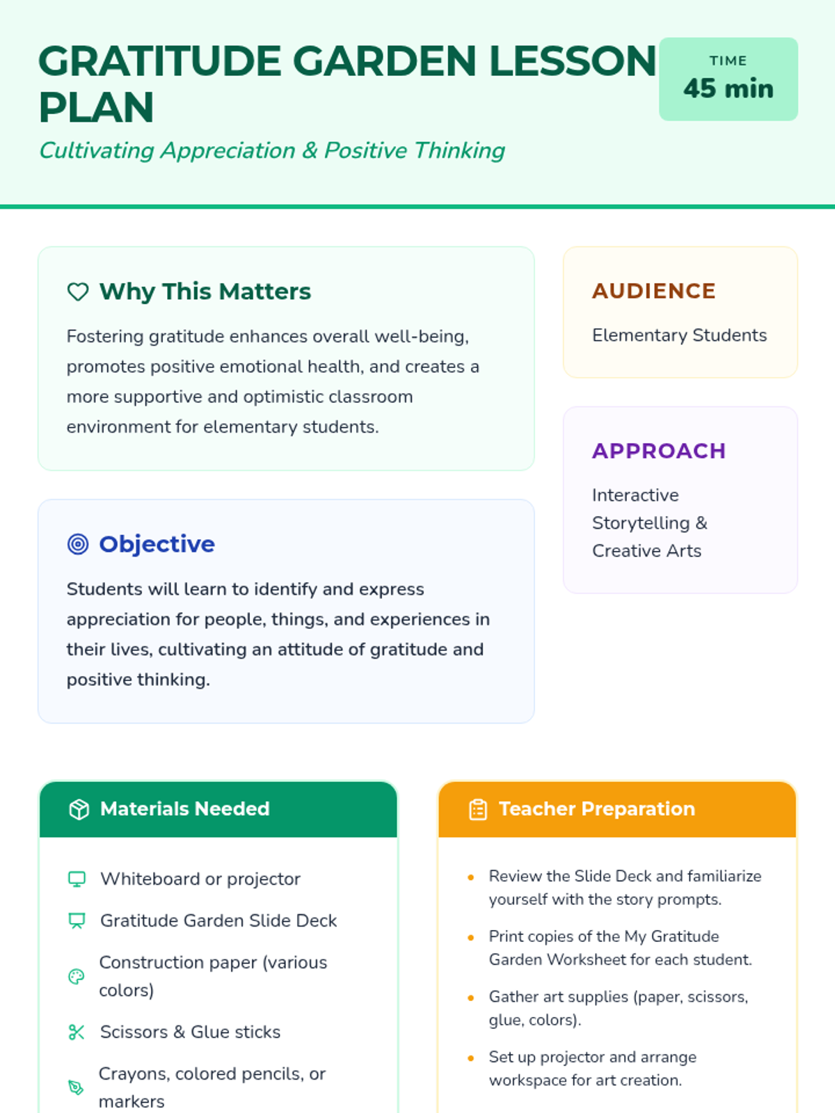 A 45-minute elementary lesson that uses storytelling and art to help students identify and express gratitude for the people and things in their lives.