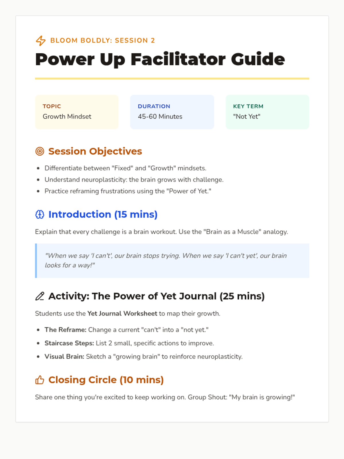 Explores the growth mindset and the 'power of yet' to help girls navigate challenges and view mistakes as learning opportunities.