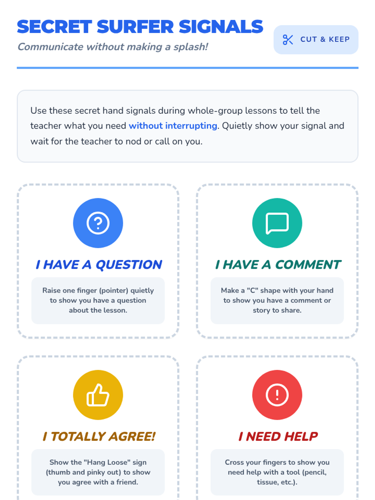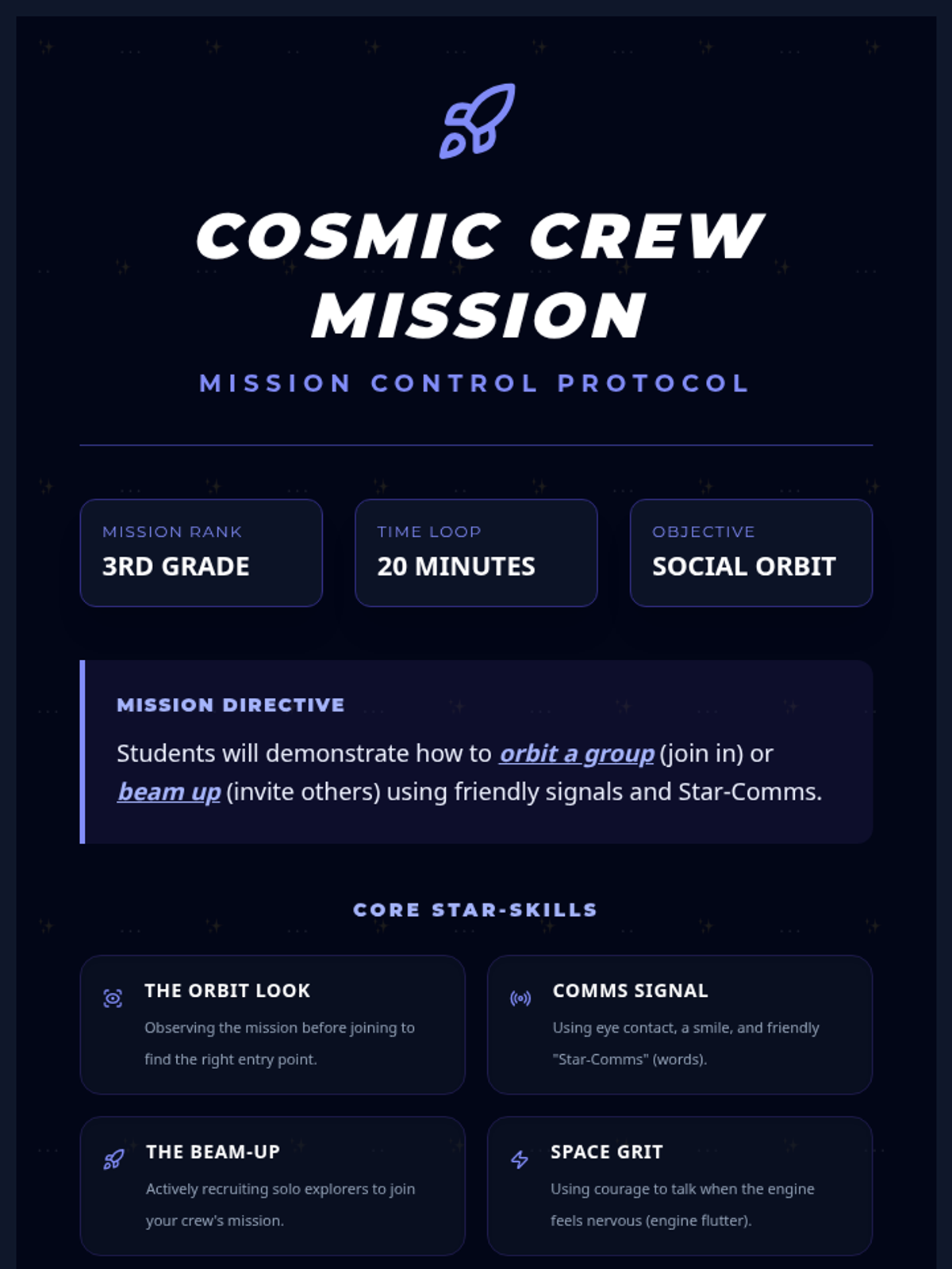 A comprehensive social-emotional learning lesson focused on impulse control, specifically targeting blurting out and maintaining personal space for 2nd-grade students. Using the 'Stoplight Method,' students learn to pause, think, and choose appropriate actions in the classroom.