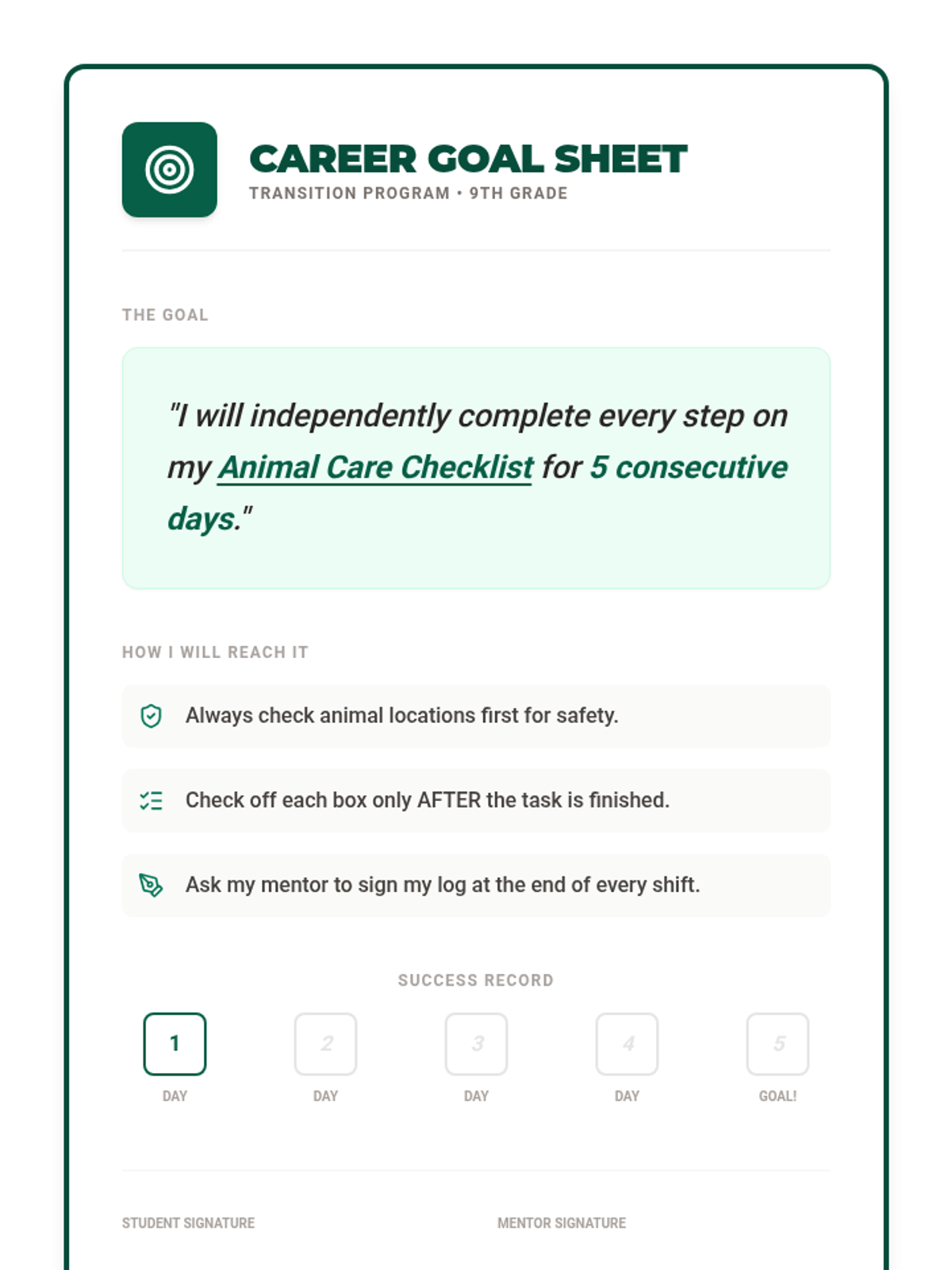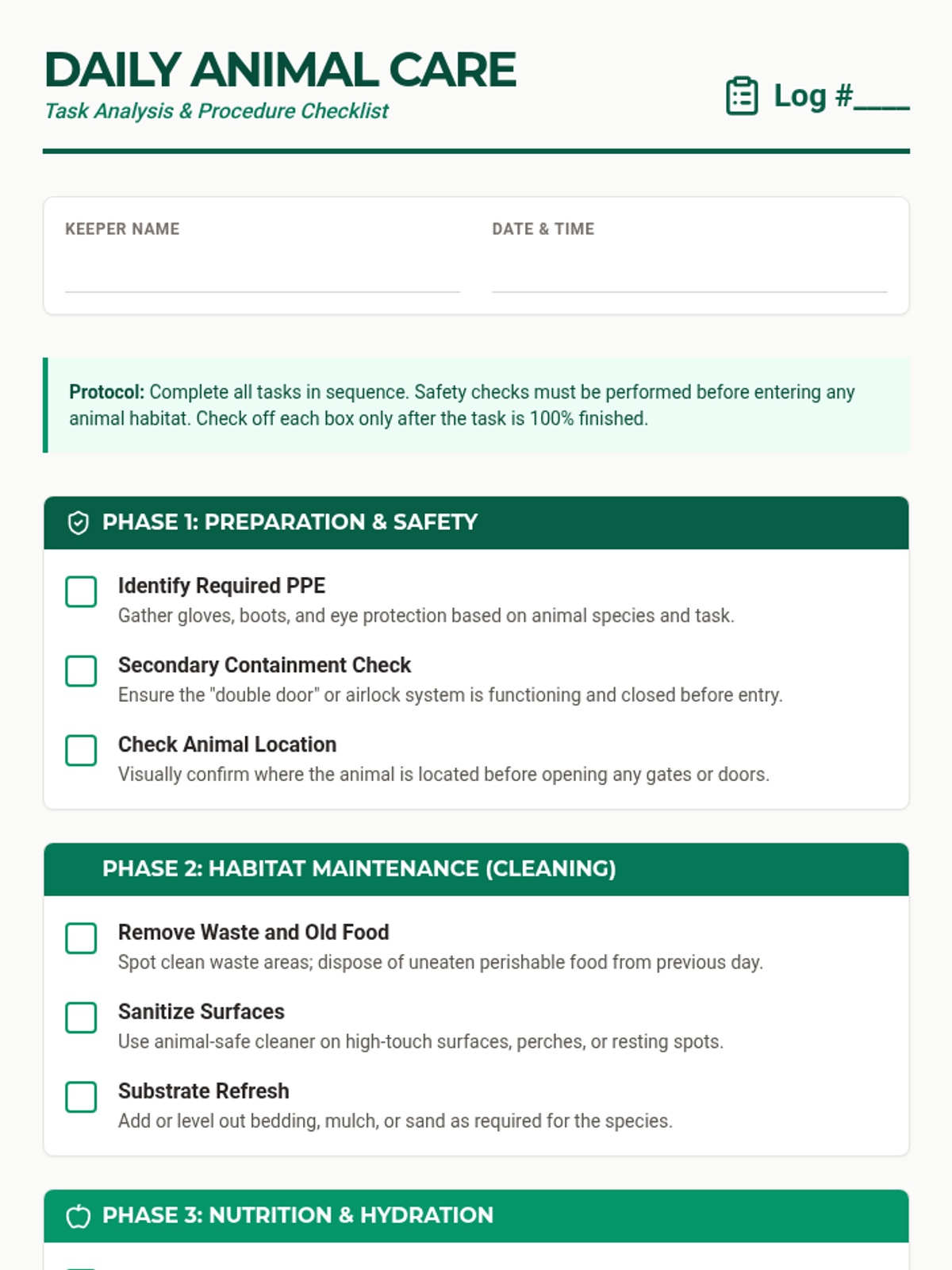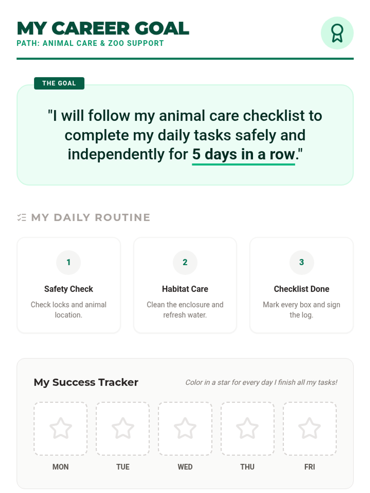 A transition-focused lesson designed for students interested in animal care and zoo careers. This lesson provides practical tools for mastering daily animal care tasks and exploring professional paths in zoology.