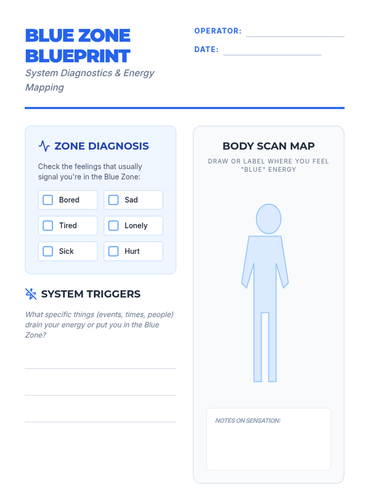 Focuses on identifying the Blue Zone (tired, sad, bored, sick) through physical cues and high-school-relevant triggers, followed by 'Energy Booster' coping strategies.