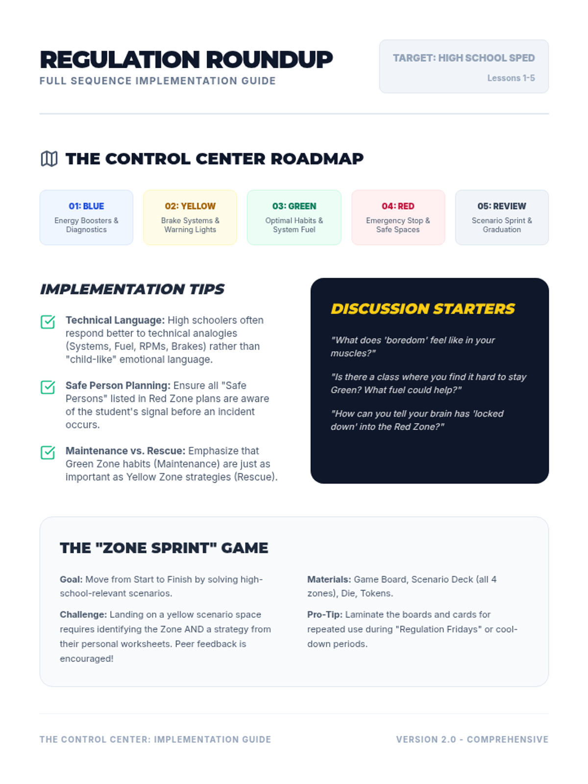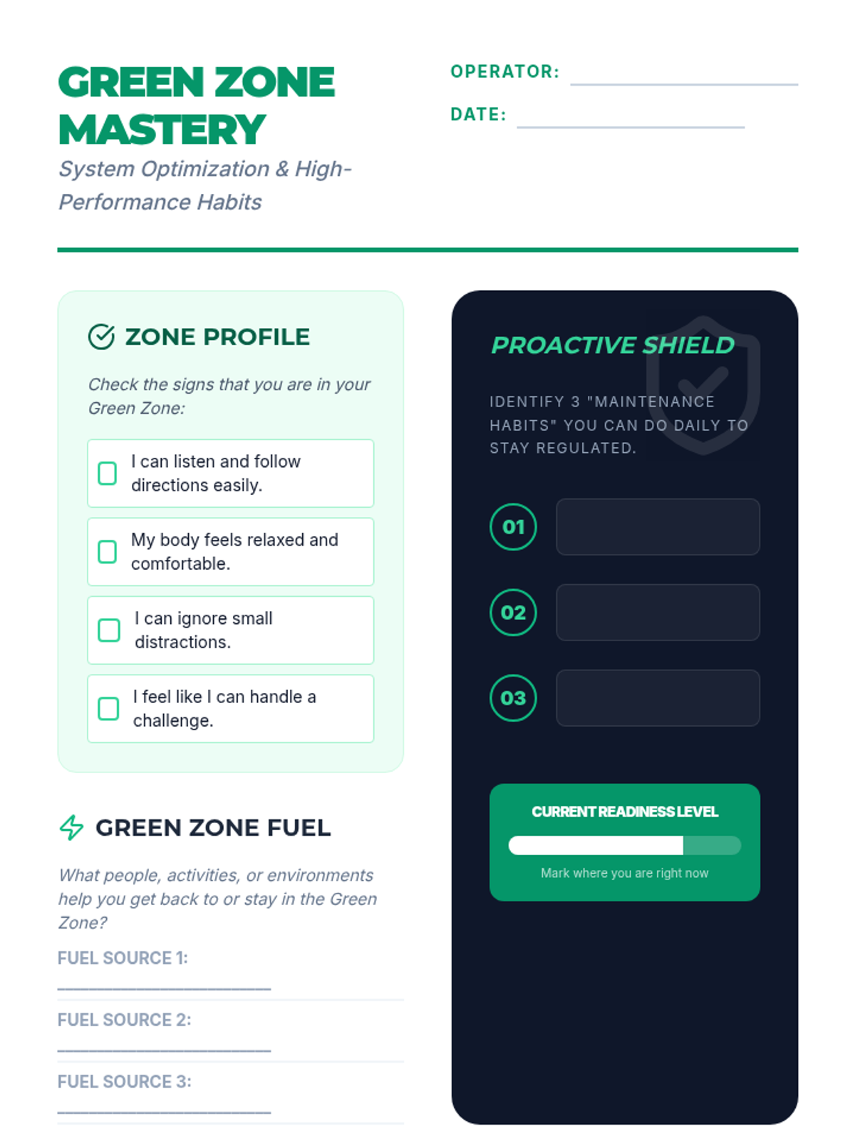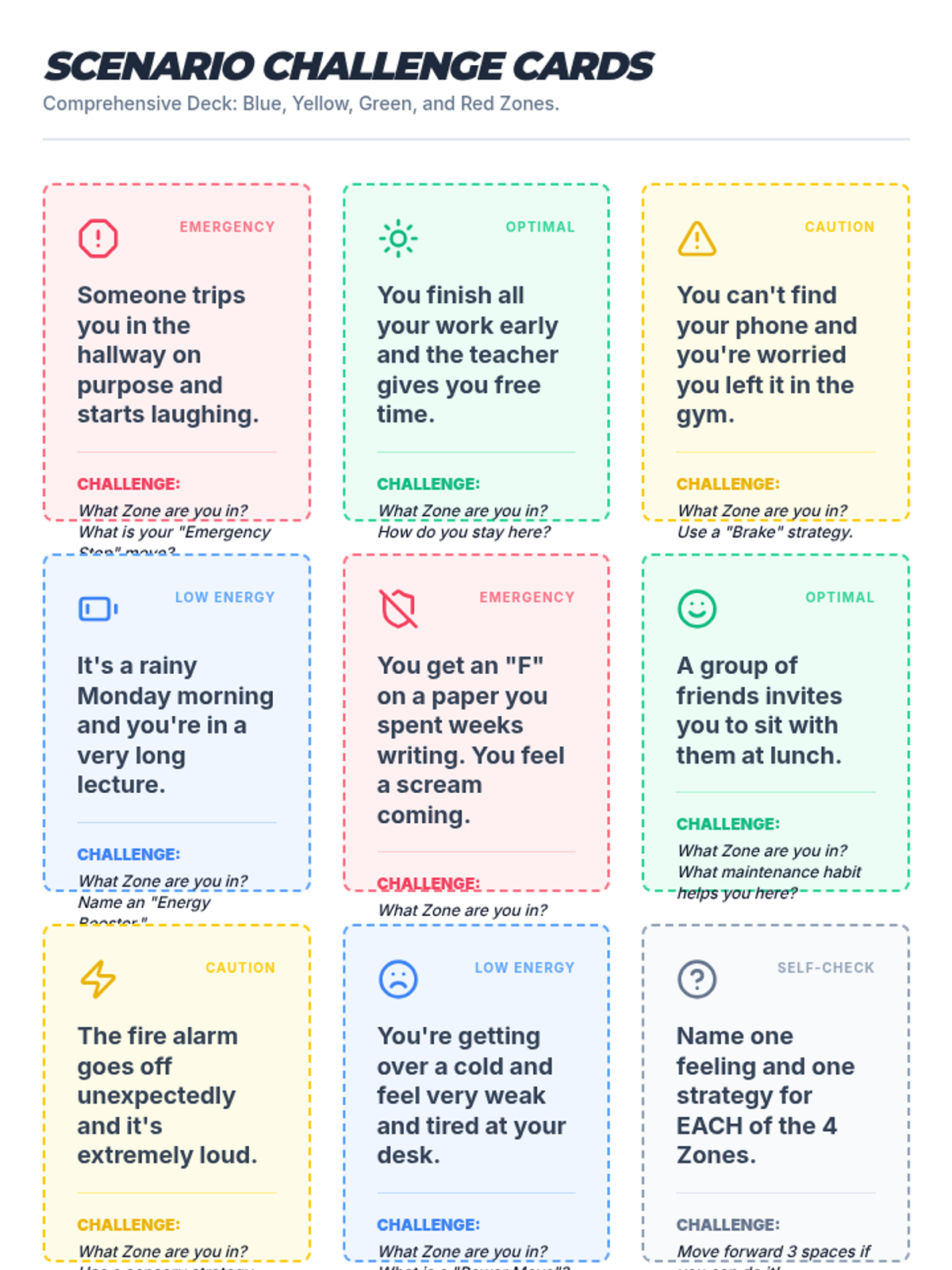 Focuses on identifying the Green Zone (calm, focused, ready) and proactive habits that help students stay in this optimal learning state.