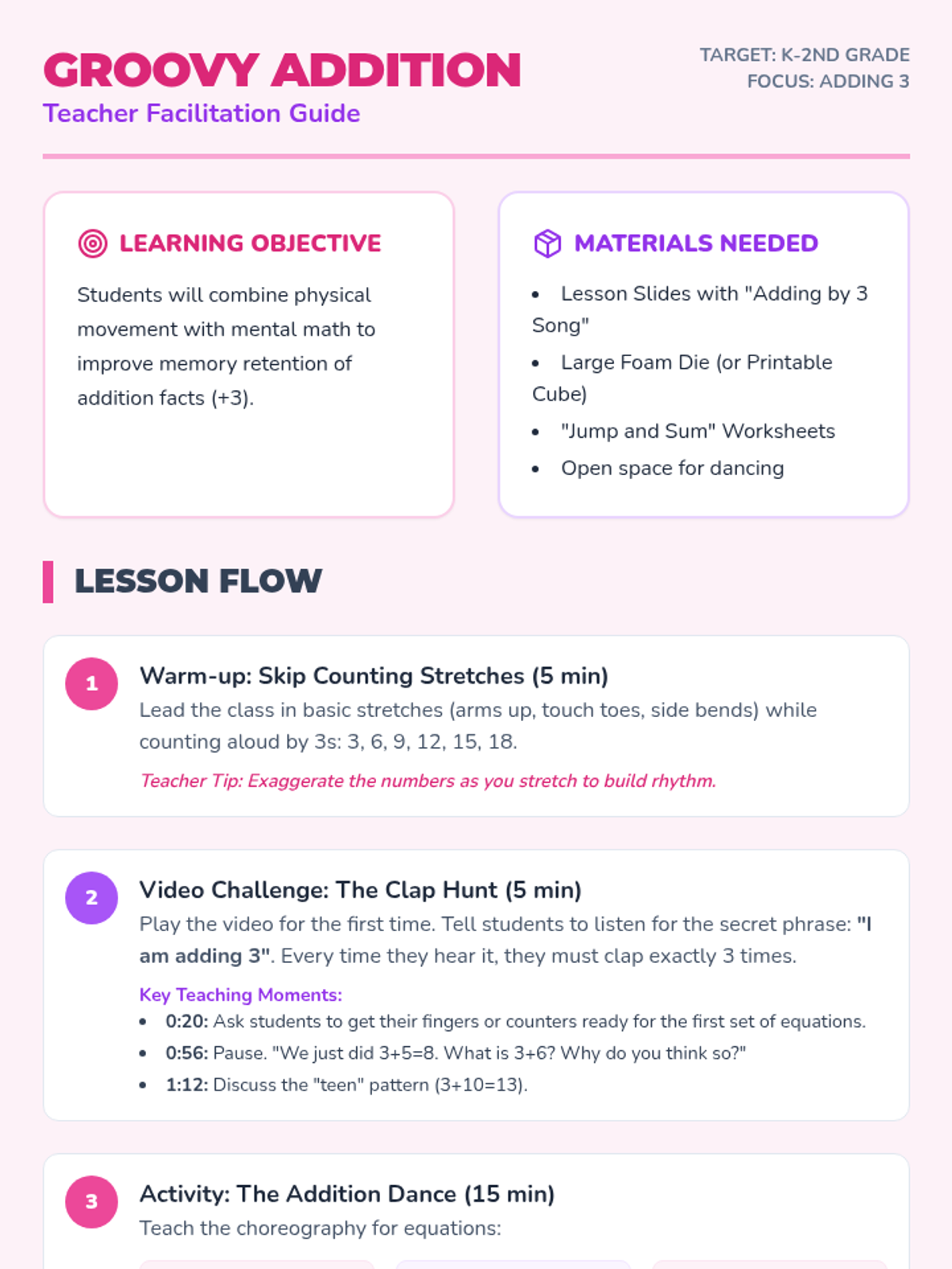 A fun, hands-on introduction to 3D shapes where students explore the properties of spheres, cubes, cones, and cylinders through a 'Shape Expedition' theme. Students identify faces, edges, and vertices and learn how to decompose composite structures into their component shapes.