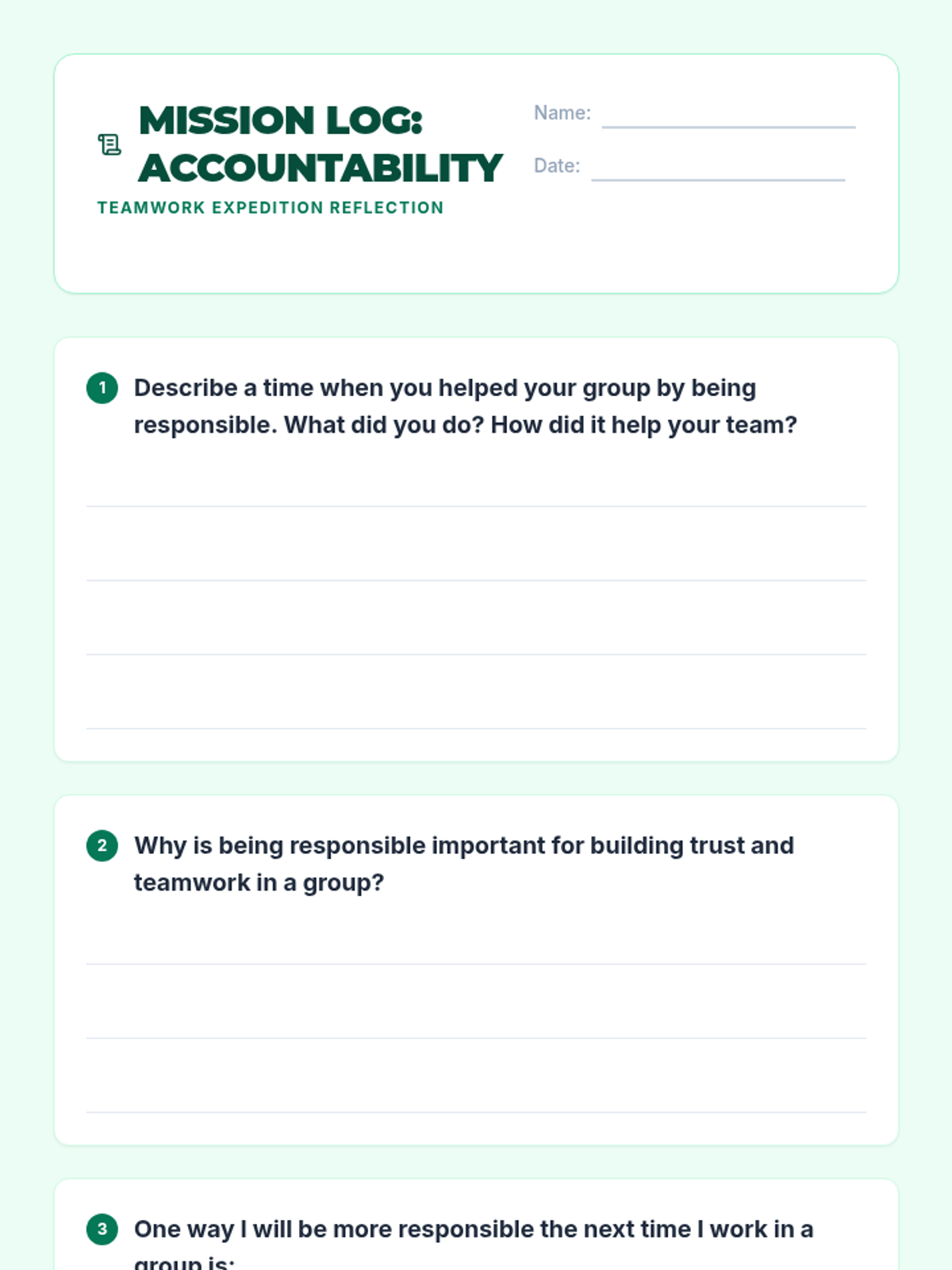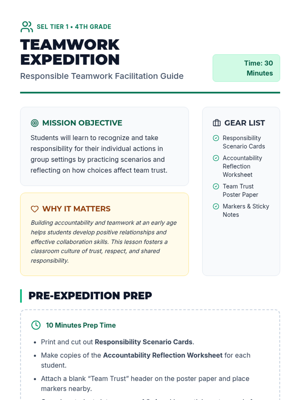 A 30-minute 4th grade social-emotional lesson where students explore accountability and trust through interactive group scenarios and personal reflection.