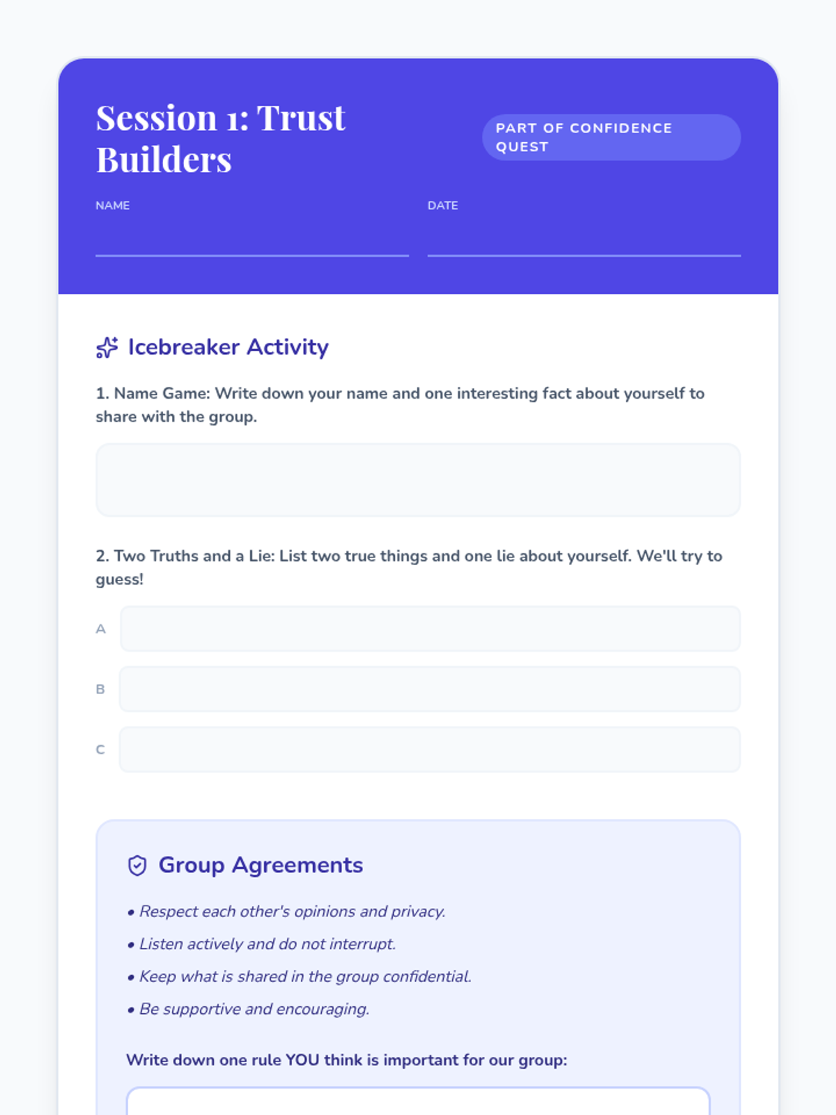 The first small-group session focused on building trust, setting group norms, and defining self-esteem.