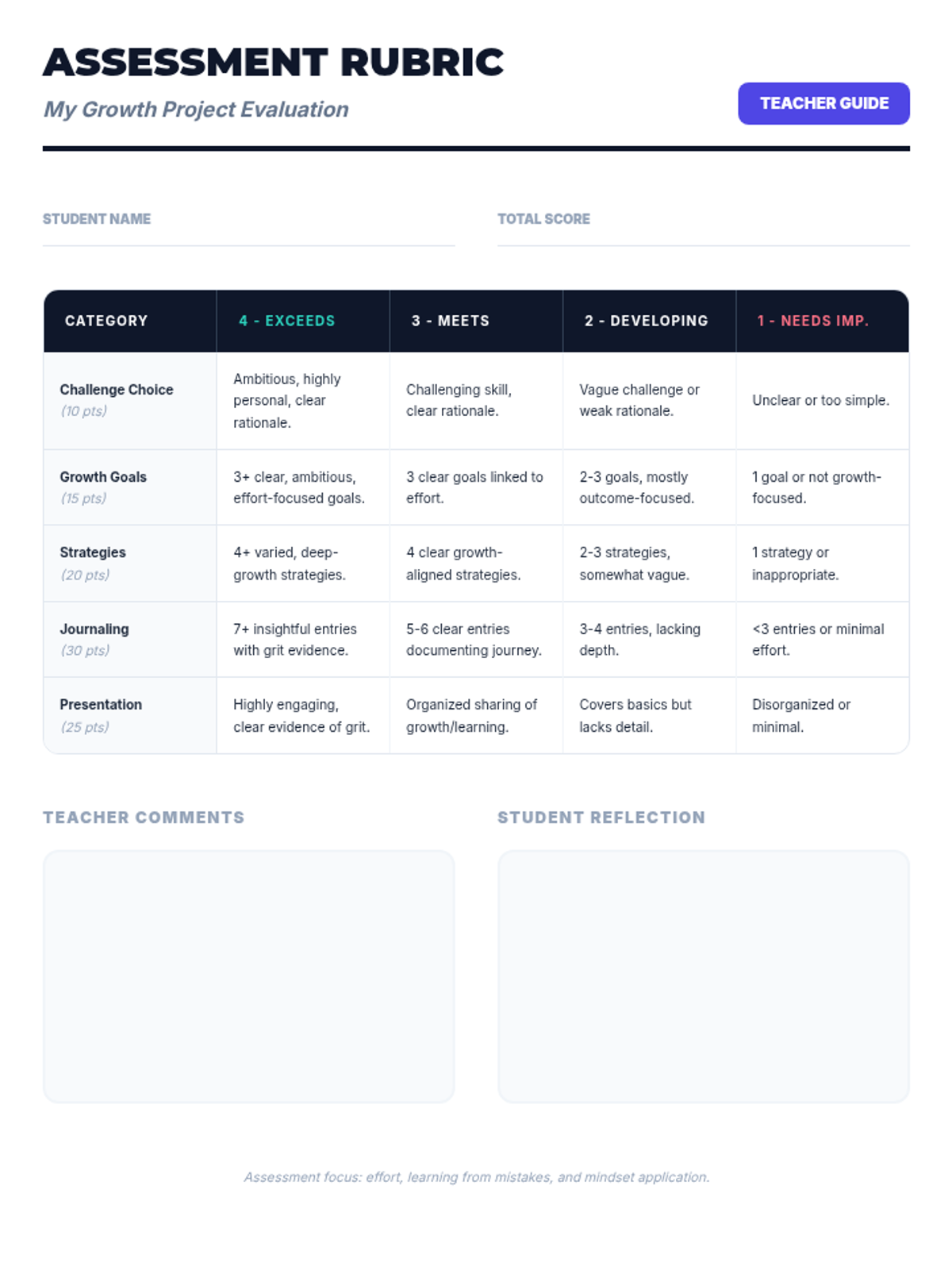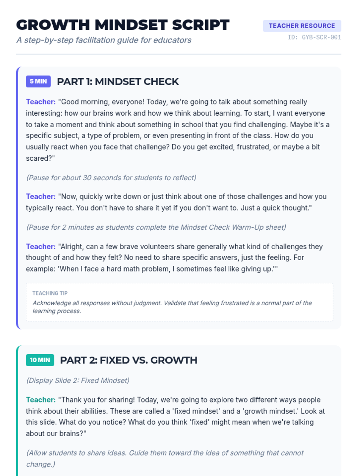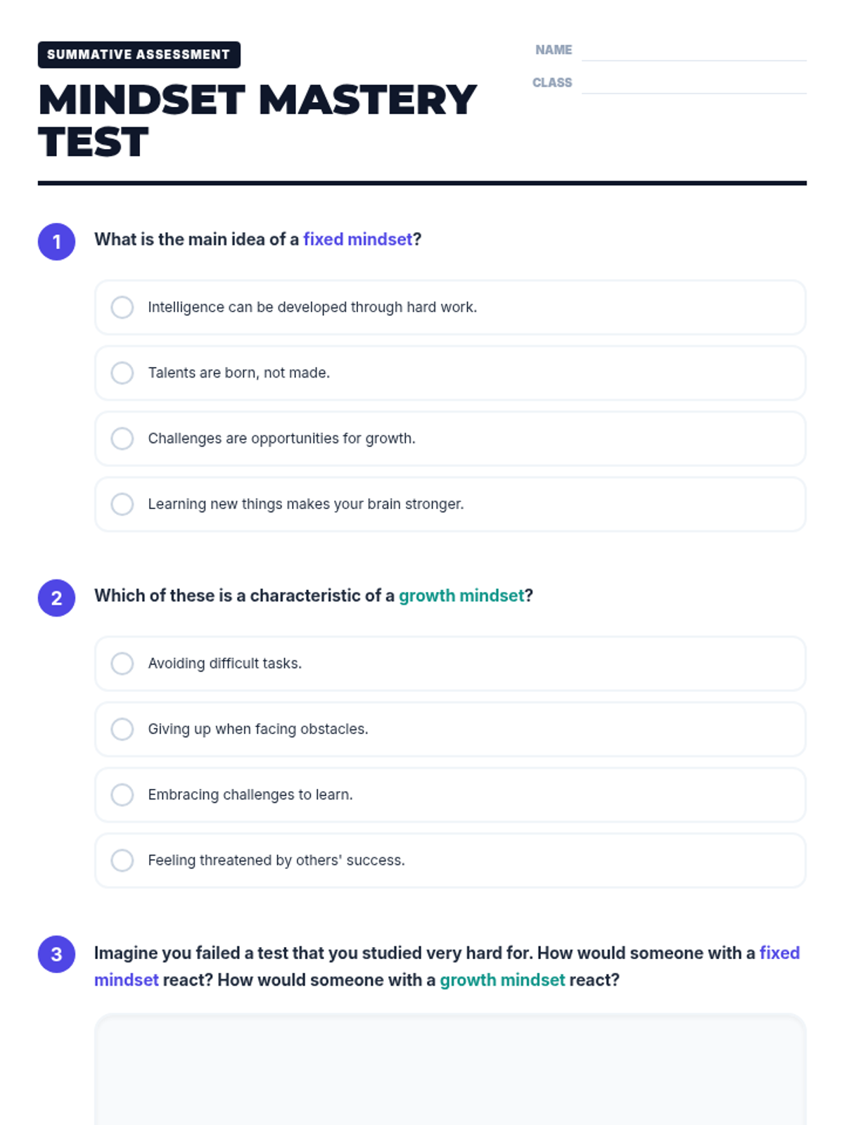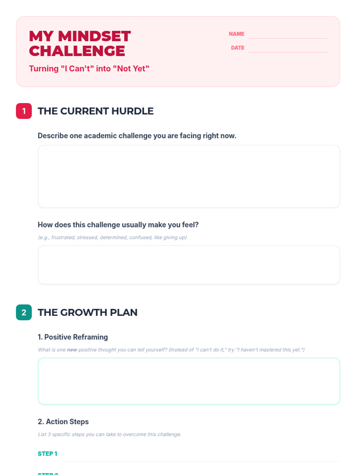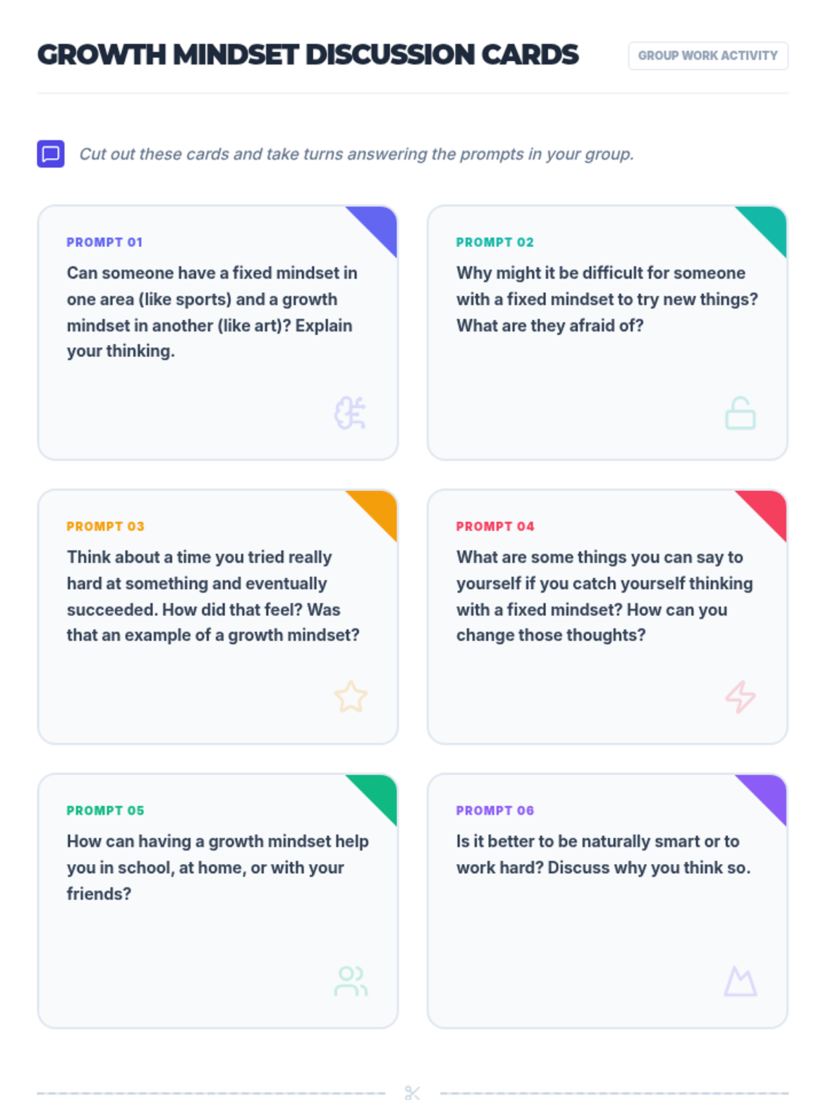 A 60-minute session for Primary 6 students that introduces the difference between a fixed and growth mindset through interactive activities, a classic story, and personal reflection. Students will learn that intelligence is like a muscle that grows with effort.