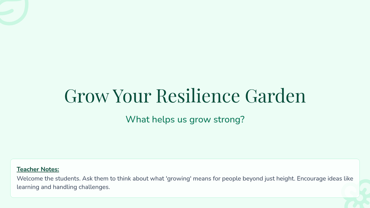 A 30-minute Tier 2 group lesson for 7th-grade girls that uses a garden analogy to teach resilience, self-advocacy, and coping skills. Students identify their personal 'roots', 'sunshine', and 'tools' for facing challenges.