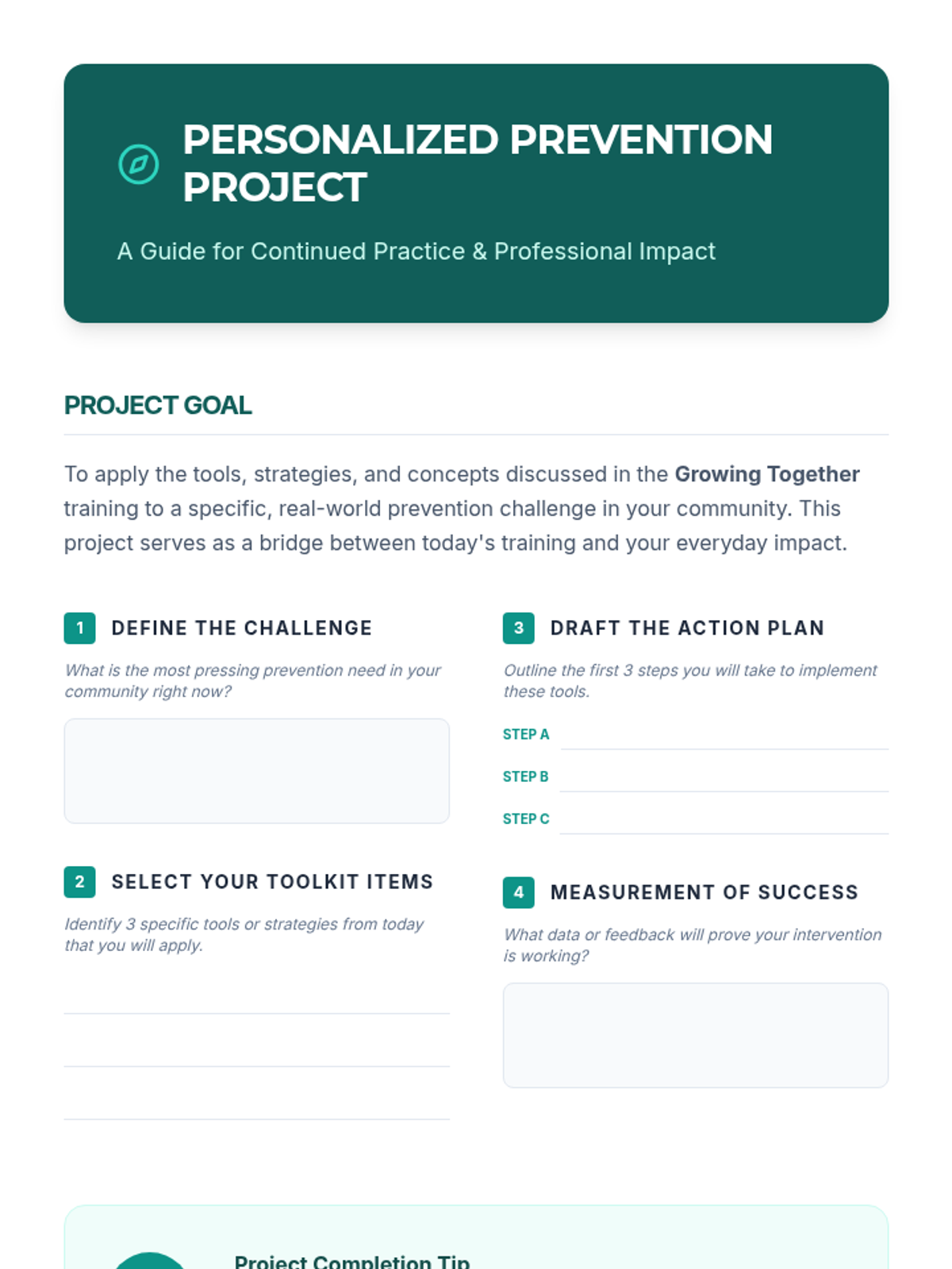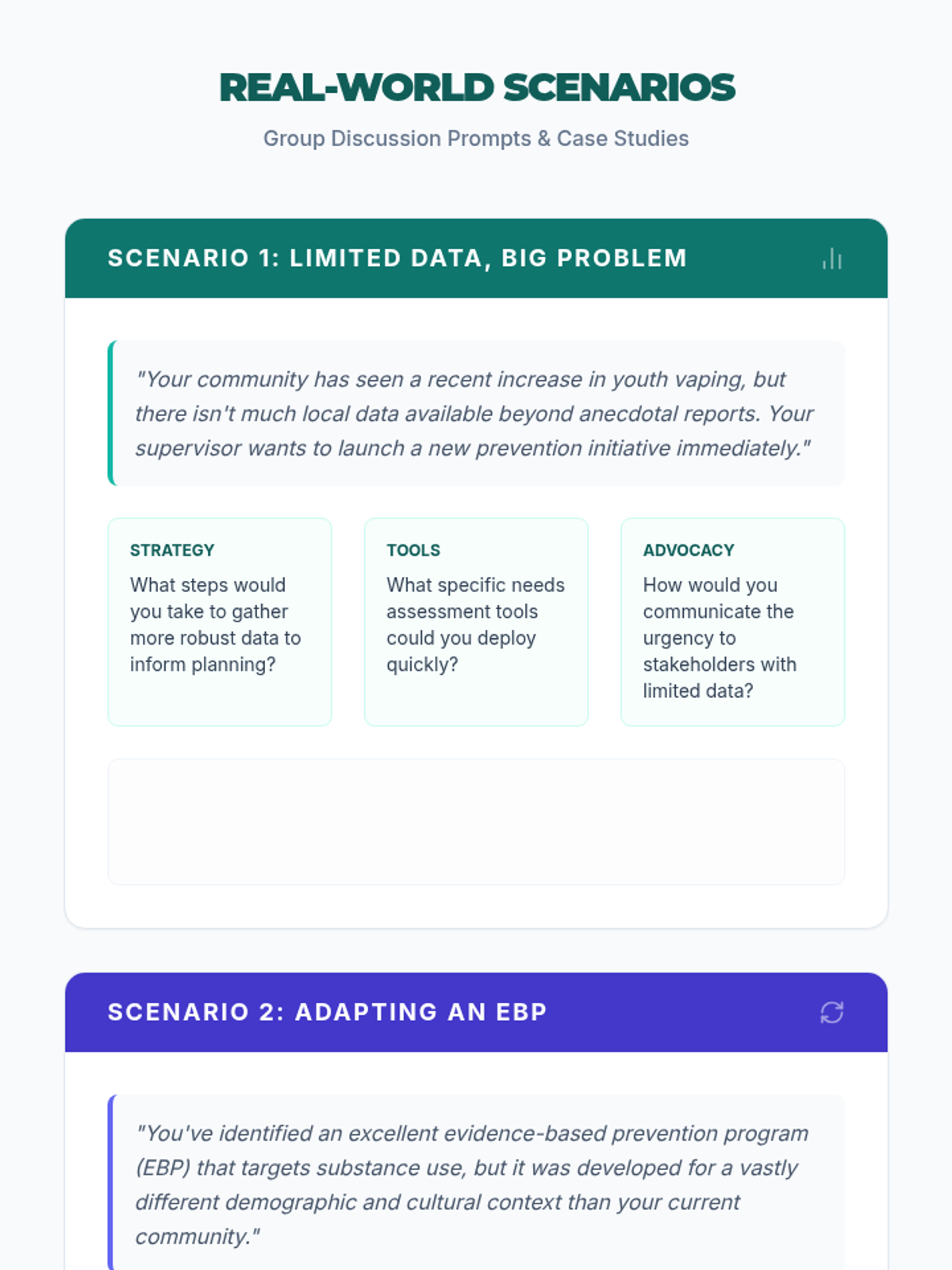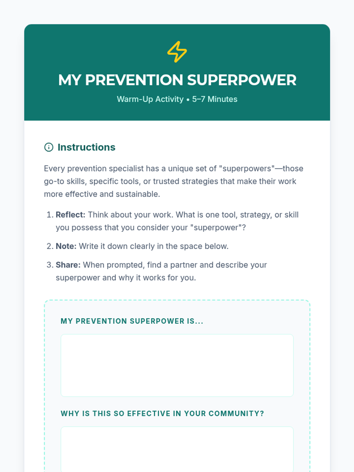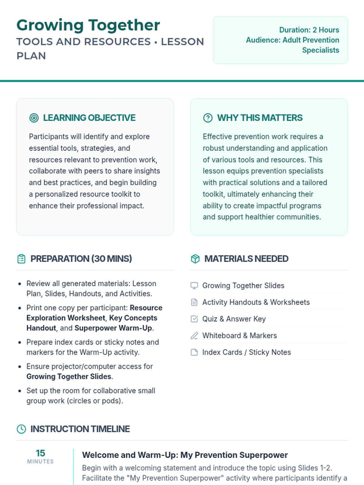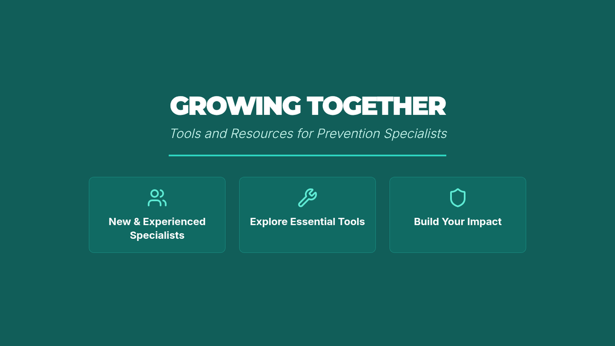 An interactive 2-hour training session for prevention specialists to explore tools, share insights, and build a personalized resource toolkit for community impact.