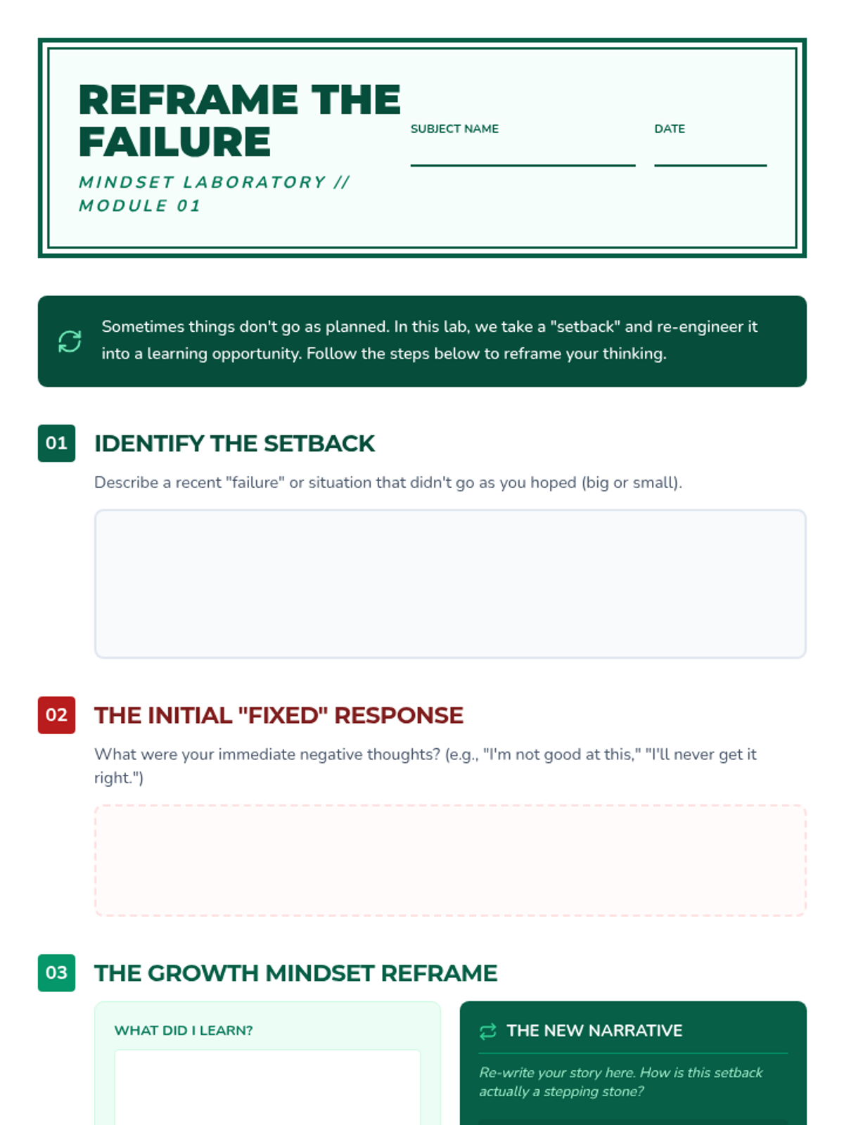 Covers the fourth 'P' (Positivity), teaching students to reframe negative thoughts and maintain a growth mindset during setbacks.
