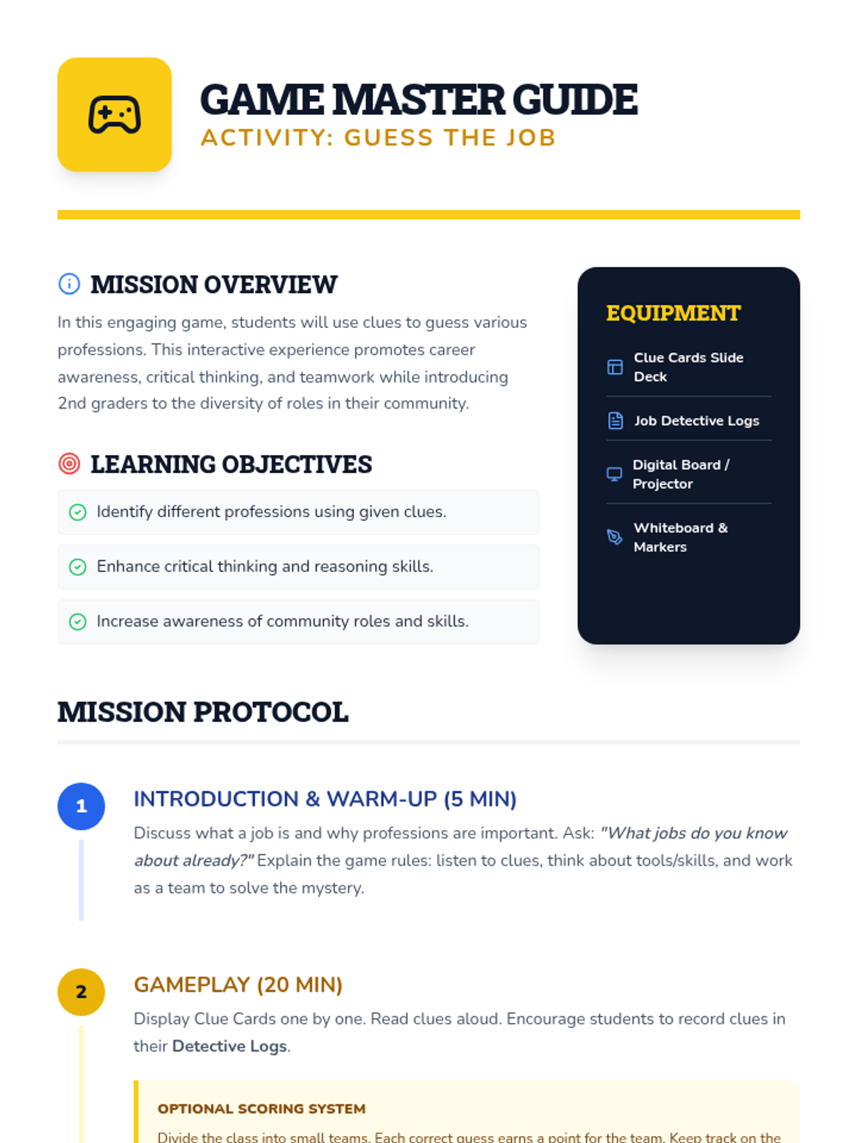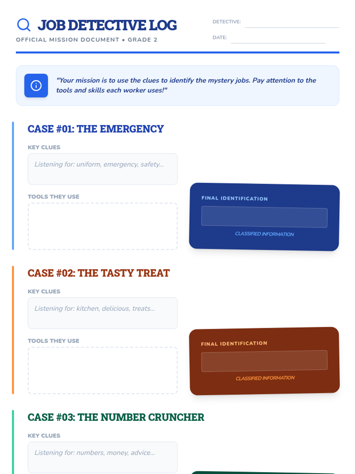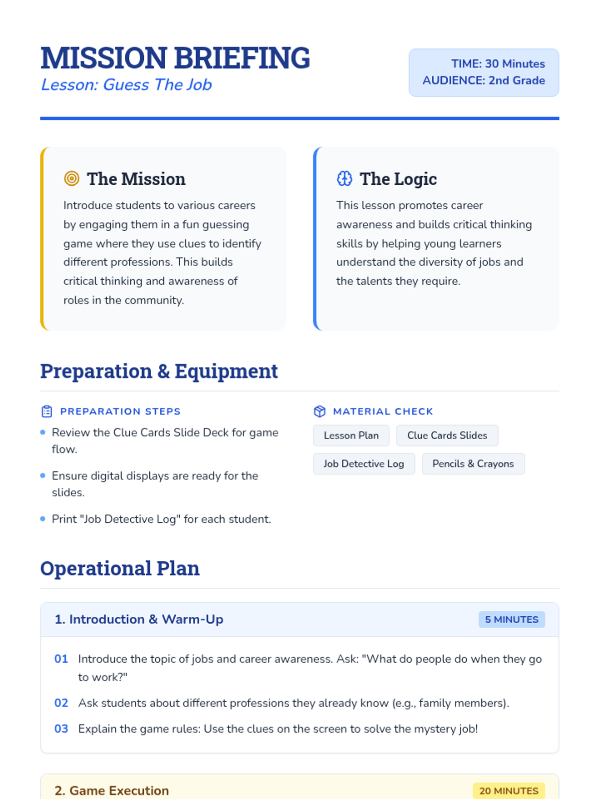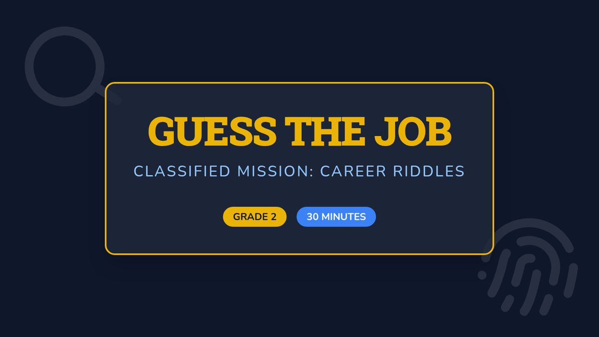 An interactive career awareness lesson for 2nd grade where students solve riddles to identify different professions and explore the skills they require.