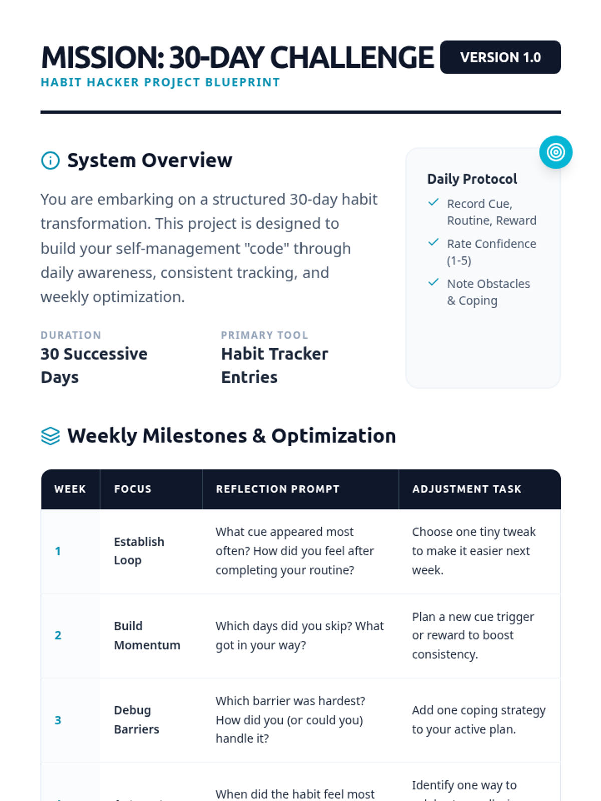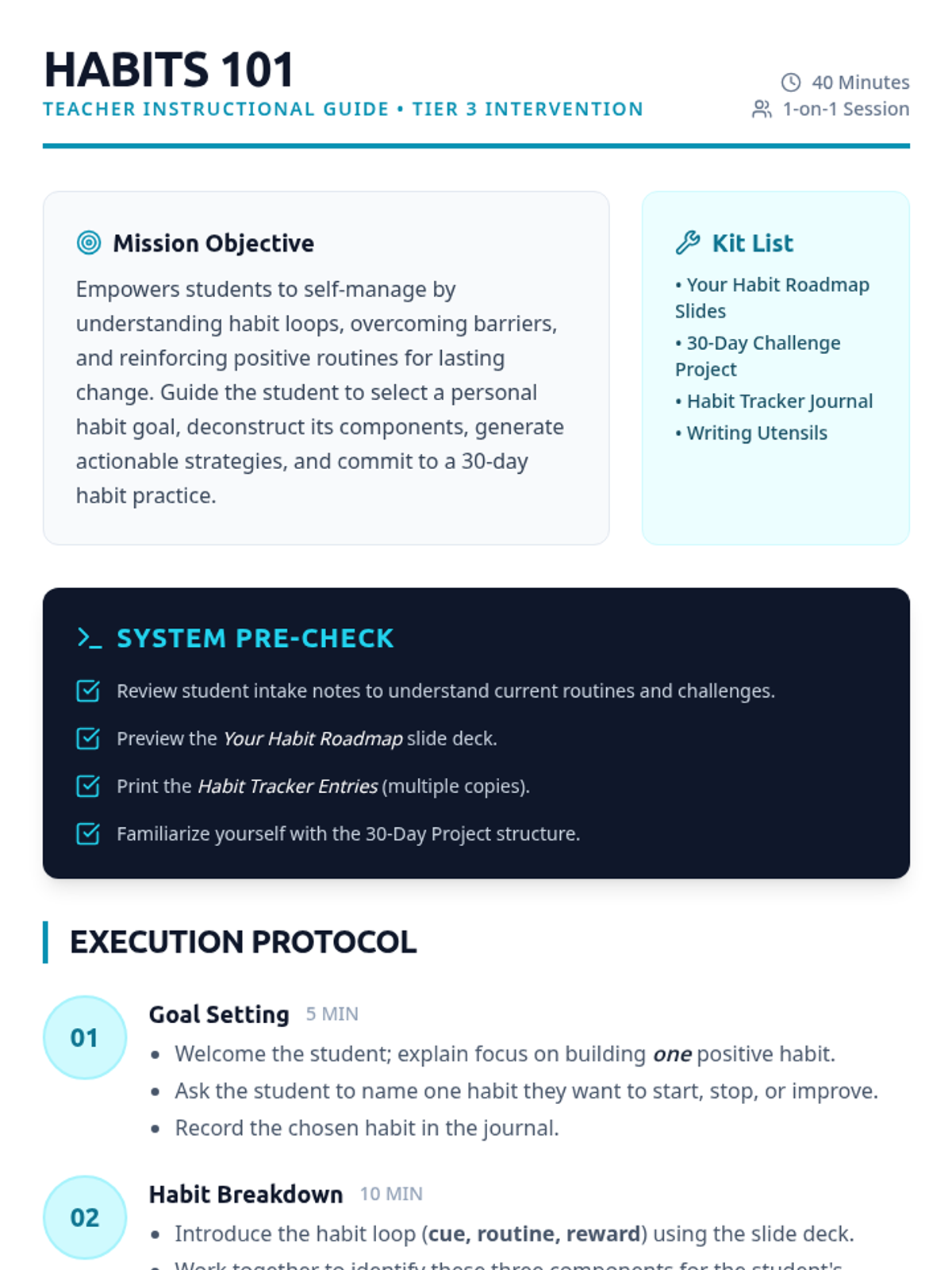 A Tier 3 individualized coaching session for 7th grade students to identify, design, and commit to positive habit loops using a 'Habit Hacker' framework.
