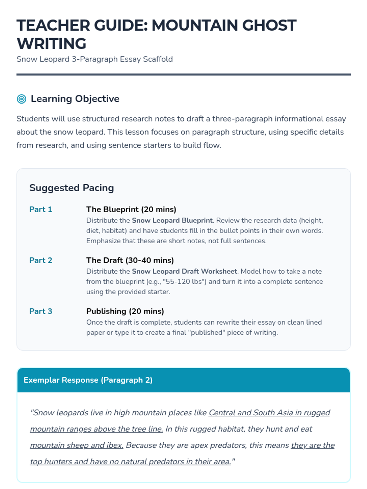 A comprehensive 60-minute review lesson focused on determining main ideas and supporting details (3.RI.2) through the lens of animal habitats. Includes a model, guided practice, partner work with a long passage, and an exit ticket featuring a desert habitat.