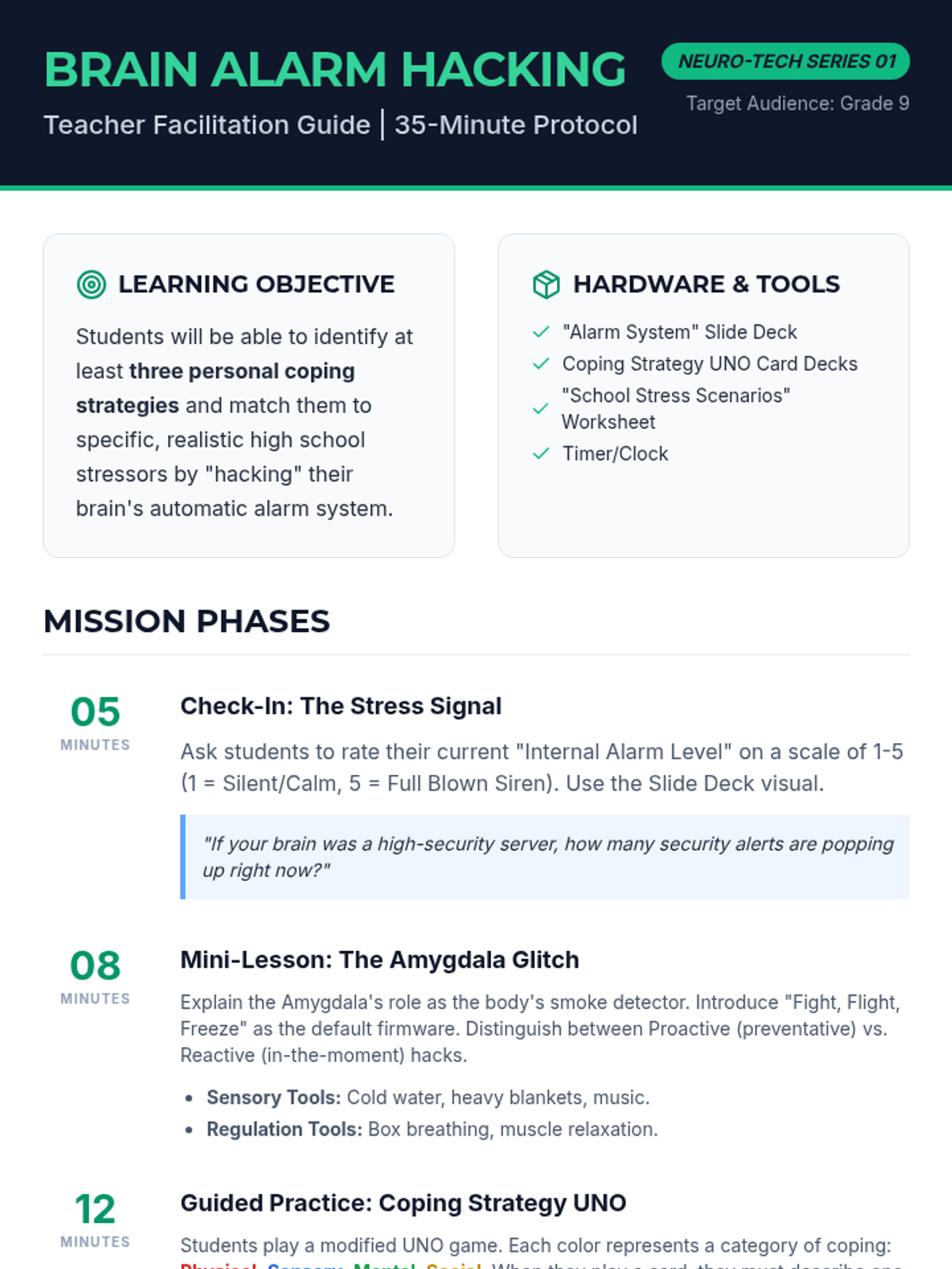 A 35-minute lesson helping 9th graders understand their brain's stress response and develop personalized coping strategies for high school life.