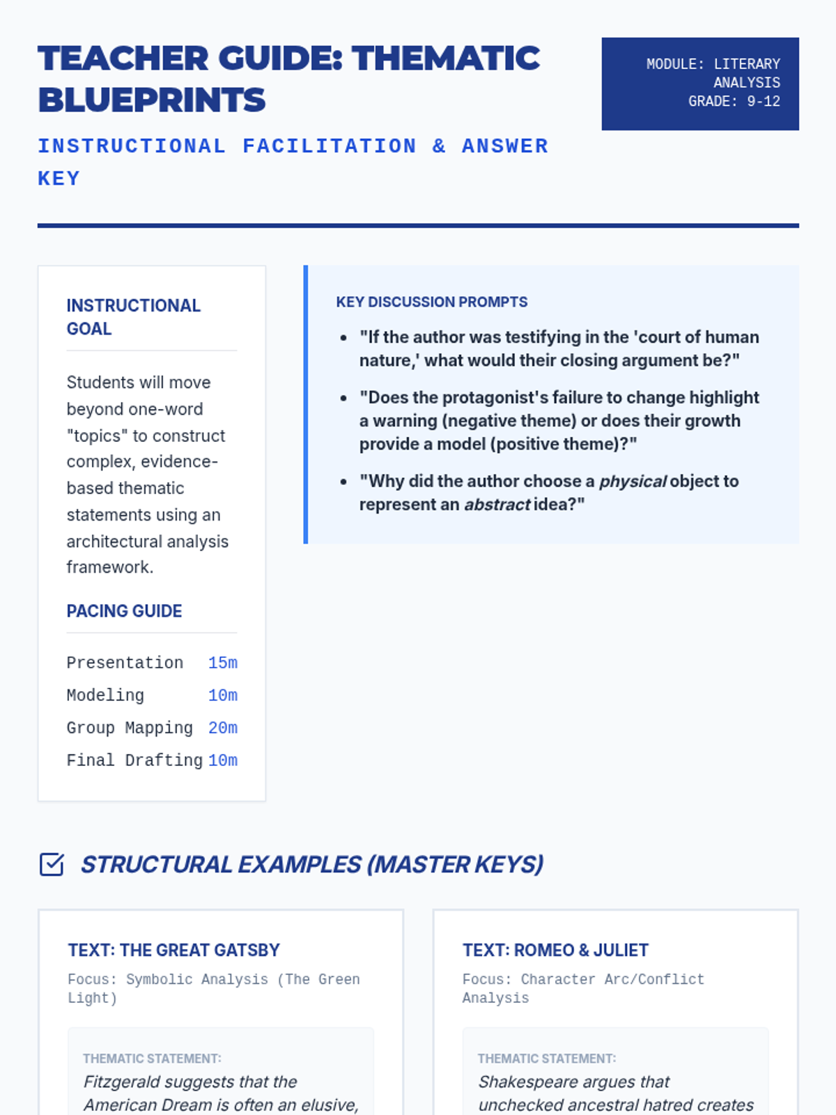 A comprehensive guide to identifying and articulating themes in literature for high school students. This lesson uses an architectural metaphor to help students build theme statements from character development, conflict, and symbolism.