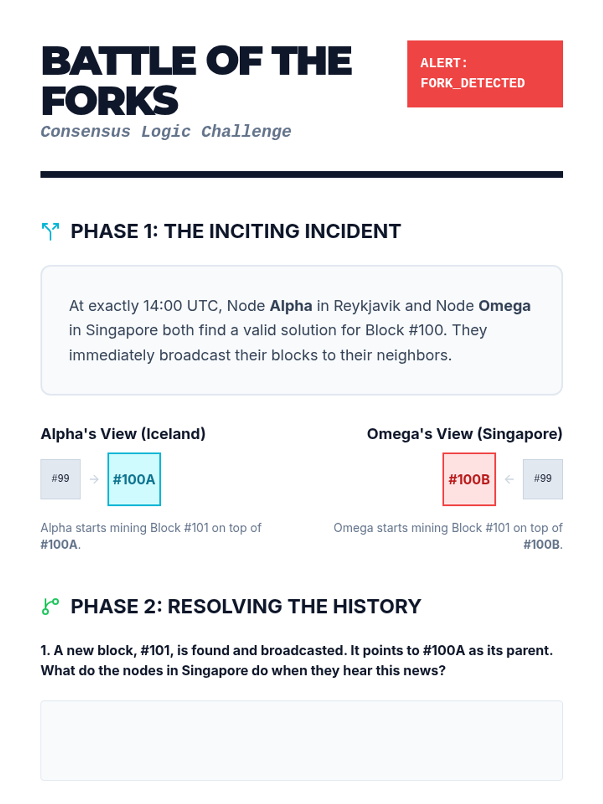 A deep dive into the logic used to resolve conflicts when two blocks are mined simultaneously. Students apply the 'longest chain rule' to determine the valid history of the blockchain.