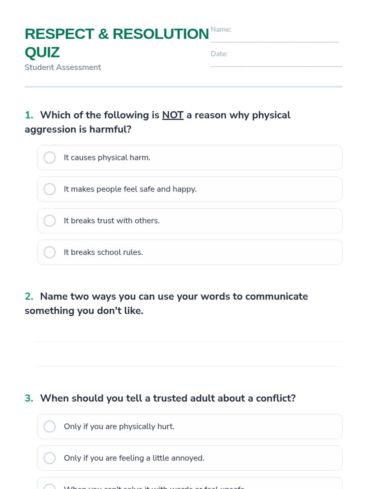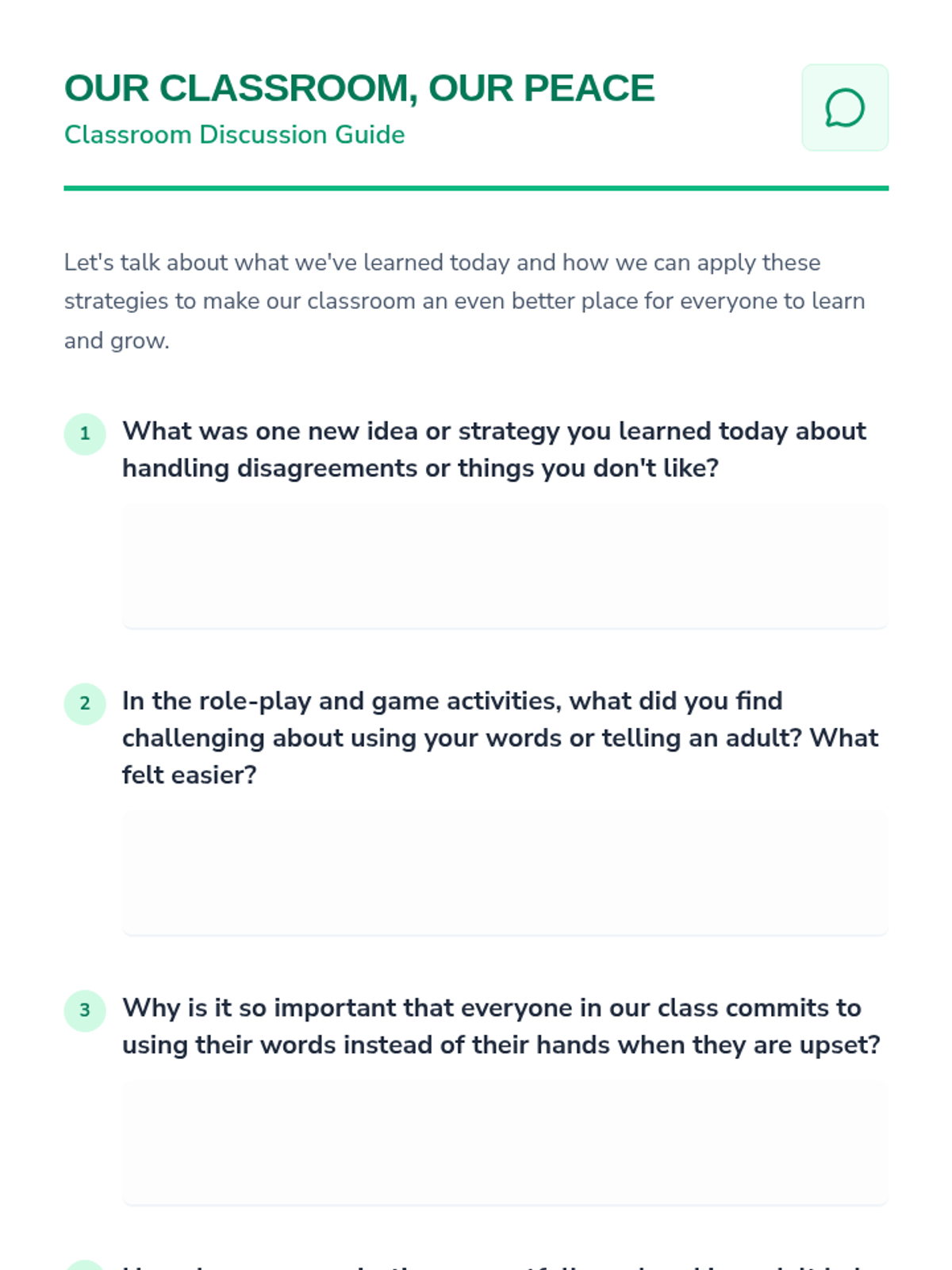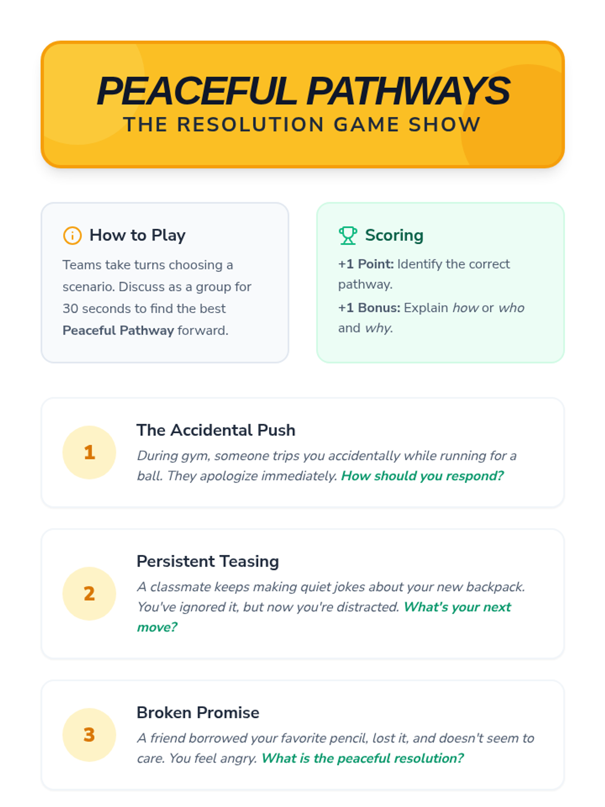 A 40-minute Tier 1 lesson for 6th-grade students focused on resolving conflicts peacefully through communication and seeking adult help instead of physical aggression.