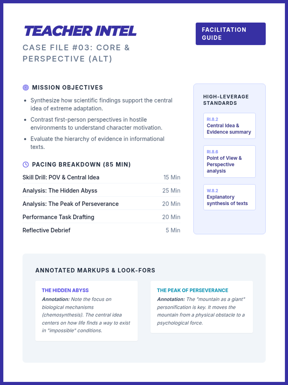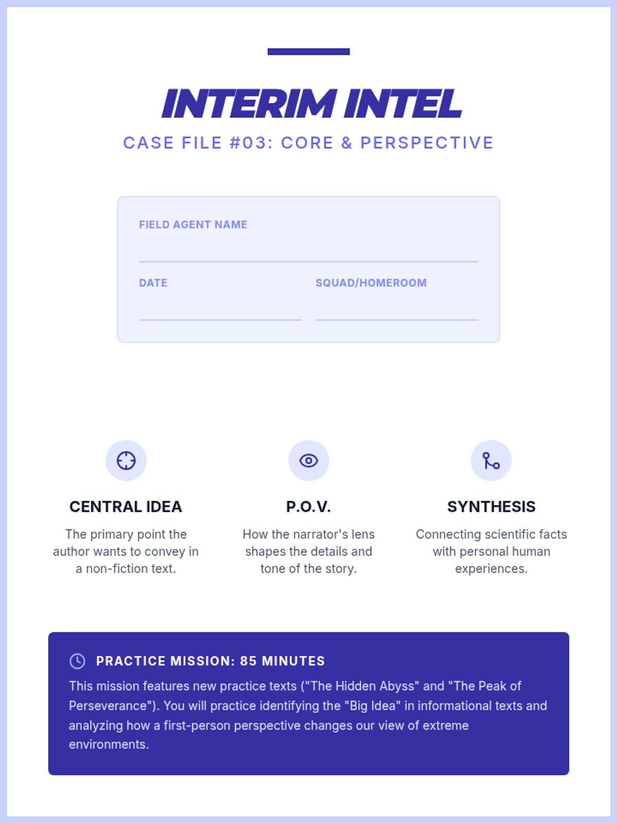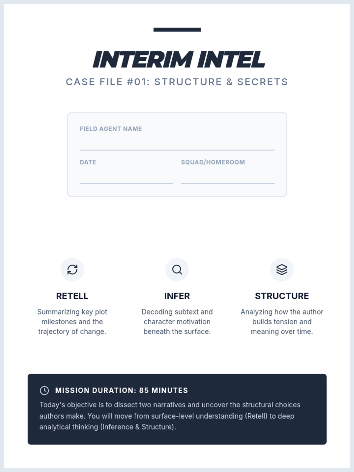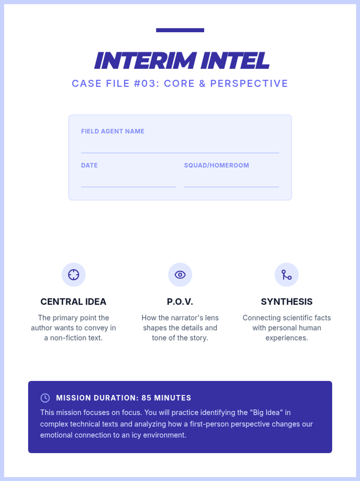 A comprehensive 9th-grade ELA lesson focused on differentiating between explicit evidence and implicit meaning through a detective-themed 'case file' approach. Students will master the formula of combining textual evidence with background knowledge to draw logical conclusions.