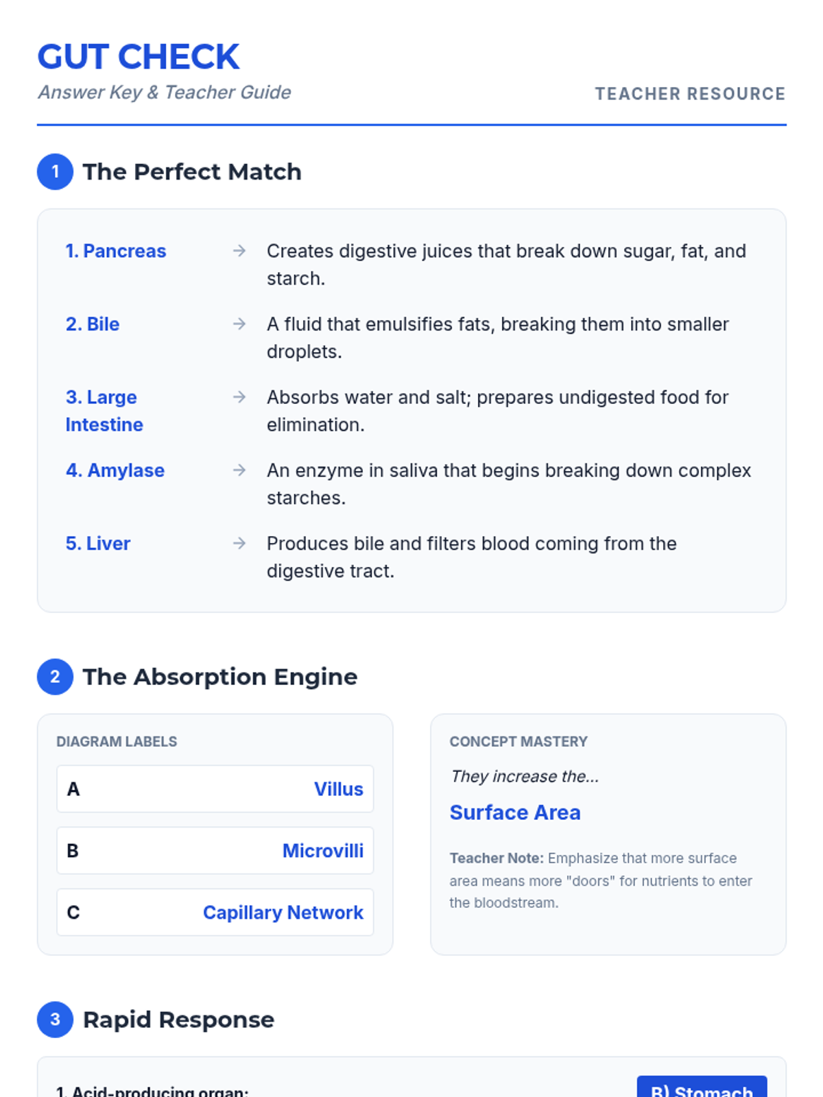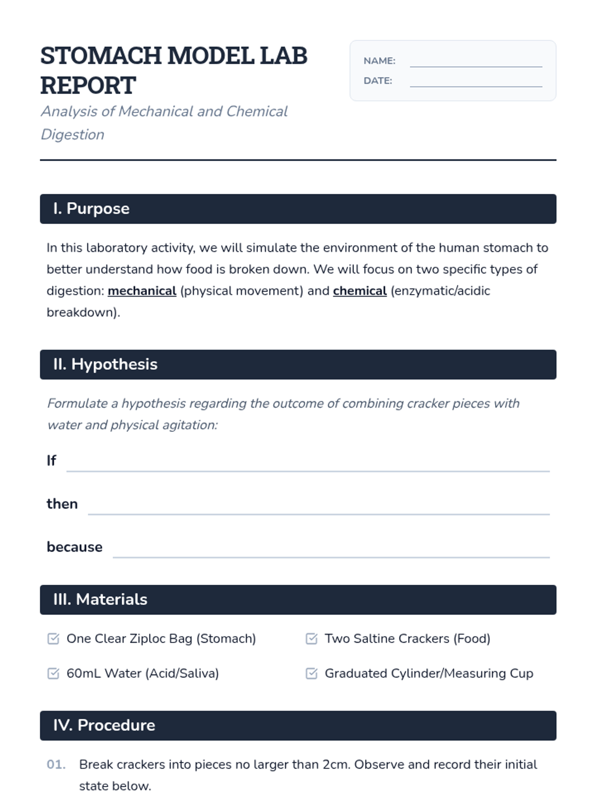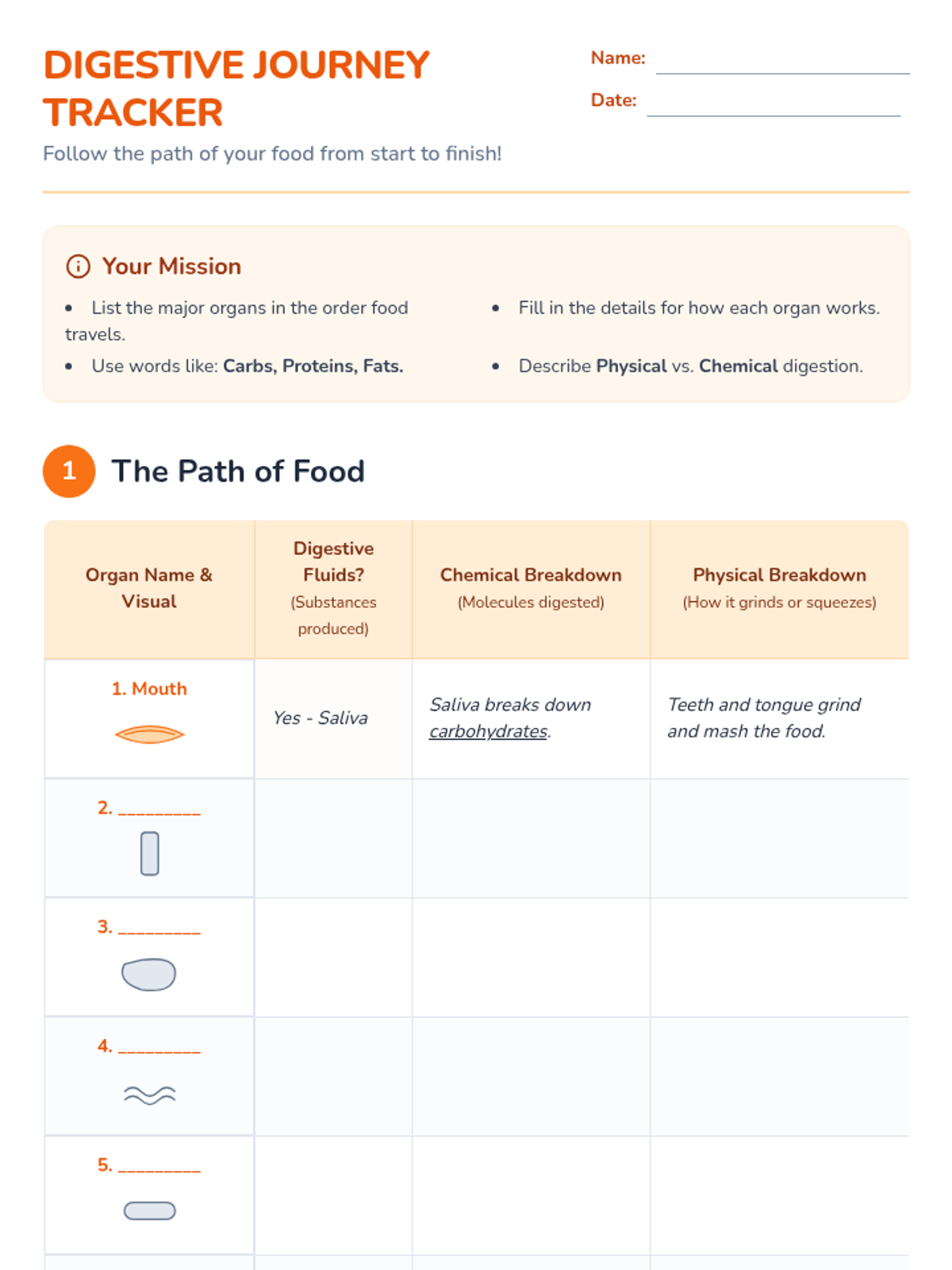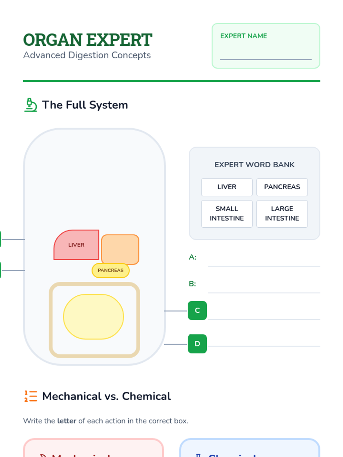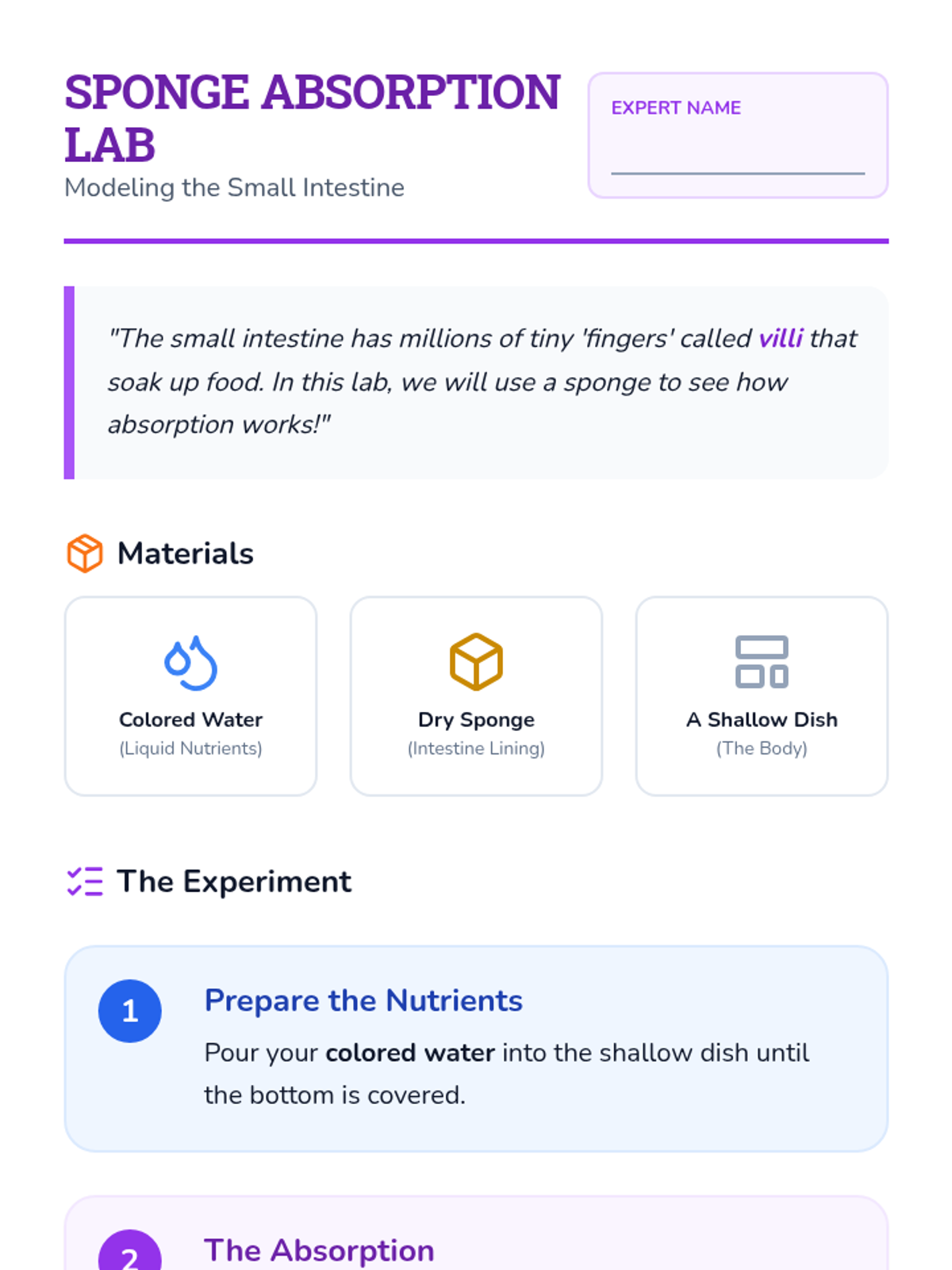 A hands-on lab lesson focusing on the organs and functions of the digestive system, specifically designed for accessibility and low prep. Students use simple materials to model the digestive process and complete interactive sequencing activities.