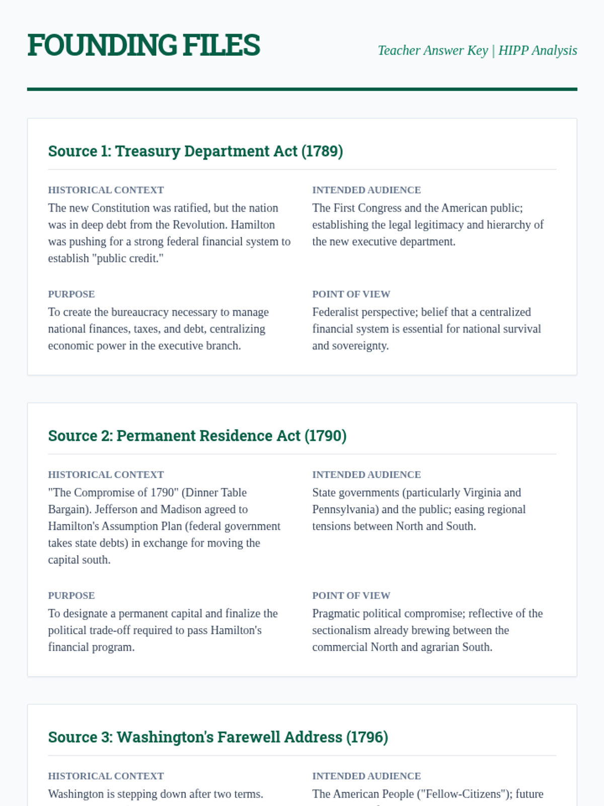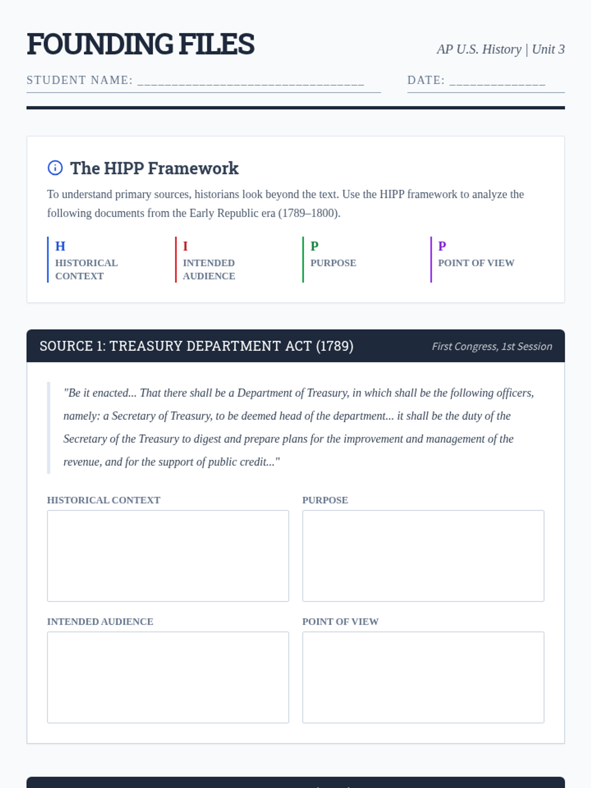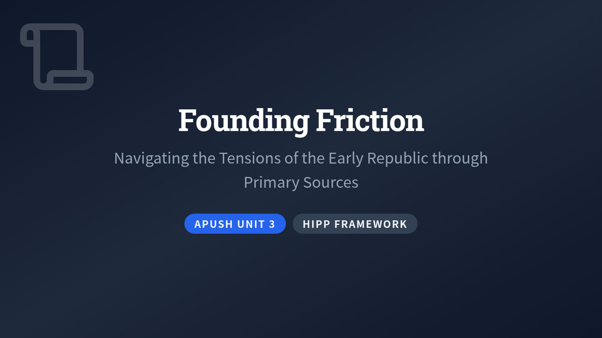 A primary source analysis lesson focusing on the early American Republic through the lens of foundational documents, using the HIPP framework to analyze political and social tensions.