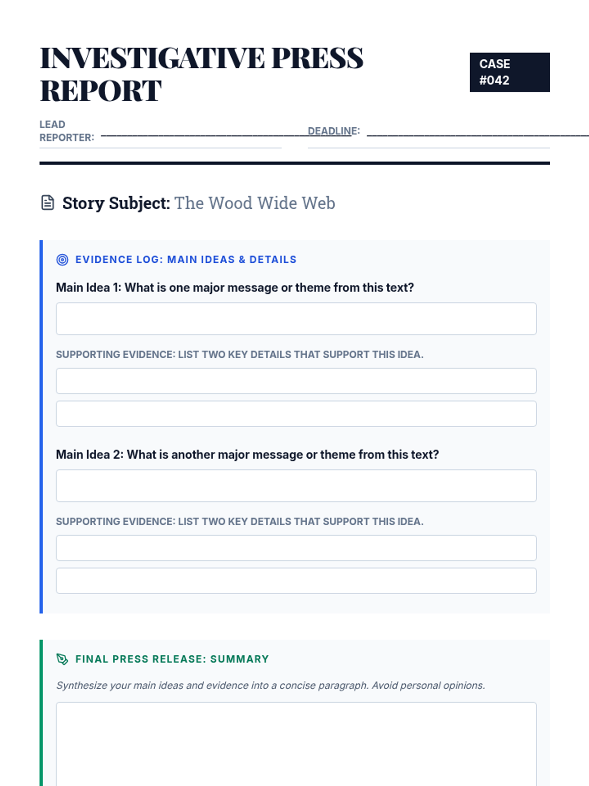 A 45-minute introduction to beat reporting for 6th graders where students choose a specialized area of interest and map out their first major project timeline.