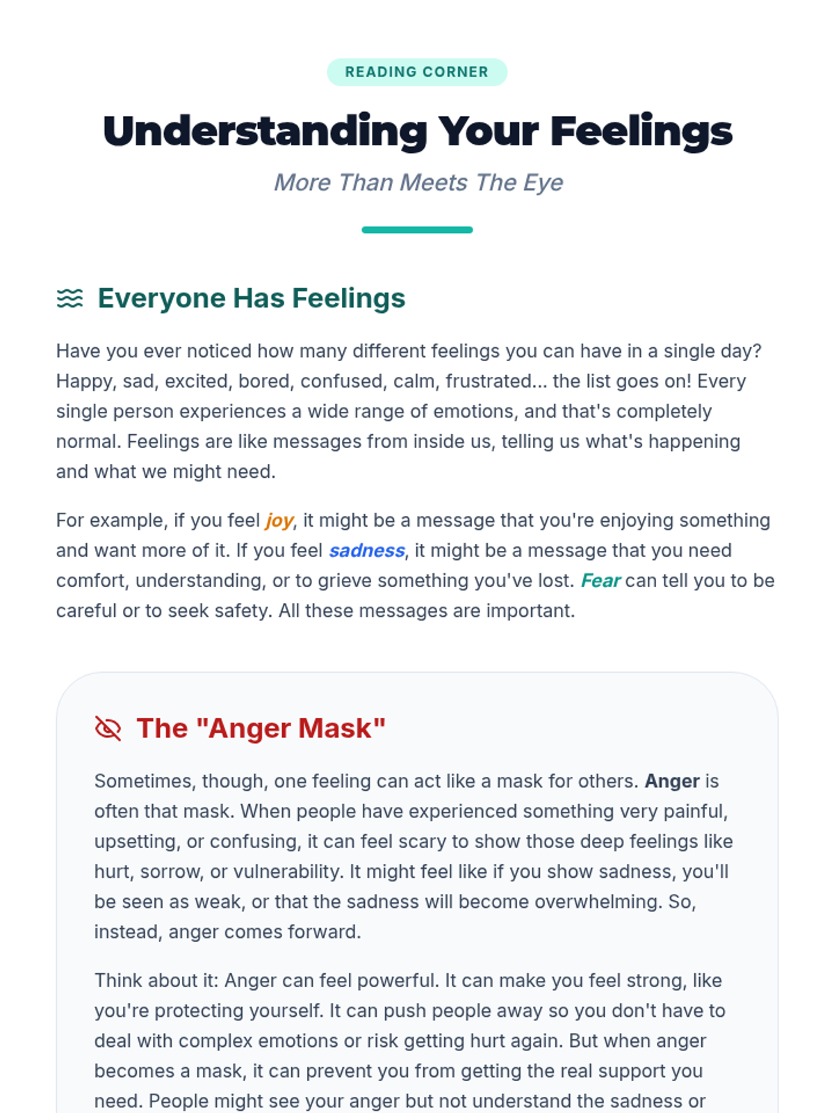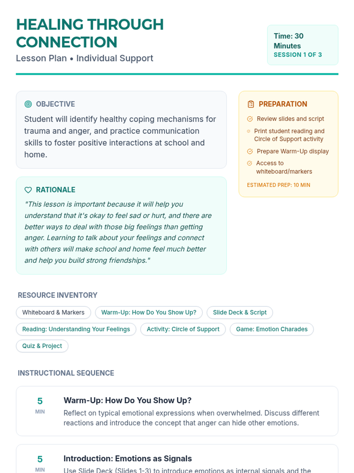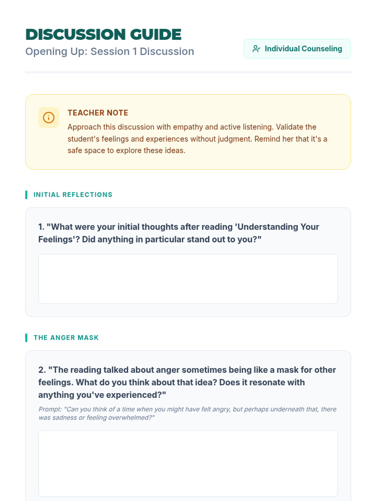 Focuses on identifying the 'anger mask' and uncovering vulnerable emotions underneath while building a Circle of Support.